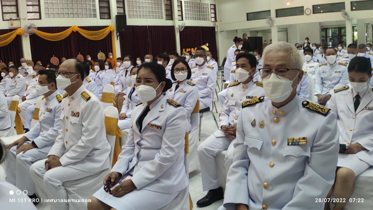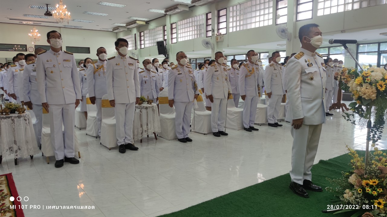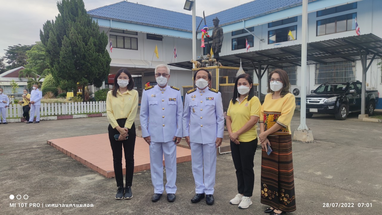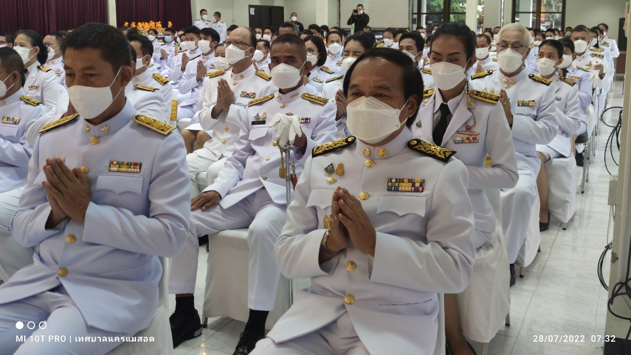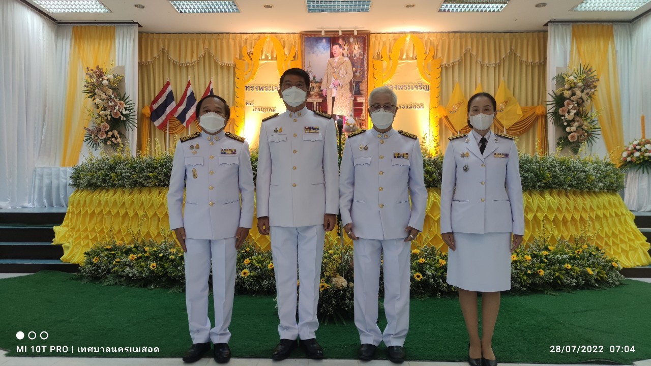 เมื่อวันพฤหัสบดี ที่ 28 กรกฎาคม 2565 เวลา 06.30 น. ณ หอประชุมที่ว่าการอำเภอแม่สอด จังหวัดตาก ว่าที่ร้อยตรีประเสริฐ ปวงละคร นายกเทศมนตรีนครแม่สอด พร้อมนายกรกฤตย์ กรันยพัฒนพงษ์ เลขานุการนายกเทศมนตรี เข้าร่วมพิธีทำบุญตักบาตรและร่วมถวายสัตย์ปฏิญาณเพื่อเป็นข้าราชการที่ดี เนื่องในโอกาสวันเฉลิมพระชนมพรรษา 70 พรรษา 28 กรกฎาคม 2565