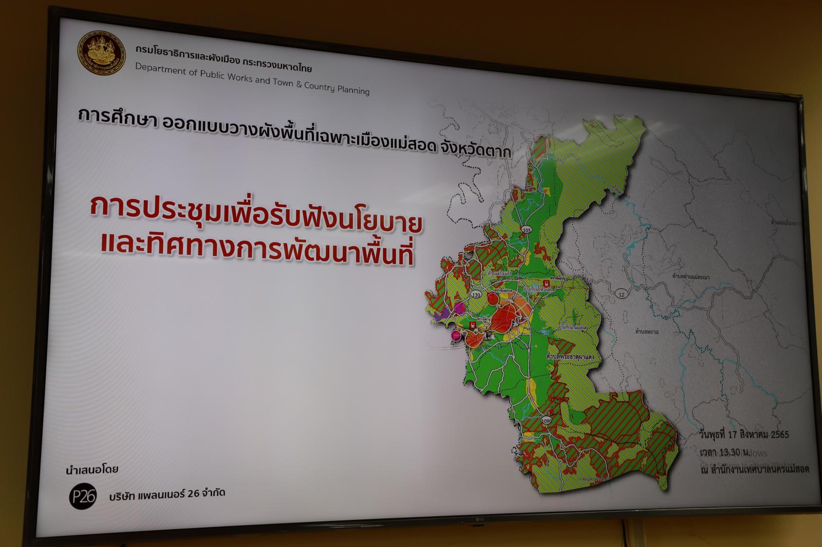 โดยมี นายปกรณ์ วราภาสกุล สถาปนิกชำนาญการพิเศษ กองผังเมืองเฉพาะ กรมโยธาธิการและผังเมือง อาจารย์ธนิชา นิยมวัน ที่ปรึกษาโครงการด้านสถาปัตยกรรมผังเมือง นางวลัยรัตน์ อินต๊ะแปง นักวิเคราะห์ผังเมืองชำนาญการพิเศษ และนายปรีดา หุตะจูฑะ ที่ปรึกษาโครงการด้านผังเมือง ให้คำแนะนำโครงการฯ และรับนโยบายและทิศทางการพัฒนาพื้นที่ ตลอดจนข้อคิดเห็นและข้อเสนอแนะที่เป็นประโยชน์ต่อโครงการของทางเทศบาลนครแม่สอด ซึ่งจะนำไปดำเนินโครงการศึกษาออกแบบวางผังพื้นที่เฉพาะเมืองแม่สอด ตามความต้องการของพื้นที่และนำมาเสนอในขั้นตอนต่อไป