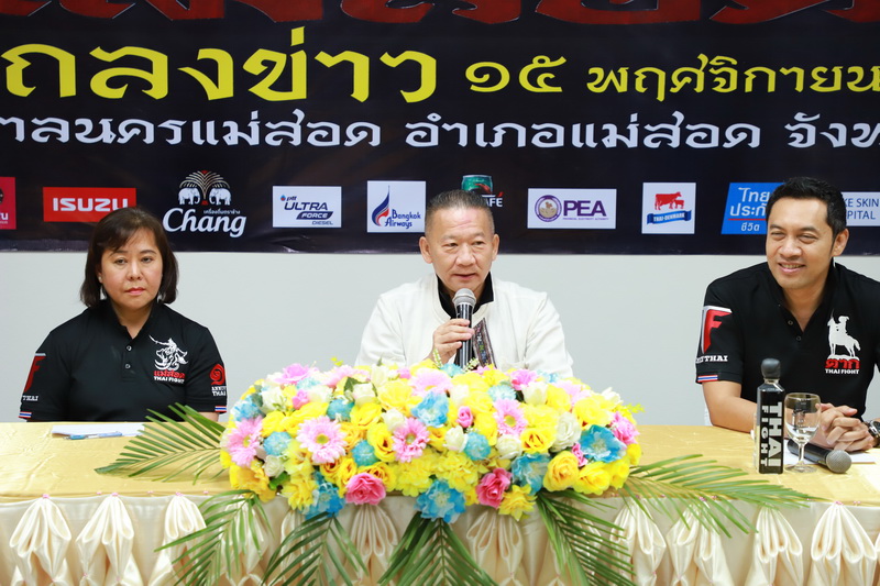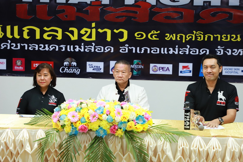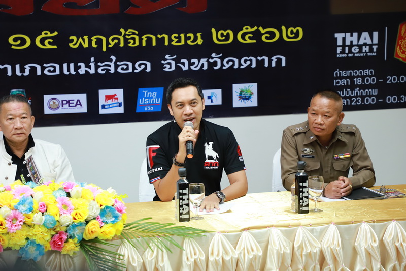 เมื่อวันศุกร์ ที่ 15 พฤศจิกายน พ.ศ. 2562 เวลา 13.30 น. ณ ศูนย์อำนวยการจัดการแข่งขันชกมวยไทยโลก “THAI FIGHT แม่สอด” อาคารศูนย์ส่งเสริมอาชีพชุมชนเทศบาลนครแม่สอด อำเภอแม่สอด จังหวัดตาก