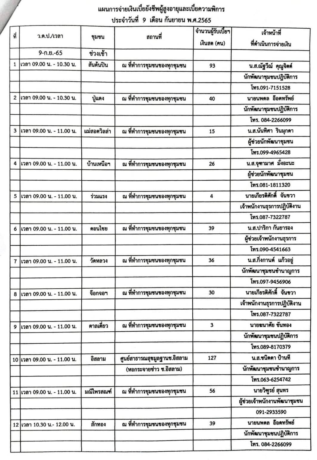 ประชาสัมพันธ์การแจกเบี้ยยังชีพผู้สูงอายุ และเบี้ยความพิการ ประจำเดือนกันยายน พ.ศ.2565