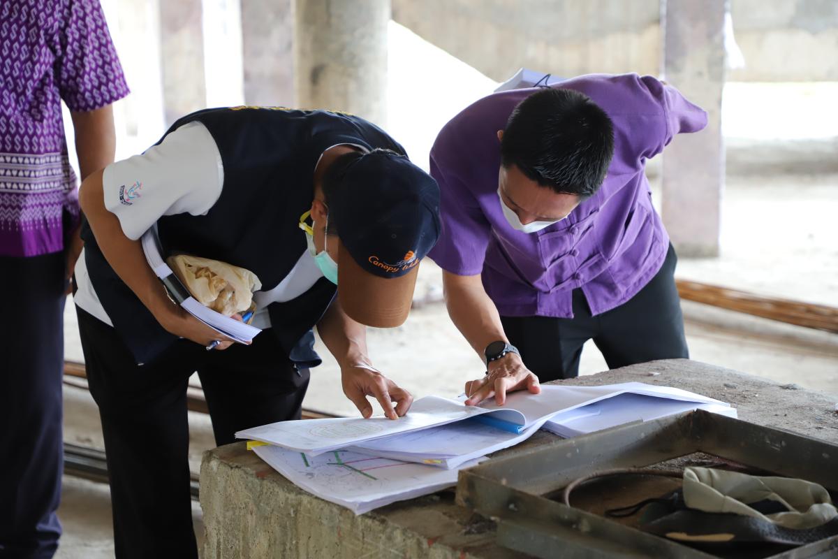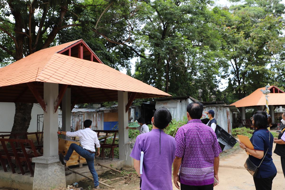 ลงพื้นที่ติดตามความคืบหน้างานก่อสร้าง และพัฒนาปรับปรุงภูมิทัศน์บริเวณดังกล่าว เพื่อให้การก่อสร้างเป็นไปด้วยความเรียบร้อยและเร่งรัดการดำเนินงานให้แล้วเสร็จตามระยะเวลาที่กำหนด