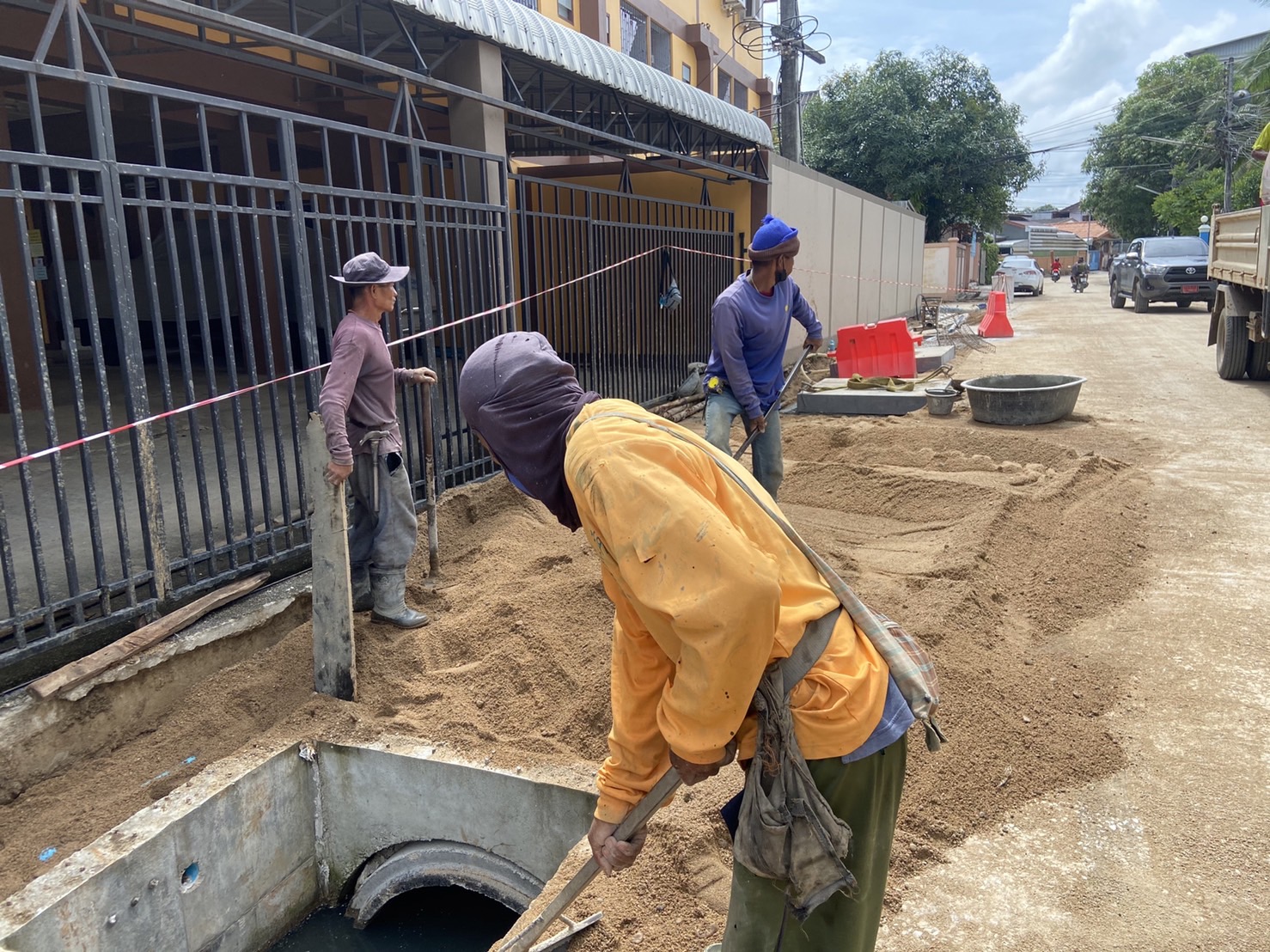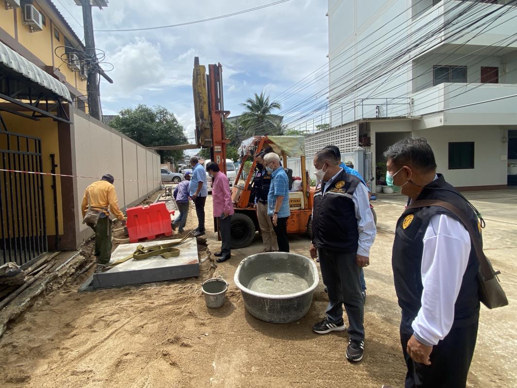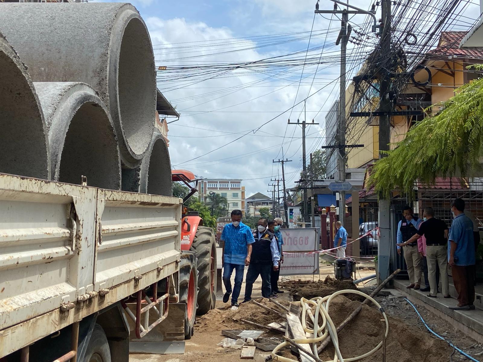 ว่าที่ร้อยตรี ประเสริฐ ปวงละคร นายกเทศมนตรีนครแม่สอด นายสุวิทย์ คามณีวงศ์ รองนายกเทศมนตรี นายกรกฤตย์ กรัณยพัฒน์พงษ์ เลขานุการนายกเทศบาล และสมาชิกสภาเทศบาลนครแม่สอด ลงพื้นที่สำรวจงานก่อสร้างวางท่อระบายน้ำ และเทคอนกรีต