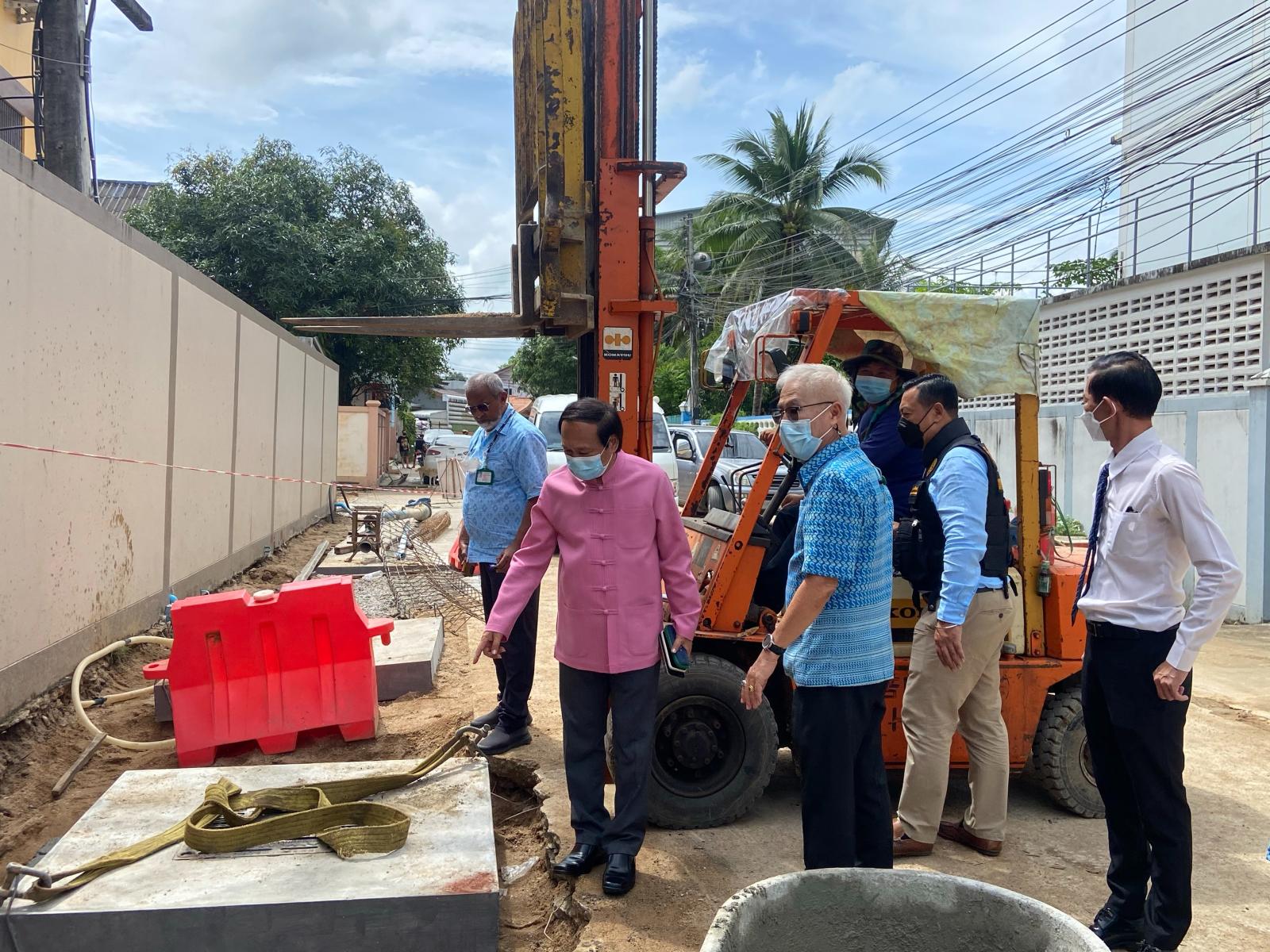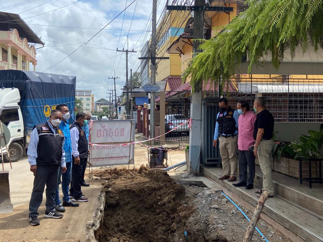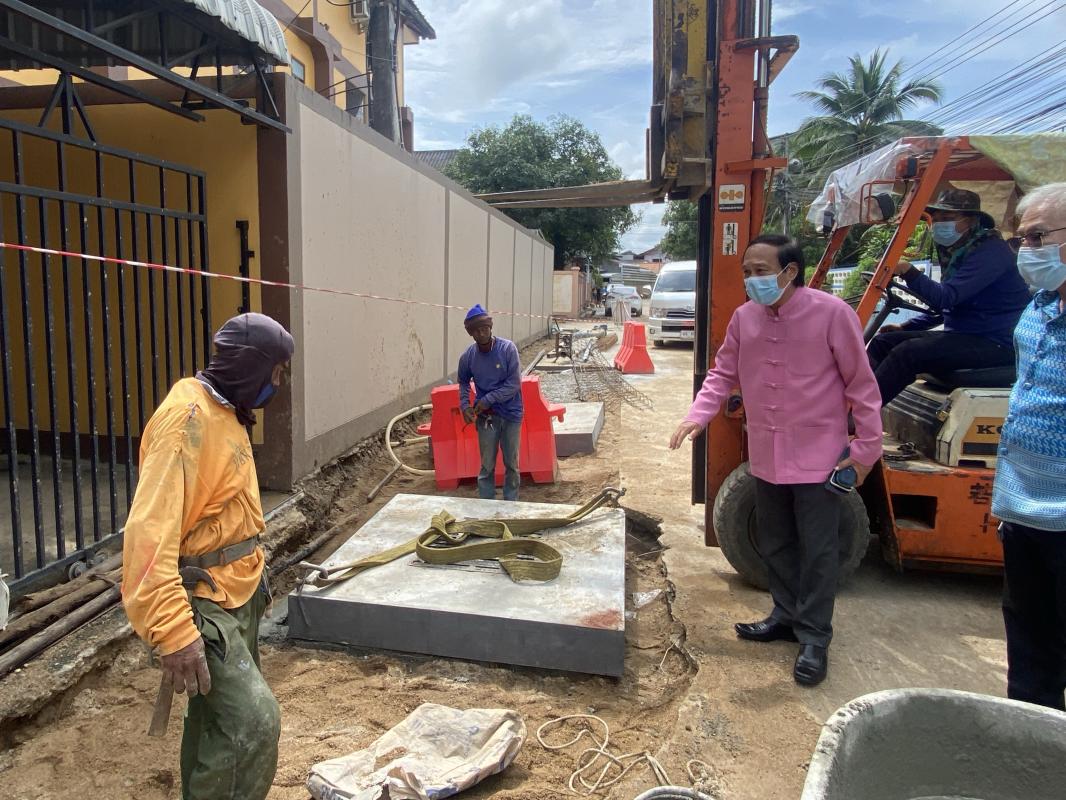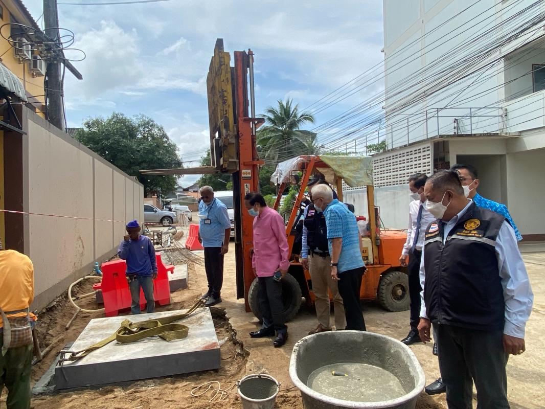 ว่าที่ร้อยตรี ประเสริฐ ปวงละคร นายกเทศมนตรีนครแม่สอด นายสุวิทย์ คามณีวงศ์ รองนายกเทศมนตรี นายกรกฤตย์ กรัณยพัฒน์พงษ์ เลขานุการนายกเทศบาล และสมาชิกสภาเทศบาลนครแม่สอด ลงพื้นที่สำรวจงานก่อสร้างวางท่อระบายน้ำ และเทคอนกรีต