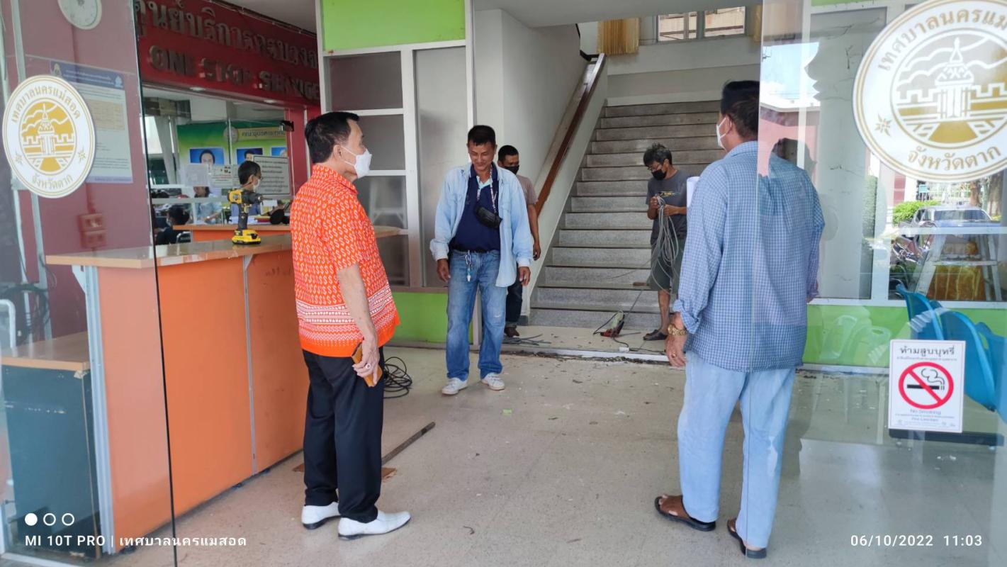 ว่าที่ร้อยตรีประเสริฐ ปวงละคร นายกเทศมนตรีนครแม่สอด พร้อมสมาชิกสภาเทศบาล ตรวจเยี่ยมการปรับปรุงบริเวณด้านหน้าเคาน์เตอร์ประชาสัมพันธ์ (ชั้น 1) อาคารสำนักงานเทศบาลนครแม่สอด เพื่อเตรียมการต้อนรับประชาชนที่เดินทางมาติดต่อราชการ และใช้บริการงานทะเบียนราษฎร์ โดยจะทำการปรับปรุงติดตั้งประตูอัตโนมัติ การติดตั้งป้ายตัวหนังสือวิ่งแอลอีดี การจัดระเบียบเก้าอี้สำหรับรองรับประชาชนที่มาติดต่อราชการ การก่อสร้างทางลาดสำหรับผู้สูงอายุ ผู้พิการ และทำการย้ายเสาไฟฟ้าด้านหน้าศาลาพระพิทักษ์ชายแดน เพื่อขยายเป็นที่จอดรถสำหรับผู้เดินทางมาติดต่อราชการ