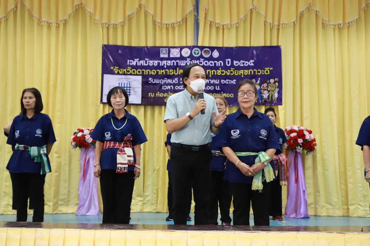 ว่าที่ร้อยตรีประเสริฐ ปวงละคร นายกเทศมนตรีนครแม่สอด พร้อมด้วยนายสุวิทย์ คามณีวงศ์ รองนายกเทศมนตรี นายกรกฤตย์ กรัณยพัฒนพงศ์ เลขานุการนายกเททศมนตรี และประธาน สภาเทศบาล สมาชิกสภาเทศบาล เจ้าหน้าที่กองสวัสดิการสังคม เข้าร่วมงานเวทีสมัชชาสุขภาพจังหวัดตาก ปี 2565 “จังหวัดตากอาหารปลอดภัย ทุกช่วงวัยสุขภาวะดี” โดยนายสมชาย ไตรทิพย์ชาติกุล นายอำเภอแม่สอด เป็นประธานในพิธีเปิด และบรรยายประเด็นจังหวัดอาหารปลอดภัย ครั้งนี้ ยังมีกิจกรรมที่หลากหลาย เช่น การแสดงของชมรมผู้สูงอายุเทศบาลนครแม่สอด นำเสนอแนวทางการขับเคลื่อนและการเปิดเวทีเสวนา “จะก้าวเดินต่องอย่างไร กับ จังหวัดตากอาหารปลอดภัย?” การจัดนิทรรศการของเครือข่ายสตรีอำเภอแม่สอด เครือข่ายท้องถิ่นท้องที่ เครือข่ายผู้อายุ เครือข่ายภาคการศึกษา เครือข่ายสภาองค์กรชุมชน และเครือข่ายเกษตรกร การออกบูธนำสินค้าและผลิตภัณฑ์ที่ปลอดภัยของกลุ่มเกษตรกรในพื้นที่จังหวัดตาก โดยการจัดงานในครั้งนี้ เพื่อก่อเกิดผลผลิตที่ทรงคุณค่า นำไปสู่การปฏิบัติและส่งผลต่อการพัฒนาระบบสุขภาพของประชาชนจังหวัดตาก และองค์กรภาคีเครือข่ายที่เกี่ยวข้องได้นำไปสู่การปฏิบัติร่วมกันให้เกิดผลเป็นรูปธรรมต่อไป