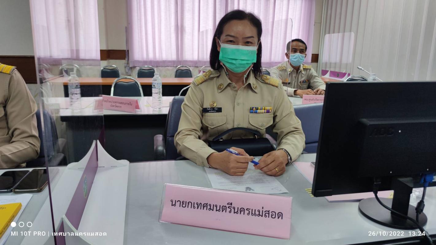 ว่าที่ร้อยตรีประเสริฐ ปวงละคร นายกเทศมนตรีนครแม่สอด มอบหมายให้นางกิตติวรา วิริยา รองปลัดเทศบาลนครแม่สอด เข้าร่วมการประชุมหัวหน้าส่วนราชการ และผู้เกี่ยวข้อง ประจำเดือนตุลาคม 2565 (ครั้งที่ 10/2565) เพื่อรับทราบรายงานผลการปฏิบัติของหน่วยงานต่างๆ และเร่งรัดดำเนินการต่างๆ ที่ได้รับหมอบหมาย