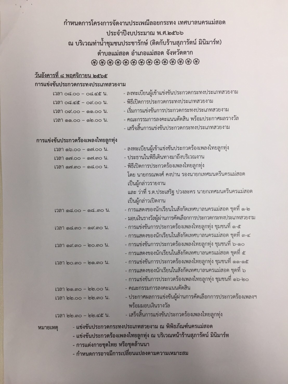 ประชาสัมพันธ์เทศบาลนครแม่สอด ขอเชิญร่วมสืบสานงานประเพณีลอยกระทง ประจำปีงบประมาณ 2566