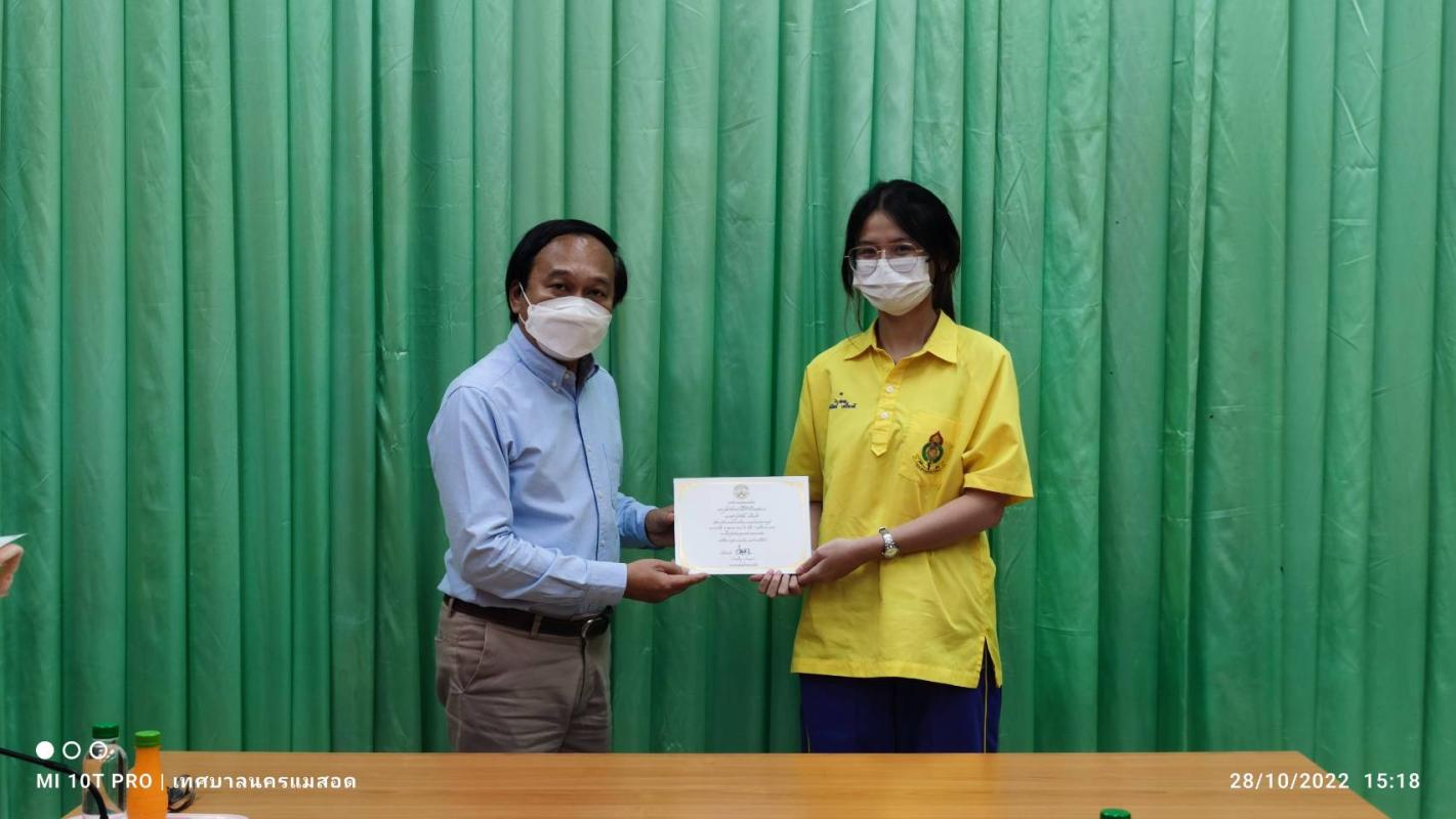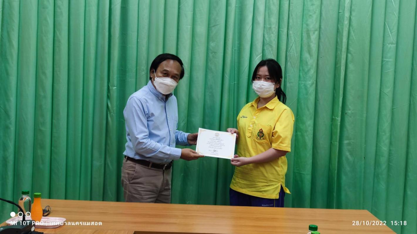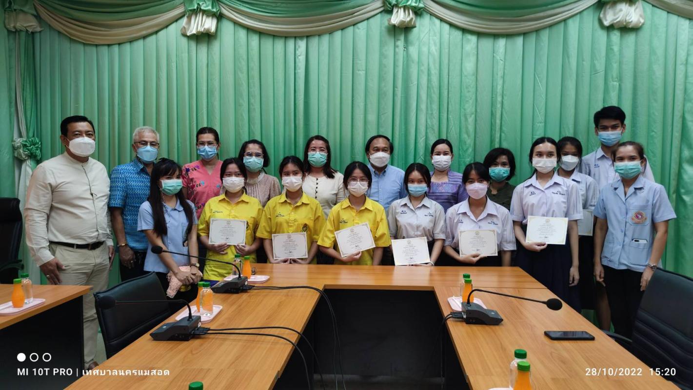 ว่าที่ร้อยตรีประเสริฐ ปวงละคร นายกเทศมนตรีนครแม่สอด พร้อมด้วยคณะผู้บริหาร สมาชิกสภาเทศบาล ข้าราชการและพนักงานกองสาธารณสุขและสิ่งแวดล้อม เจ้าหน้าที่คลินิกชุมชนอบอุ่น เข้าร่วมพิธีมอบใบประกาศเกียรติบัตร แก่นักเรียนจากโรงเรียนสรรพวิทยา ในสายวิทยาศาสตร์–สุขภาพ ของมหาวิทยาลัยรัฐ โดยผ่านการเข้าฝึกประสบการณ์ด้านการแพทย์และสาธารณสุข คลินิกชุมชนอบอุ่น ตั้งแต่วันที่ 18 ตุลาคม 2565 ถึงวันที่ 1 พฤศจิกายน 2565 จำนวน 8 คน เพื่อหาประสบการณ์ตลอดจนการเรียนรู้เกี่ยวกับการดูแลผู้ป่วยเบื้องต้นและช่วยเหลืองานจิตอาสาด้านอื่นๆ
