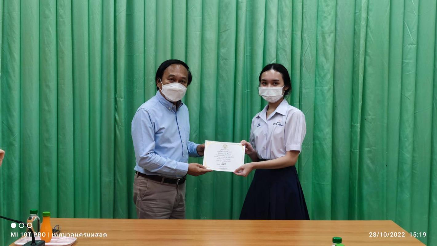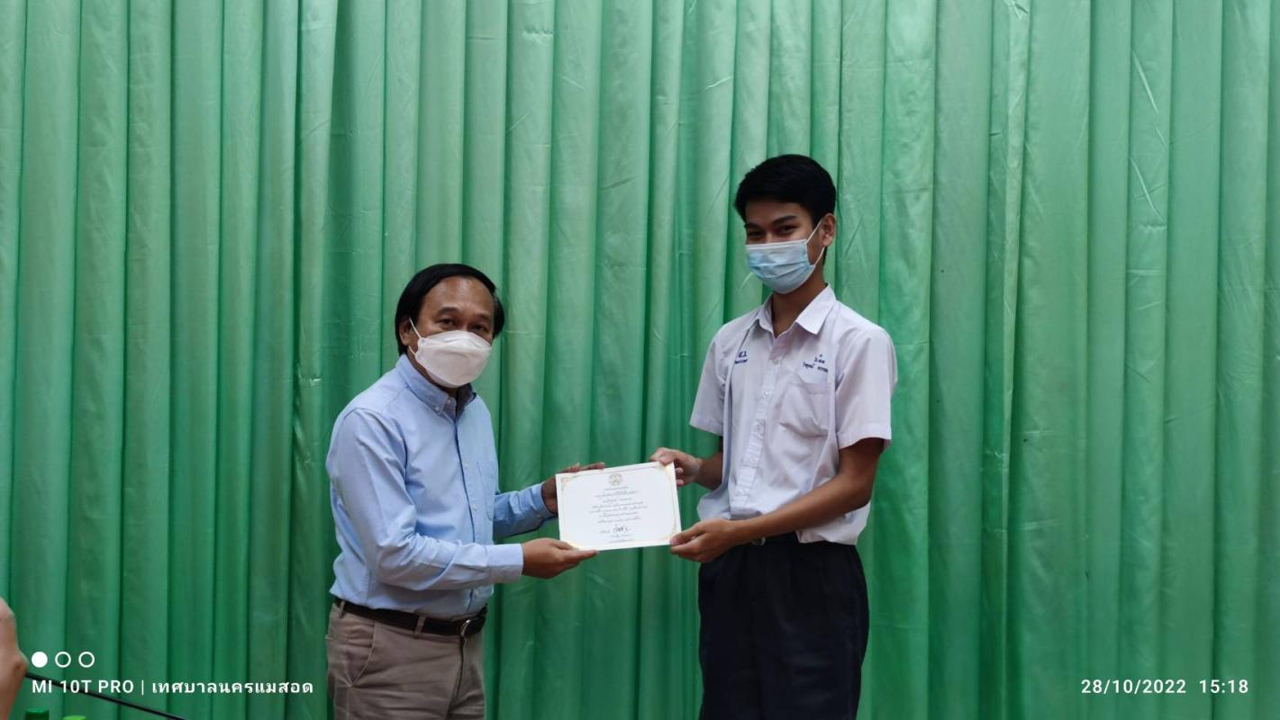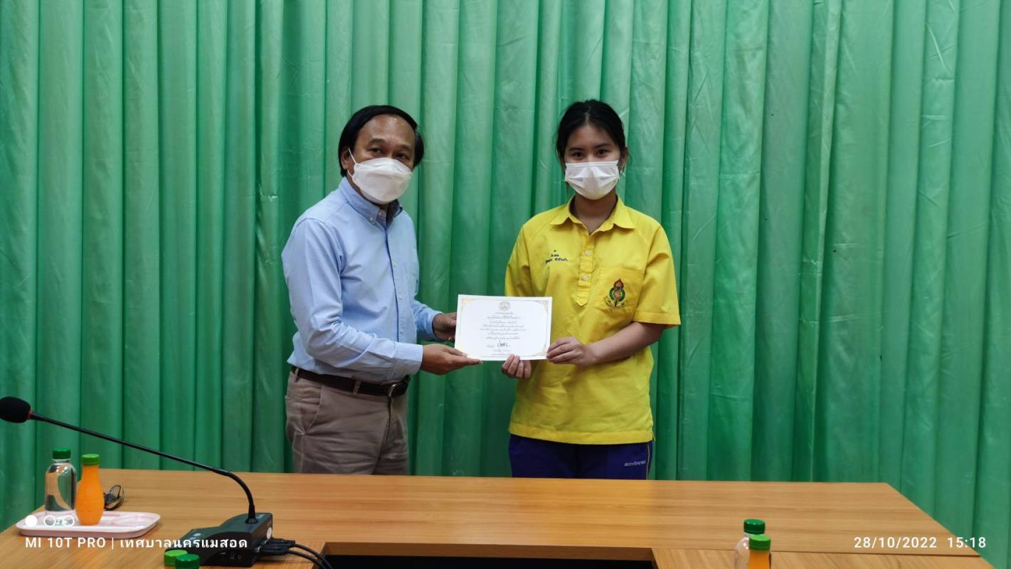 ว่าที่ร้อยตรีประเสริฐ ปวงละคร นายกเทศมนตรีนครแม่สอด พร้อมด้วยคณะผู้บริหาร สมาชิกสภาเทศบาล ข้าราชการและพนักงานกองสาธารณสุขและสิ่งแวดล้อม เจ้าหน้าที่คลินิกชุมชนอบอุ่น เข้าร่วมพิธีมอบใบประกาศเกียรติบัตร แก่นักเรียนจากโรงเรียนสรรพวิทยา ในสายวิทยาศาสตร์–สุขภาพ ของมหาวิทยาลัยรัฐ โดยผ่านการเข้าฝึกประสบการณ์ด้านการแพทย์และสาธารณสุข คลินิกชุมชนอบอุ่น ตั้งแต่วันที่ 18 ตุลาคม 2565 ถึงวันที่ 1 พฤศจิกายน 2565 จำนวน 8 คน เพื่อหาประสบการณ์ตลอดจนการเรียนรู้เกี่ยวกับการดูแลผู้ป่วยเบื้องต้นและช่วยเหลืองานจิตอาสาด้านอื่นๆ