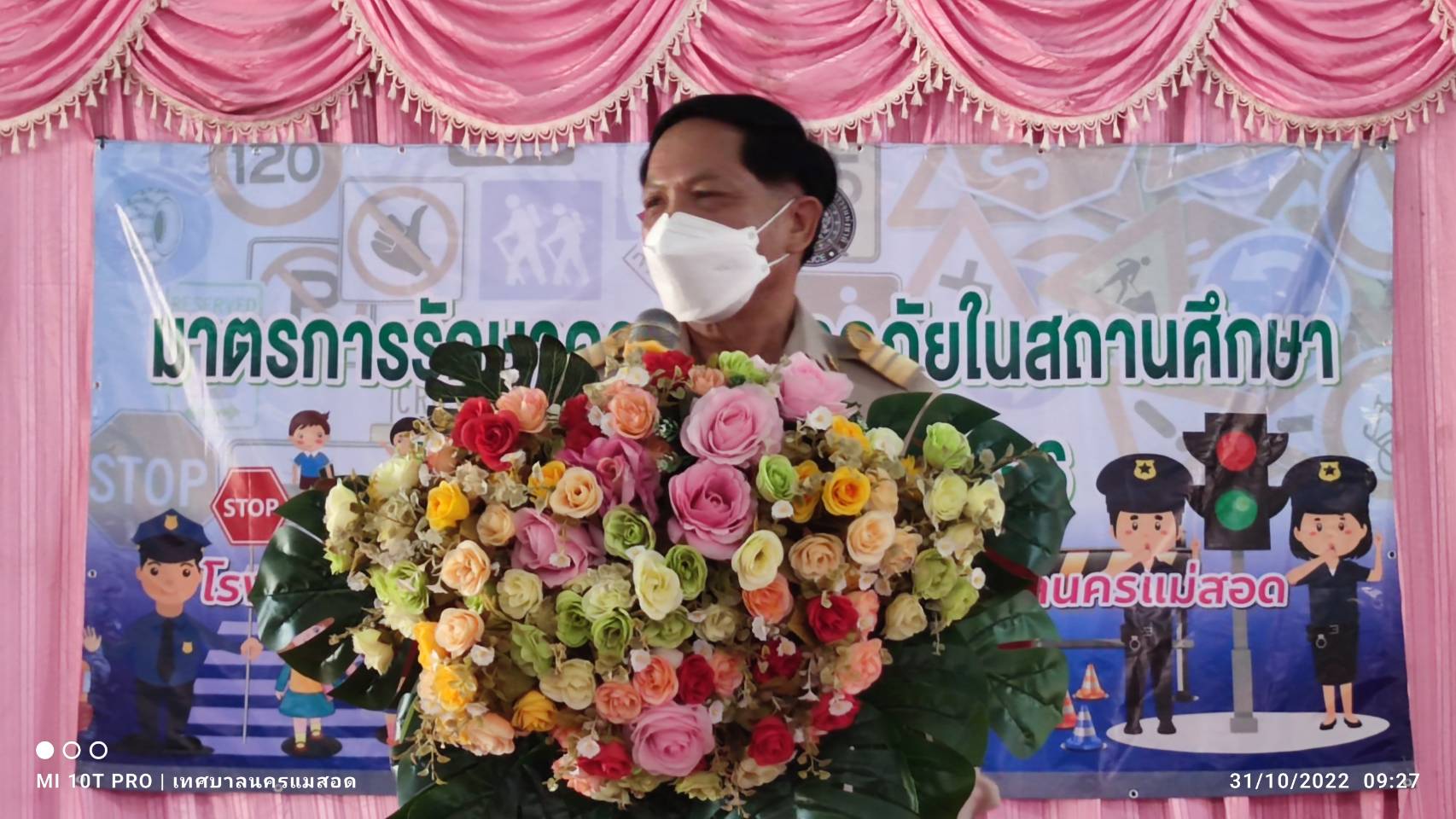 ว่าที่ร้อยตรีประเสริฐ ปวงละคร นายกเทศมนตรีนครแม่สอด มอบหมายให้นายกรณพงศ์ คงปาน รองนายกเทศมนตรี เป็นประธาน ในพิธี พร้อมด้วยคณะผู้บริหาร ประธานสภาเทศบาล สมาชิกสภาเทศบาล ผู้อำนวยการกองการศึกษา และเจ้าหน้าที่ที่เกี่ยวข้อง เข้าร่วมการอบรมมาตรการรักษาความปลอดภัยในสถานศึกษา และการรักษาวินัยจราจร