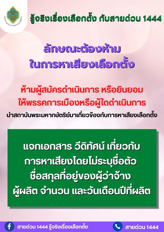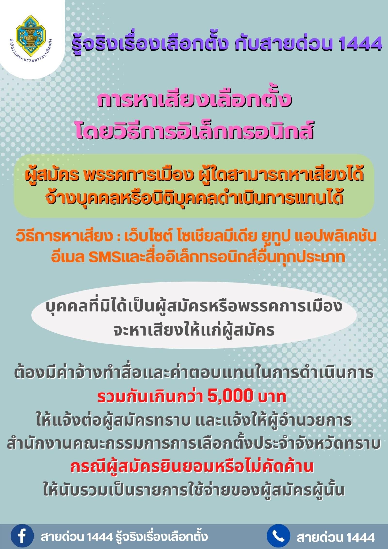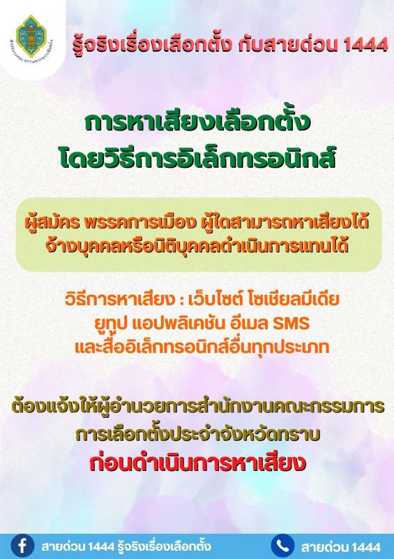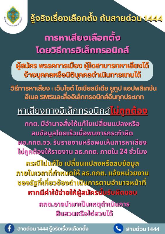 ประชาสัมพันธ์ รู้จริงเรื่องเลือกตั้ง กับสายด่วน 1444 โดยสำนักงานคณะกรรมการการเลือกตั้ง