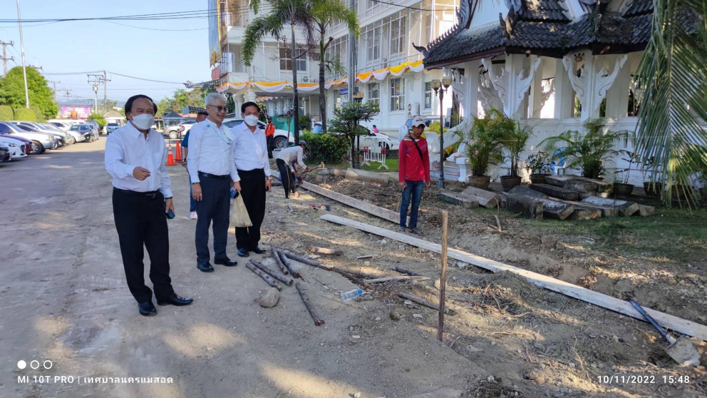 ว่าที่ร้อยตรีประเสริฐ ปวงละคร นายกเทศมนตรีนครแม่สอด พร้อมคณะผู้บริหาร สมาชิกสภาเทศบาล และเจ้าหน้าที่ที่เกี่ยวข้องเทศบาลนครแม่สอด ลงพื้นที่ติดตามความเรียบร้อยการปรับปรุงที่จอดรถ และภูมิทัศน์บริเวณหน้าสำนักงานเทศบาลนครแม่สอด และข้างสนามกีฬาสมเด็จพระนเรศวรมหาราช เพื่อปรับภูมิทัศน์ให้สวยงามและขยายที่จอดรถสำหรับบริการประชาชนที่เดินทางมาติดต่อราชการ