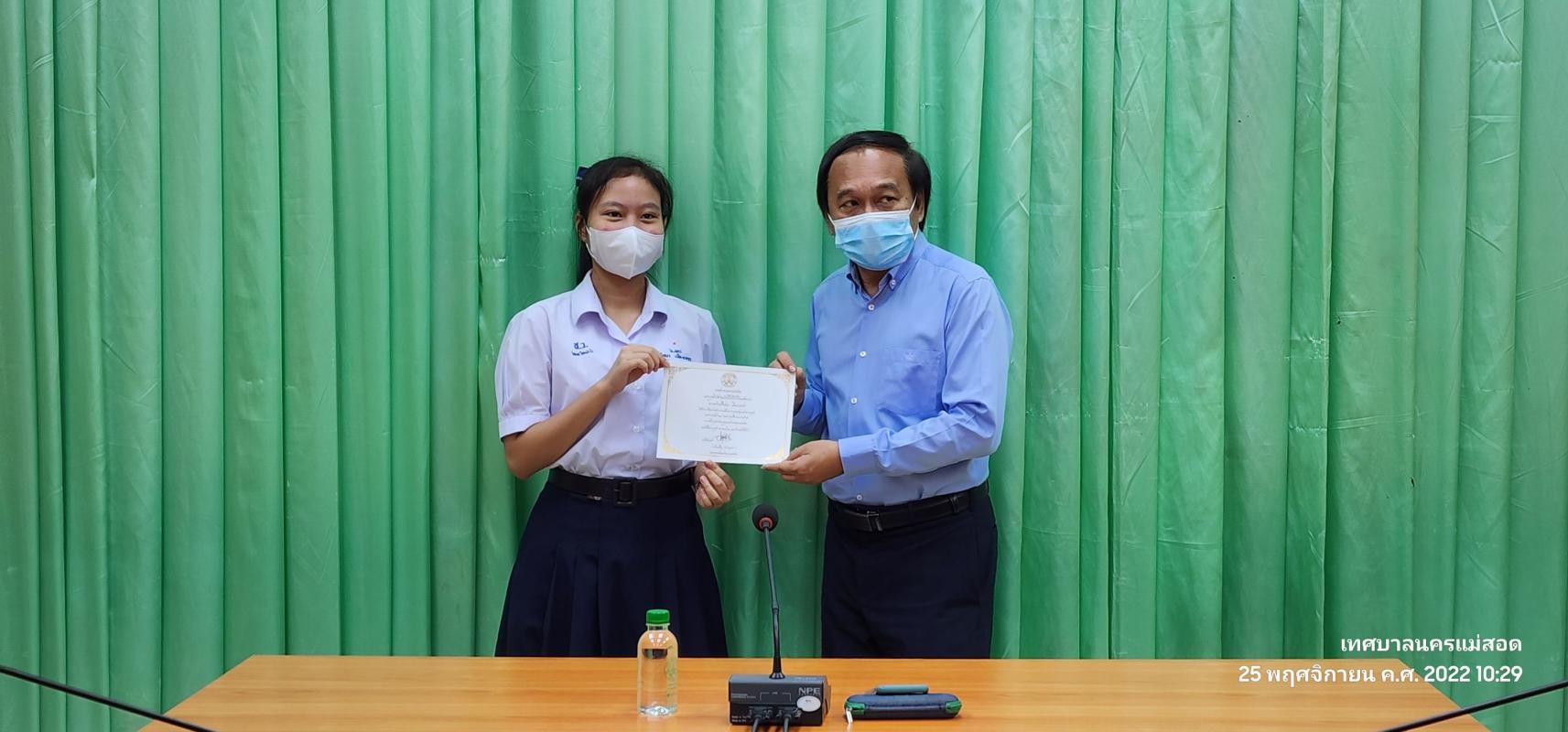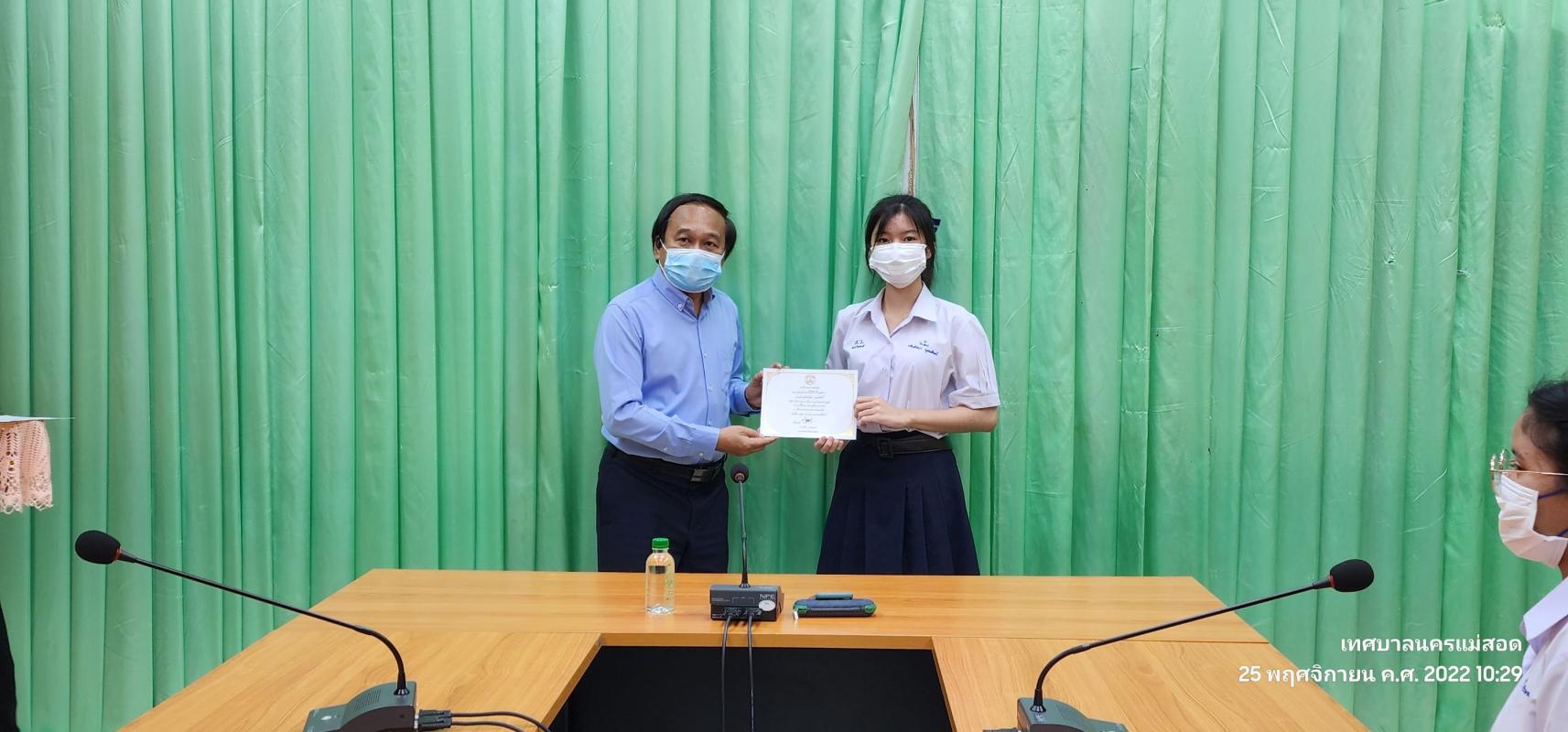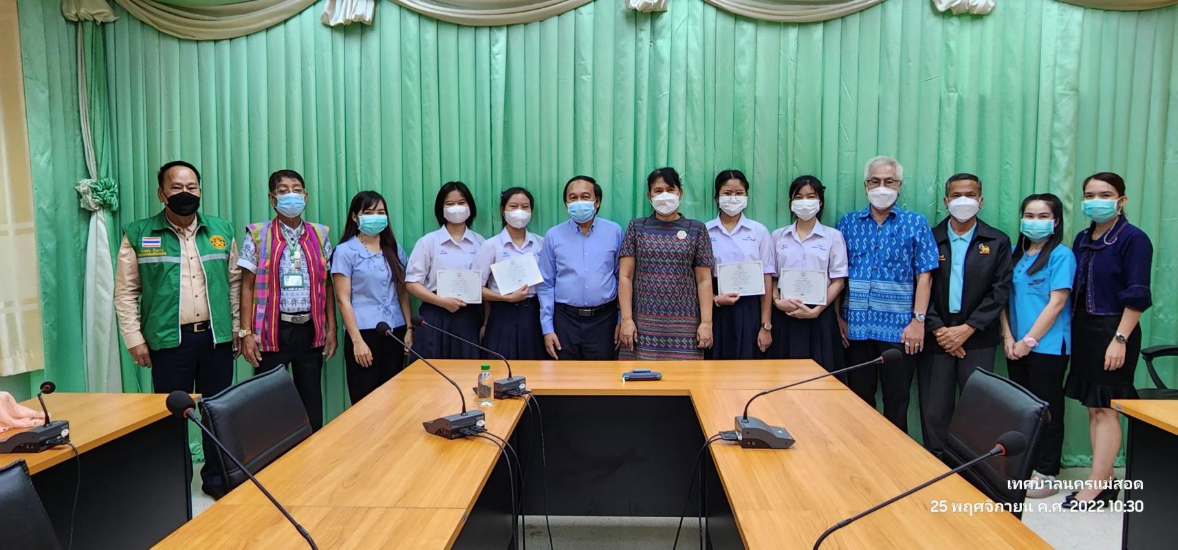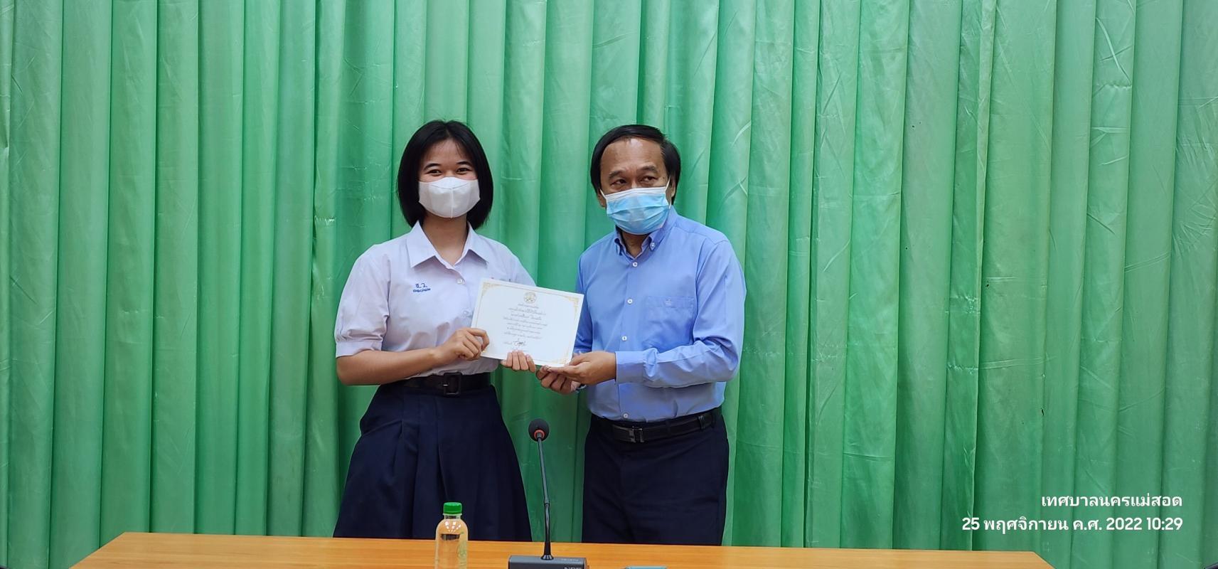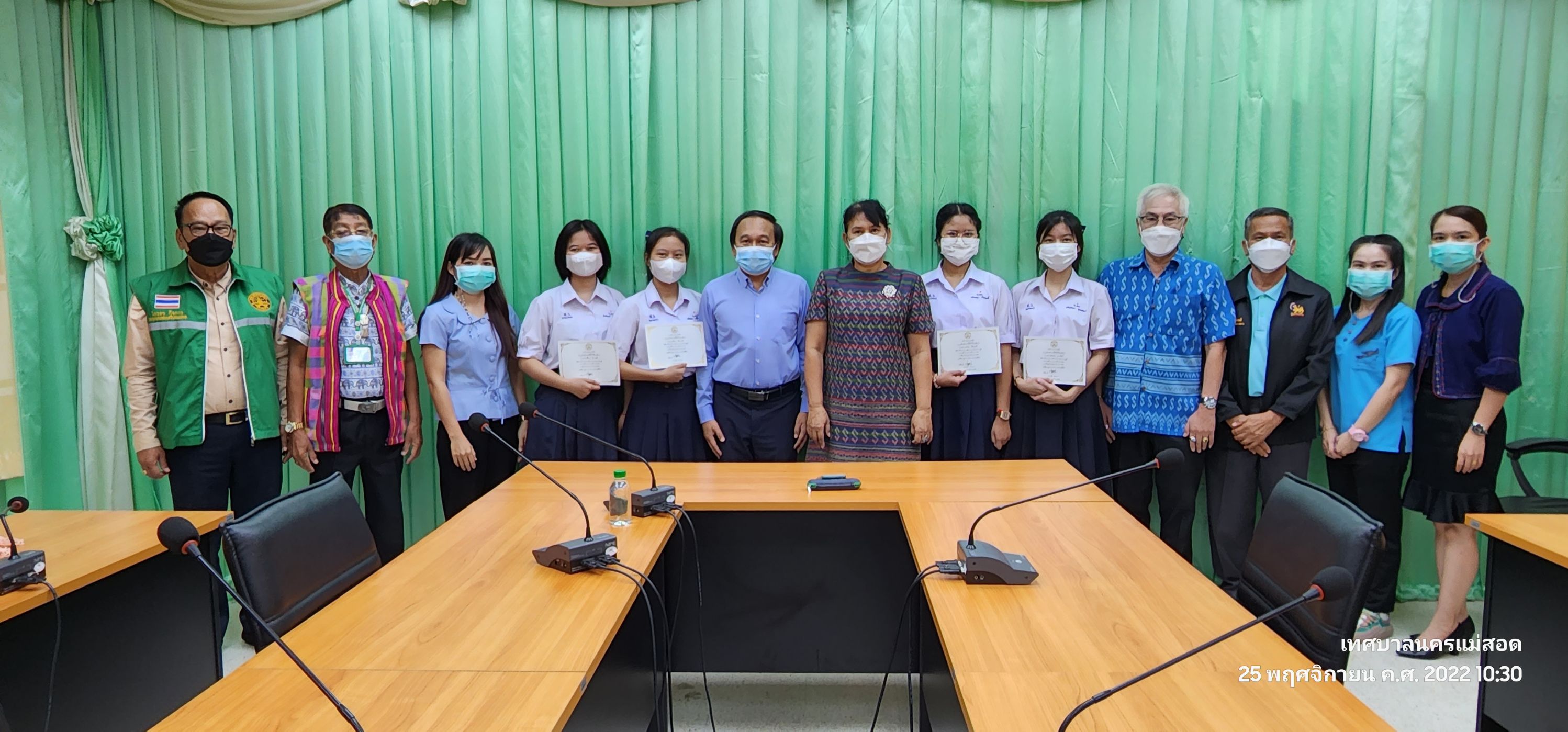 ว่าที่ร้อยตรีประเสริฐ ปวงละคร นายกเทศมนตรีนครแม่สอด พร้อมด้วยคณะผู้บริหาร สมาชิกสภาเทศบาล คณะครูอาจารย์ ข้าราชการและเจ้าหน้าที่คลินิกชุมชนอบอุ่น เข้าร่วมพิธีมอบใบประกาศเกียรติบัตร แก่นักเรียนจาก โรงเรียนสรรพวิทยาคม ในสายวิทยาศาสตร์–สุขภาพของมหาวิทยาลัยรัฐ โดยผ่านการเข้าฝึกประสบการณ์ด้านการแพทย์และสาธารณสุข คลินิกชุมชนอบอุ่น ตั้งแต่วันที่ 21 พฤศจิกายน 2565 ถึงวันที่ 25 พฤศจิกายน 2565 จำนวน 5 คน เพื่อหาประสบการณ์ตลอดจนการเรียนรู้เกี่ยวกับการดูแลผู้ป่วยเบื้องต้นและช่วยเหลืองานจิตอาสาด้านอื่นๆ