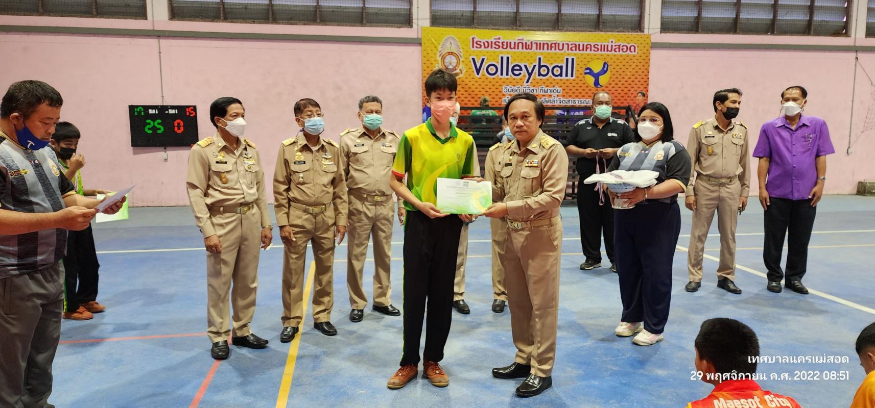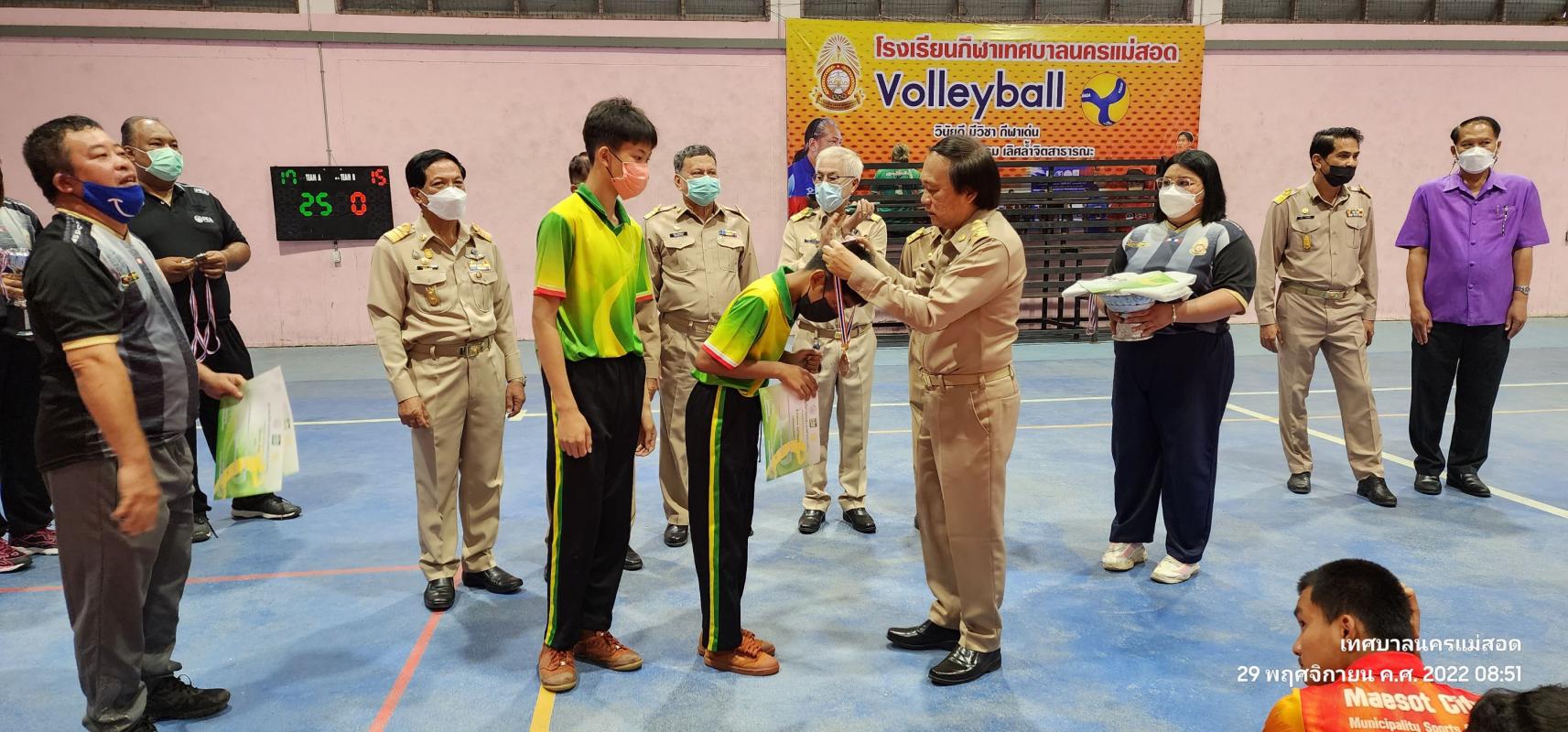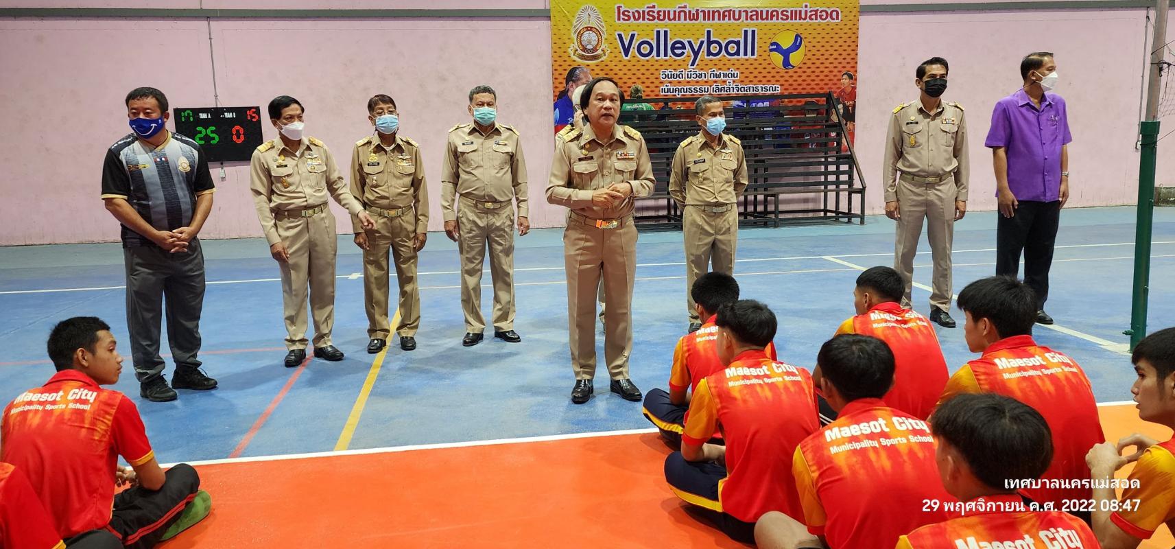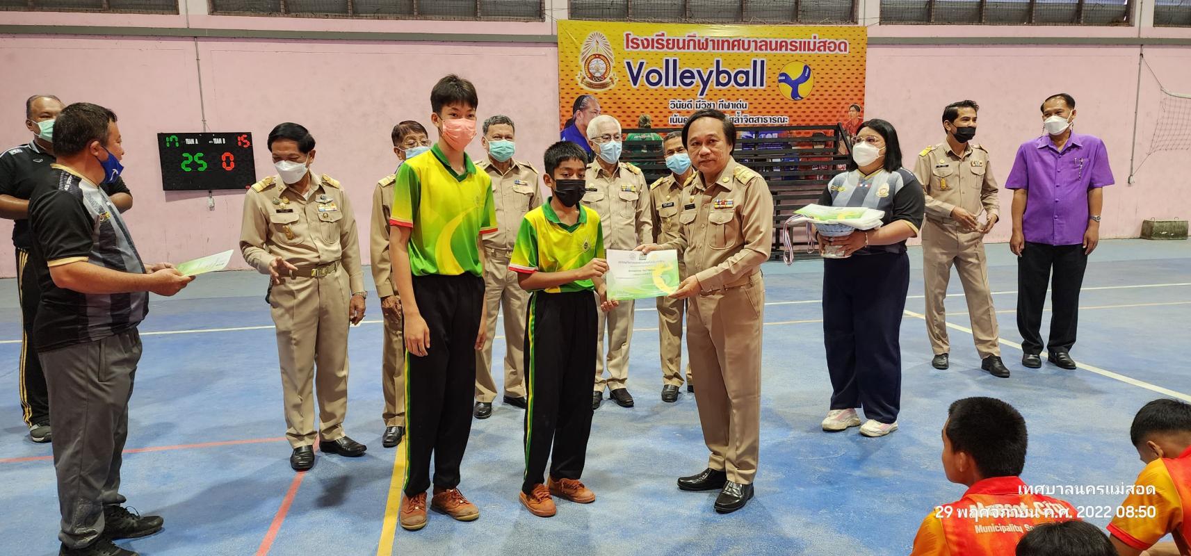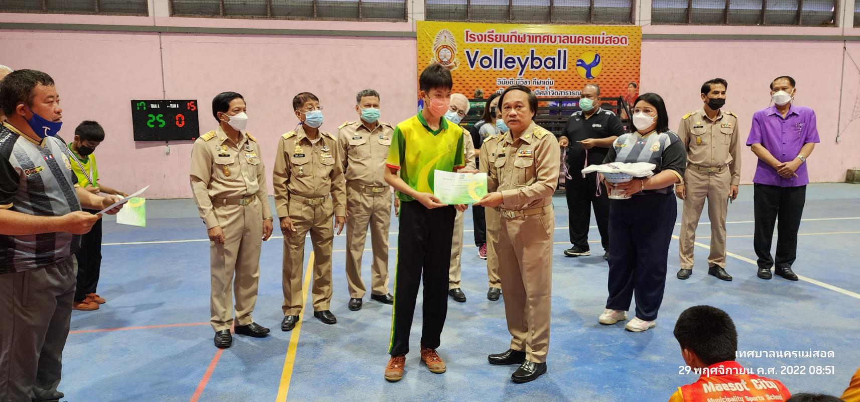 ว่าที่ร้อยตรีประเสริฐ ปวงละคร นายกเทศมนตรีนครแม่สอด พร้อมด้วยคณะผู้บริหาร สมาชิกสภาเทศบาล ผู้อำนวยการกองศึกษา ผู้บริหารสถานศึกษาเทศบาลนครแม่สอด และเจ้าหน้าที่ที่เกี่ยวข้อง เข้าร่วมพิธีมอบโอวาท เพื่อสร้างขวัญกำลังใจให้กับคณะนักกีฬา ผู้ฝึกสอน และเจ้าหน้าที่ที่เกี่ยวข้อง ก่อนเข้าร่วมการแข่งขันกีฬาเยาวชนแห่งชาติ ภาค 5 ครั้งที่ 38 “พิจิตรเกมส์” กำหนดจัดขึ้นระหว่างวันที่ 1-10 ธันวาคม 2565 ที่จะมาถึงนี้ ร่วมถึงคณะผู้บริหารได้แสดงความยินดี และทำพิธีมอบถ้วยรางวัลพร้อมเหรียญใบประกาศนียบัตร แก่นักกีฬาผู้เข้าร่วมการแข่งขันรายการยูโร่เค้ก ไทยแลน บีช วอลเลย์บอล 2022 รอบคัดเลือกภาคเหนือ ณ สนามกีฬาวอลเลย์บอลชายหาดวิทยาลัยเทคโนโลยีโปลิเทคนิคล้านนาจังหวัดเชียงใหม่ ที่ผ่านมา โดยตัวแทนนักกีฬาโรงเรียนมณีไพรสณฑ์ คว้าเหรียญรองชนะเลิศอันดับสองวอลเลย์บอลชายหาด อายุ 13 ปี และตัวแทนนักกีฬาโรงเรียนกีฬาเทศบาลนครแม่สอด คว้าแชมป์วอลเลย์บอลชายหาด อายุ 16 ปี เป็นตัวแทนภาคเหนือ เพื่อเข่าร่วมแข่งขันที่จังหวัดเพชรบุรีต่อไป
