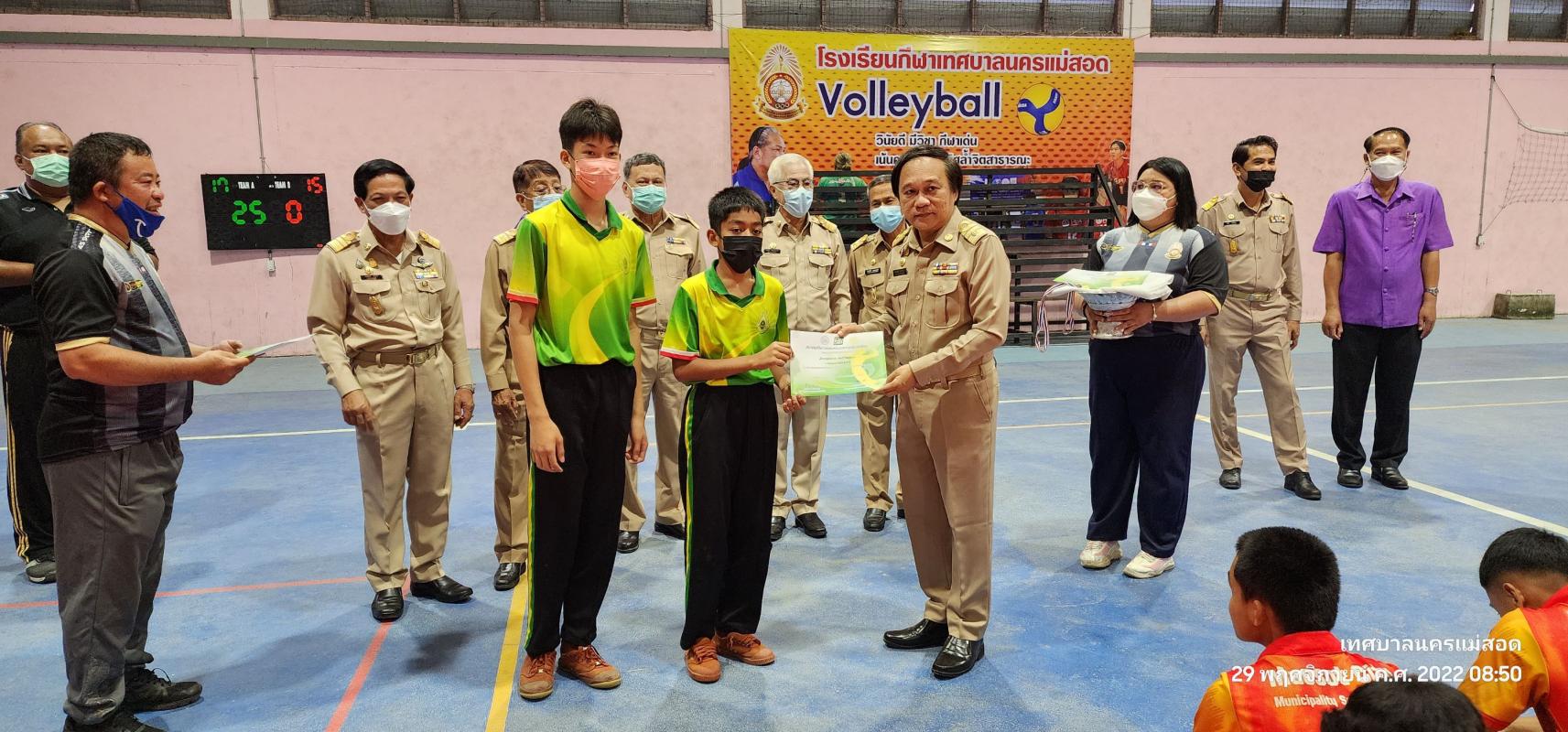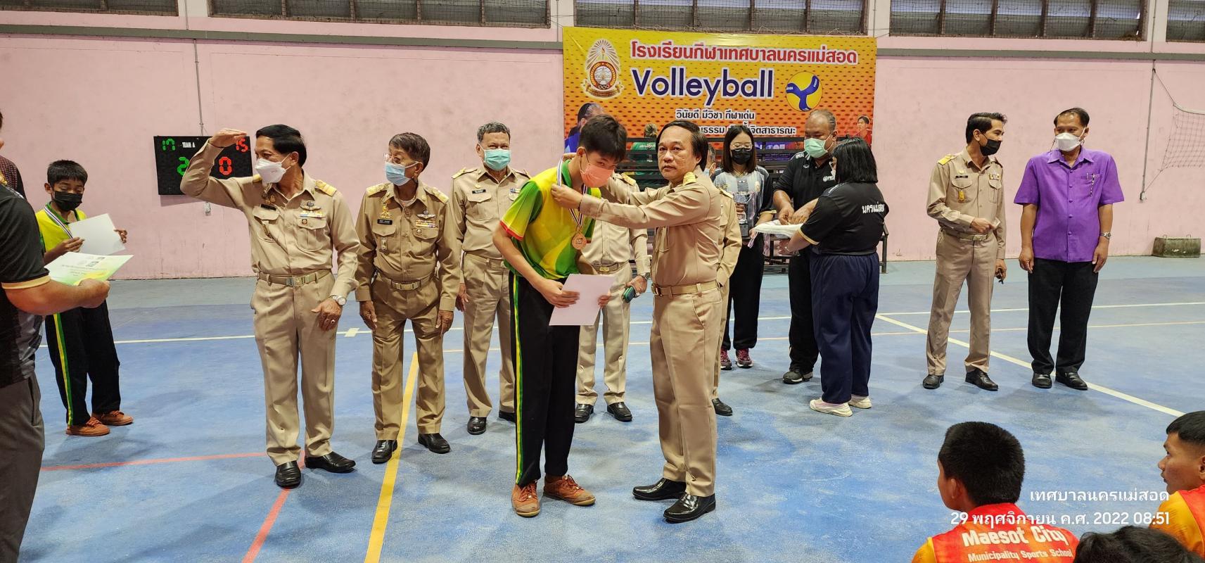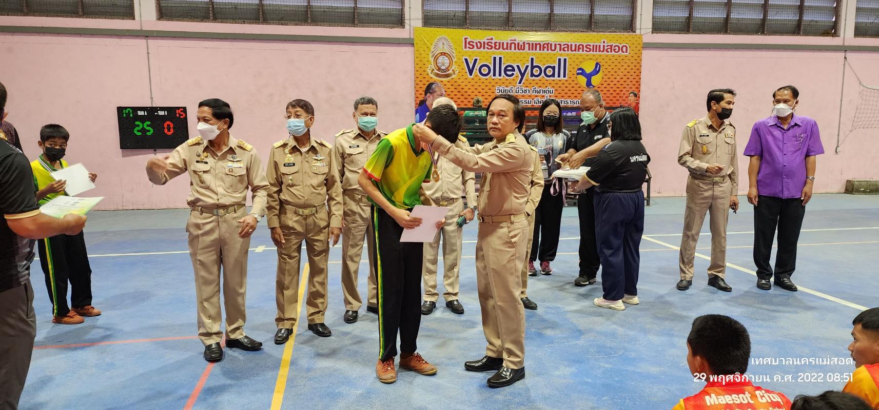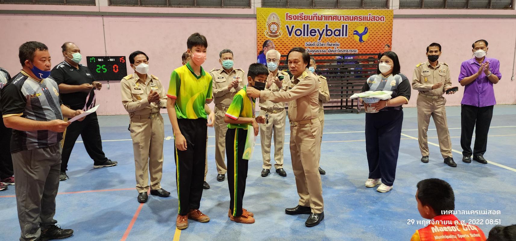 ว่าที่ร้อยตรีประเสริฐ ปวงละคร นายกเทศมนตรีนครแม่สอด พร้อมด้วยคณะผู้บริหาร สมาชิกสภาเทศบาล ผู้อำนวยการกองศึกษา ผู้บริหารสถานศึกษาเทศบาลนครแม่สอด และเจ้าหน้าที่ที่เกี่ยวข้อง เข้าร่วมพิธีมอบโอวาท เพื่อสร้างขวัญกำลังใจให้กับคณะนักกีฬา ผู้ฝึกสอน และเจ้าหน้าที่ที่เกี่ยวข้อง ก่อนเข้าร่วมการแข่งขันกีฬาเยาวชนแห่งชาติ ภาค 5 ครั้งที่ 38 “พิจิตรเกมส์” กำหนดจัดขึ้นระหว่างวันที่ 1-10 ธันวาคม 2565 ที่จะมาถึงนี้ ร่วมถึงคณะผู้บริหารได้แสดงความยินดี และทำพิธีมอบถ้วยรางวัลพร้อมเหรียญใบประกาศนียบัตร แก่นักกีฬาผู้เข้าร่วมการแข่งขันรายการยูโร่เค้ก ไทยแลน บีช วอลเลย์บอล 2022 รอบคัดเลือกภาคเหนือ ณ สนามกีฬาวอลเลย์บอลชายหาดวิทยาลัยเทคโนโลยีโปลิเทคนิคล้านนาจังหวัดเชียงใหม่ ที่ผ่านมา โดยตัวแทนนักกีฬาโรงเรียนมณีไพรสณฑ์ คว้าเหรียญรองชนะเลิศอันดับสองวอลเลย์บอลชายหาด อายุ 13 ปี และตัวแทนนักกีฬาโรงเรียนกีฬาเทศบาลนครแม่สอด คว้าแชมป์วอลเลย์บอลชายหาด อายุ 16 ปี เป็นตัวแทนภาคเหนือ เพื่อเข่าร่วมแข่งขันที่จังหวัดเพชรบุรีต่อไป