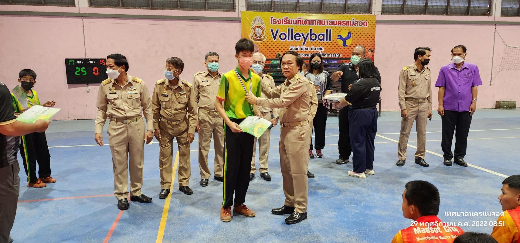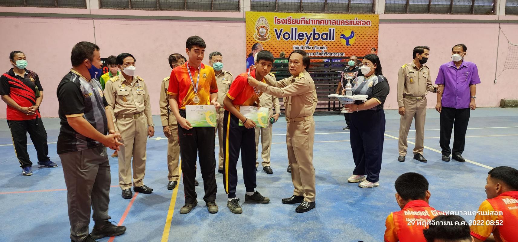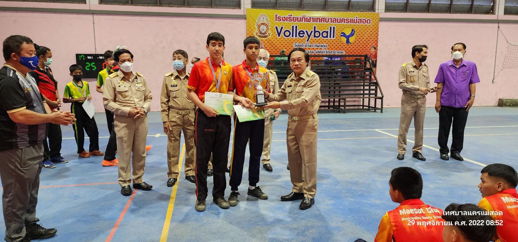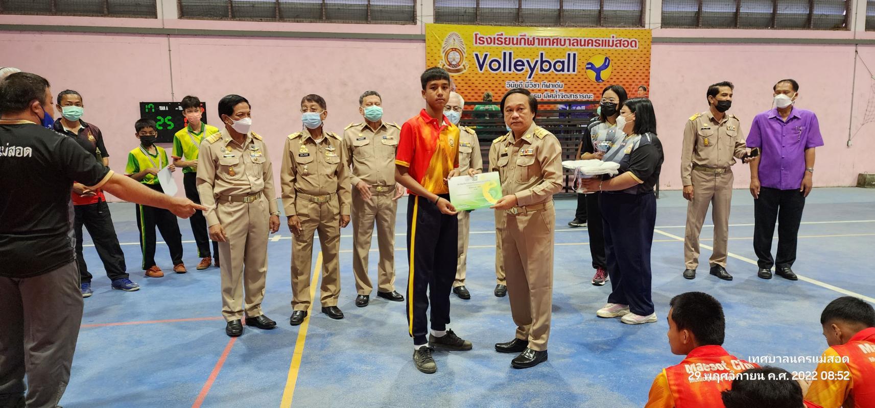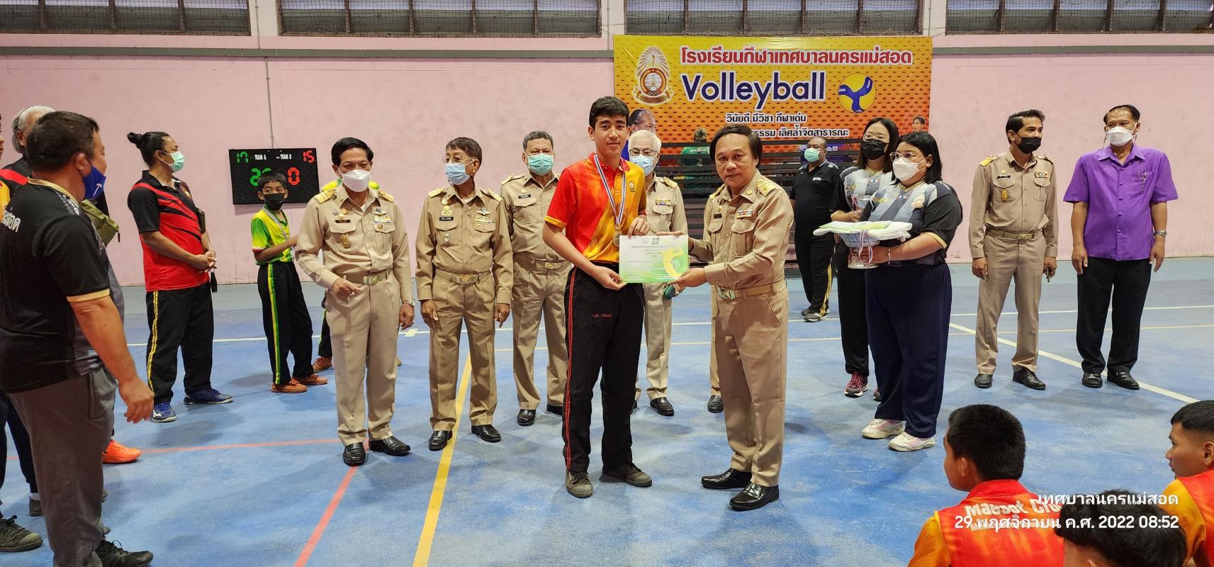 ว่าที่ร้อยตรีประเสริฐ ปวงละคร นายกเทศมนตรีนครแม่สอด พร้อมด้วยคณะผู้บริหาร สมาชิกสภาเทศบาล ผู้อำนวยการกองศึกษา ผู้บริหารสถานศึกษาเทศบาลนครแม่สอด และเจ้าหน้าที่ที่เกี่ยวข้อง เข้าร่วมพิธีมอบโอวาท เพื่อสร้างขวัญกำลังใจให้กับคณะนักกีฬา ผู้ฝึกสอน และเจ้าหน้าที่ที่เกี่ยวข้อง ก่อนเข้าร่วมการแข่งขันกีฬาเยาวชนแห่งชาติ ภาค 5 ครั้งที่ 38 “พิจิตรเกมส์” กำหนดจัดขึ้นระหว่างวันที่ 1-10 ธันวาคม 2565 ที่จะมาถึงนี้ ร่วมถึงคณะผู้บริหารได้แสดงความยินดี และทำพิธีมอบถ้วยรางวัลพร้อมเหรียญใบประกาศนียบัตร แก่นักกีฬาผู้เข้าร่วมการแข่งขันรายการยูโร่เค้ก ไทยแลน บีช วอลเลย์บอล 2022 รอบคัดเลือกภาคเหนือ ณ สนามกีฬาวอลเลย์บอลชายหาดวิทยาลัยเทคโนโลยีโปลิเทคนิคล้านนาจังหวัดเชียงใหม่ ที่ผ่านมา โดยตัวแทนนักกีฬาโรงเรียนมณีไพรสณฑ์ คว้าเหรียญรองชนะเลิศอันดับสองวอลเลย์บอลชายหาด อายุ 13 ปี และตัวแทนนักกีฬาโรงเรียนกีฬาเทศบาลนครแม่สอด คว้าแชมป์วอลเลย์บอลชายหาด อายุ 16 ปี เป็นตัวแทนภาคเหนือ เพื่อเข่าร่วมแข่งขันที่จังหวัดเพชรบุรีต่อไป