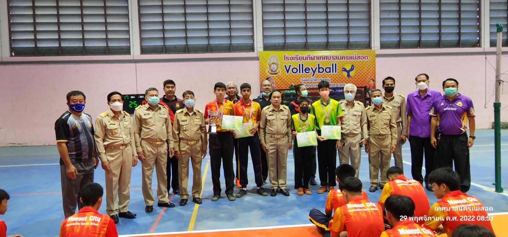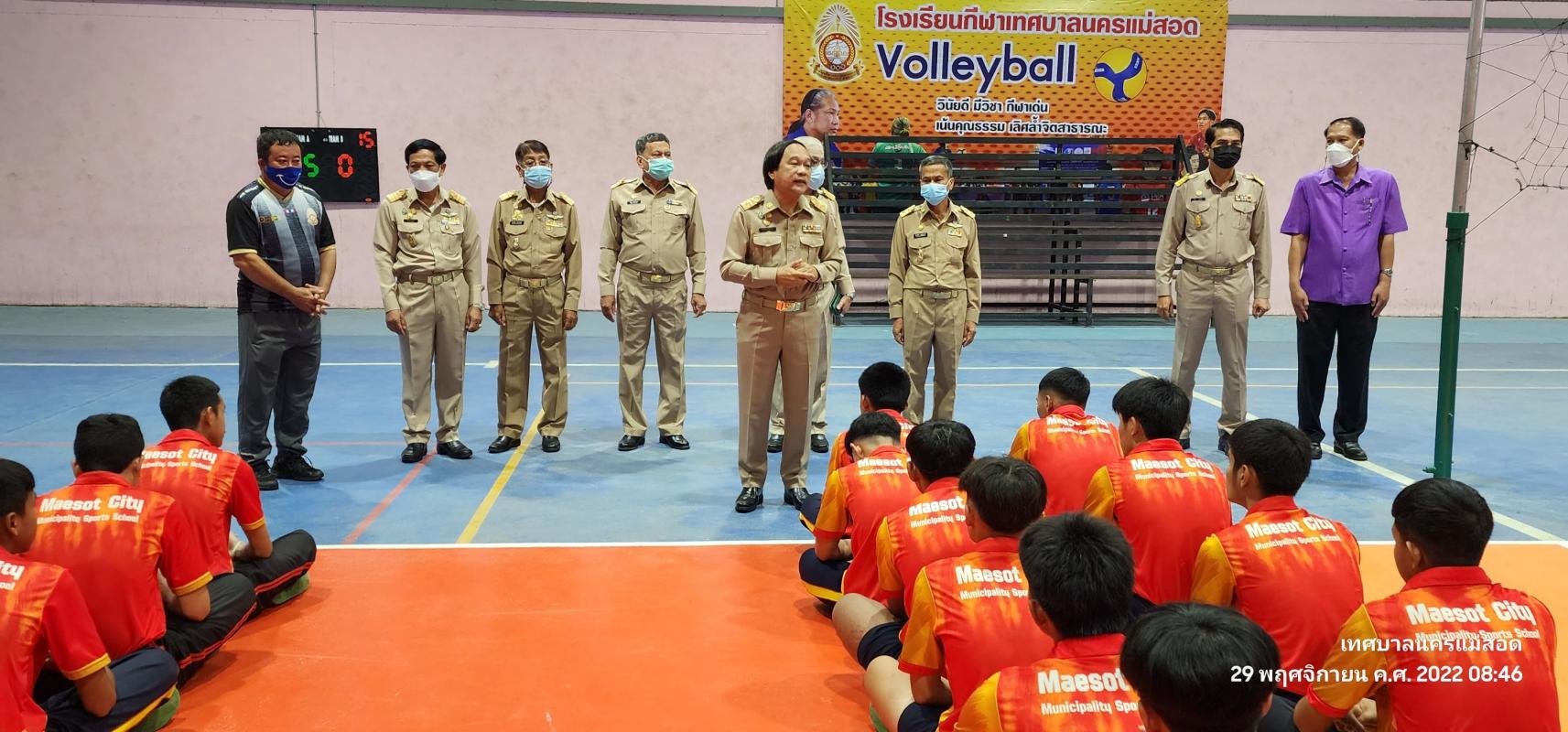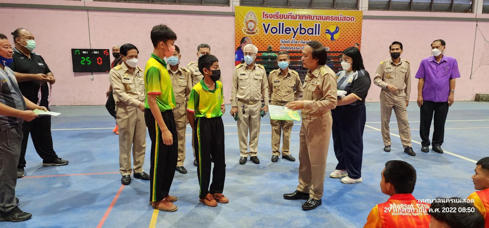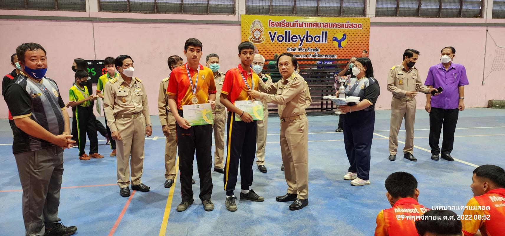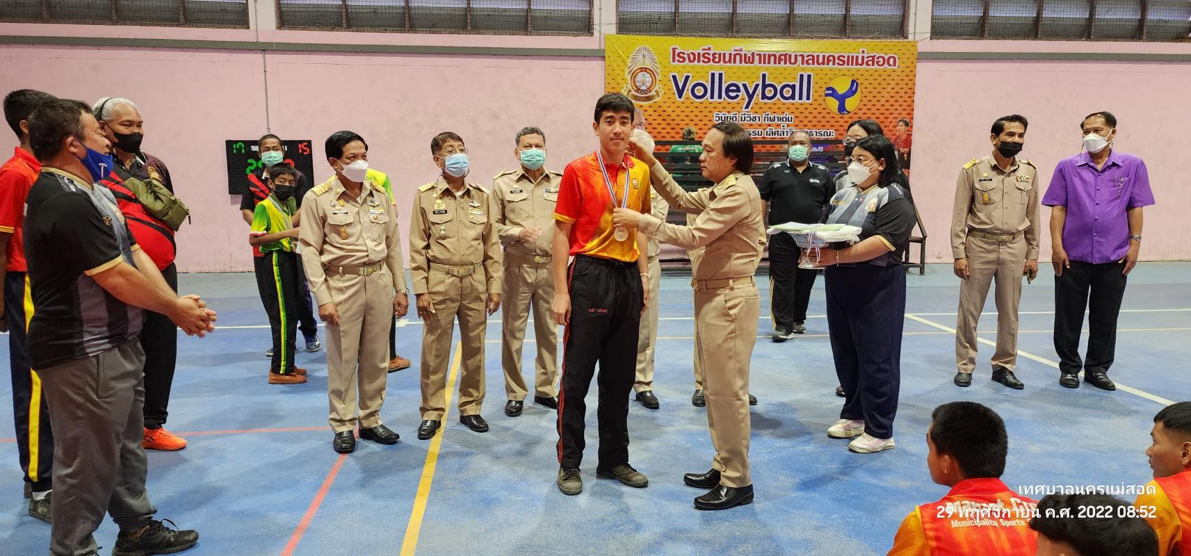 ว่าที่ร้อยตรีประเสริฐ ปวงละคร นายกเทศมนตรีนครแม่สอด พร้อมด้วยคณะผู้บริหาร สมาชิกสภาเทศบาล ผู้อำนวยการกองศึกษา ผู้บริหารสถานศึกษาเทศบาลนครแม่สอด และเจ้าหน้าที่ที่เกี่ยวข้อง เข้าร่วมพิธีมอบโอวาท เพื่อสร้างขวัญกำลังใจให้กับคณะนักกีฬา ผู้ฝึกสอน และเจ้าหน้าที่ที่เกี่ยวข้อง ก่อนเข้าร่วมการแข่งขันกีฬาเยาวชนแห่งชาติ ภาค 5 ครั้งที่ 38 “พิจิตรเกมส์” กำหนดจัดขึ้นระหว่างวันที่ 1-10 ธันวาคม 2565 ที่จะมาถึงนี้ ร่วมถึงคณะผู้บริหารได้แสดงความยินดี และทำพิธีมอบถ้วยรางวัลพร้อมเหรียญใบประกาศนียบัตร แก่นักกีฬาผู้เข้าร่วมการแข่งขันรายการยูโร่เค้ก ไทยแลน บีช วอลเลย์บอล 2022 รอบคัดเลือกภาคเหนือ ณ สนามกีฬาวอลเลย์บอลชายหาดวิทยาลัยเทคโนโลยีโปลิเทคนิคล้านนาจังหวัดเชียงใหม่ ที่ผ่านมา โดยตัวแทนนักกีฬาโรงเรียนมณีไพรสณฑ์ คว้าเหรียญรองชนะเลิศอันดับสองวอลเลย์บอลชายหาด อายุ 13 ปี และตัวแทนนักกีฬาโรงเรียนกีฬาเทศบาลนครแม่สอด คว้าแชมป์วอลเลย์บอลชายหาด อายุ 16 ปี เป็นตัวแทนภาคเหนือ เพื่อเข่าร่วมแข่งขันที่จังหวัดเพชรบุรีต่อไป