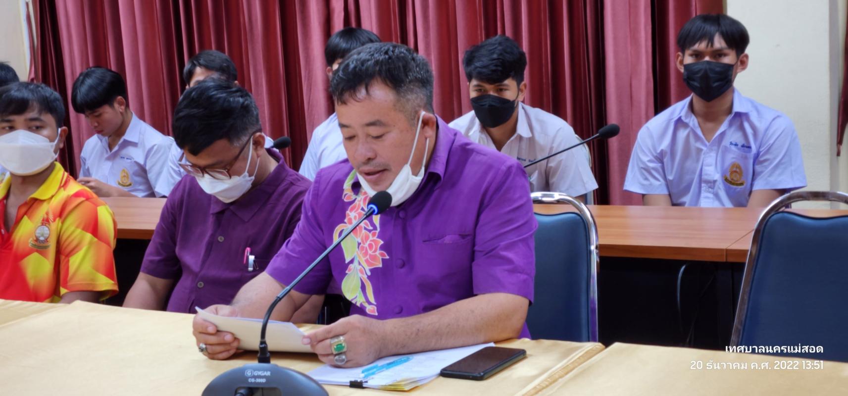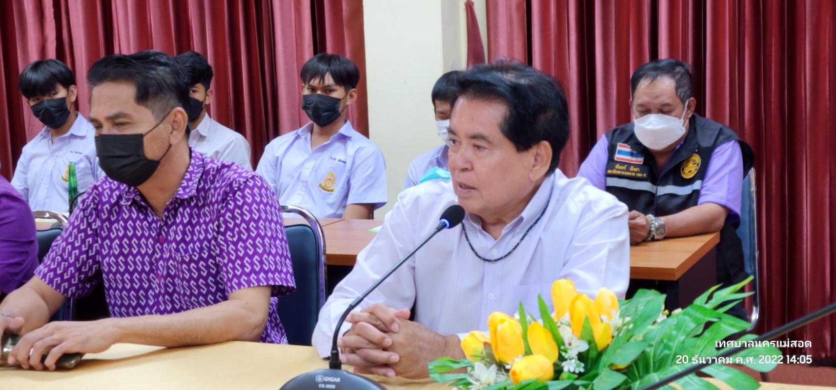 เมื่อวันอังคาร ที่ 20 ตุลาคม 2565 เวลา 14.00 น. ณ ห้องประชุมโกเมน (ชั้น 3) สำนักงานเทศบาลนครแม่สอด อำเภอแม่สอด จังหวัดตาก ว่าที่ร้อยตรีประเสริฐ ปวงละคร นายกเทศมนตรีนครแม่สอด พร้อมด้วย คณะผู้บริหาร สมาชิกสภาเทศบาล