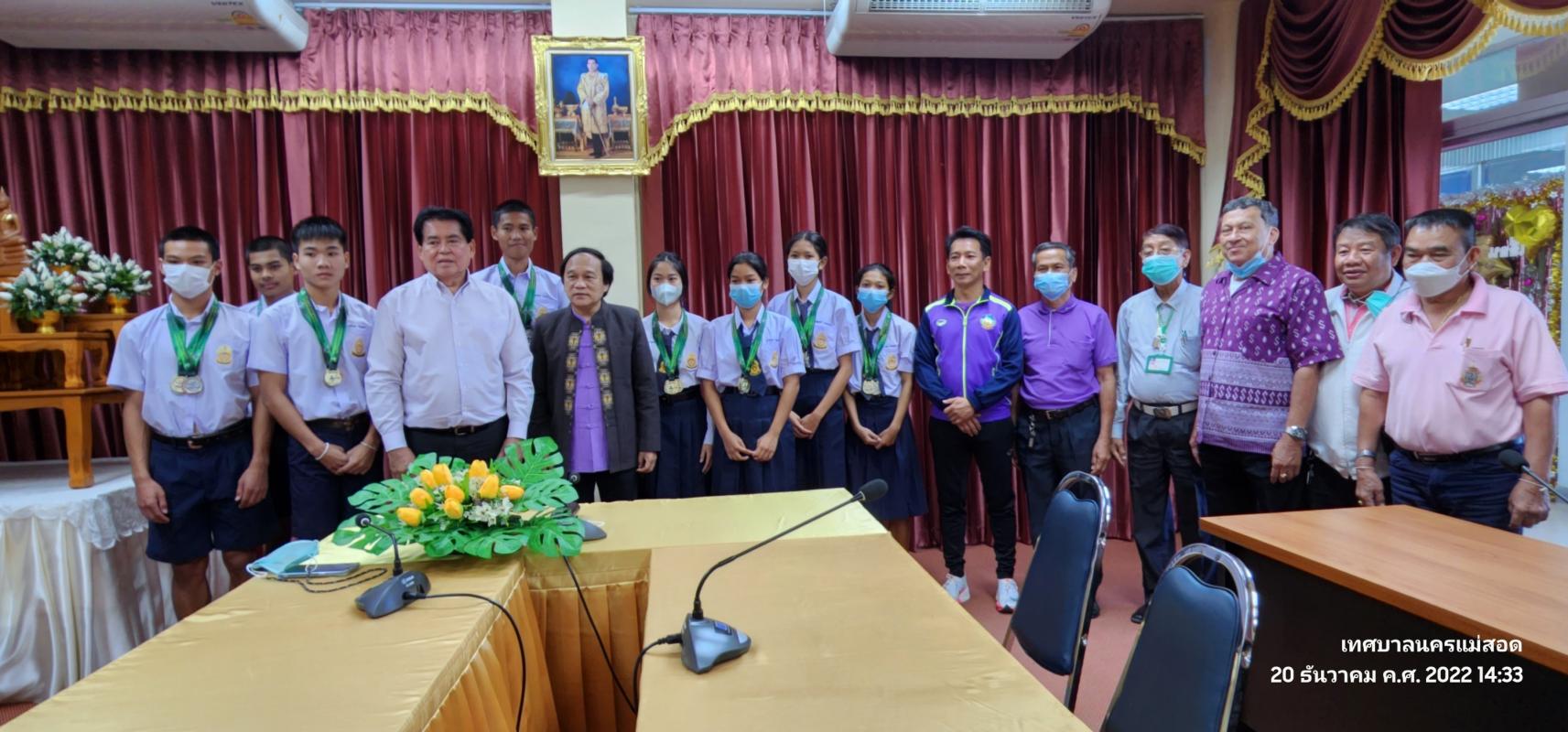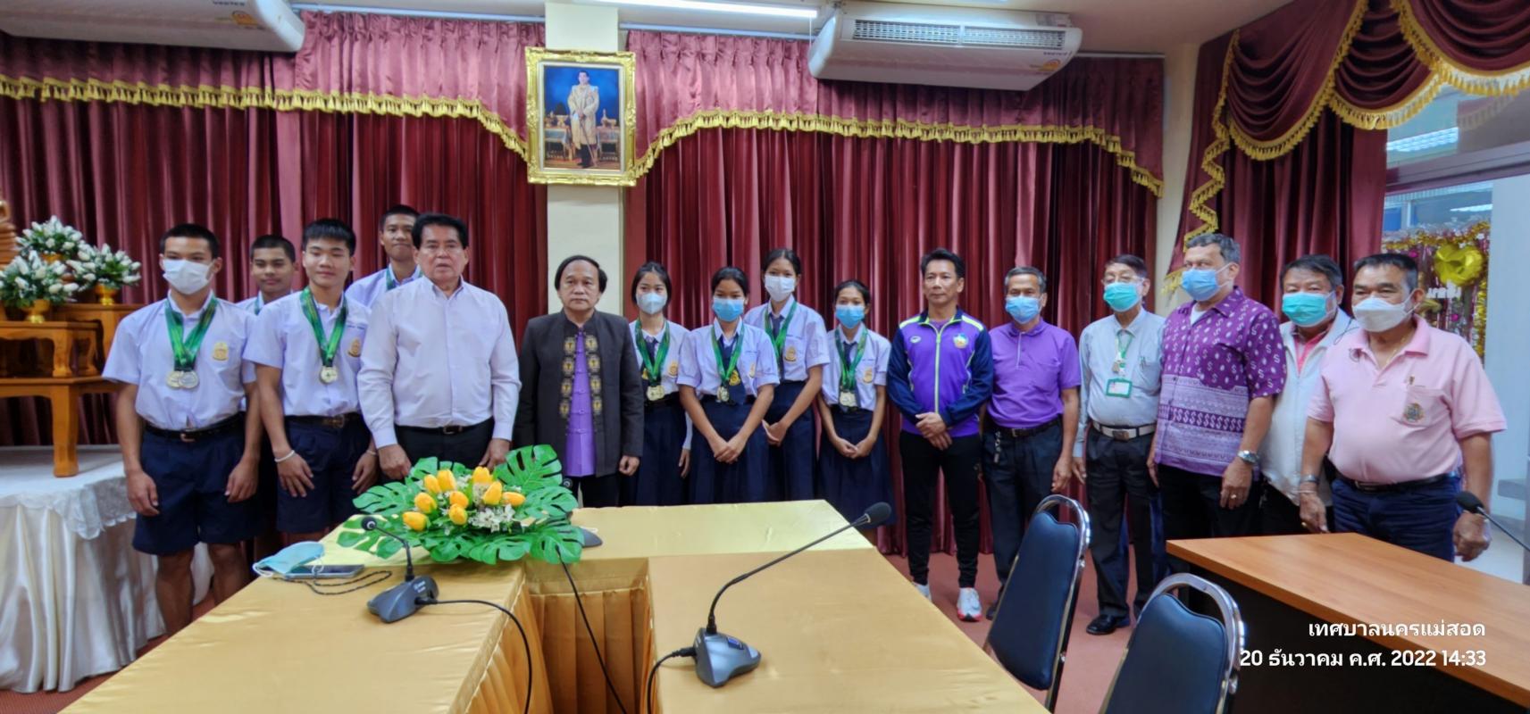 ร่วมต้อนรับ และแสดงความยินดีกับนักเรียนนักกีฬา สังกัดโรงเรียนกีฬาเทศบาลนครแม่สอดที่ได้รางวัล ดังนี้ วอลเลย์บอลชายหาด(รุ่นยุวชนชาย), วอลเลย์บอลในร่ม(เยาวชนชาย), ยกน้ำหนัก, กรีฑา, มวยสากล น้ำหนัก 49 กิโล