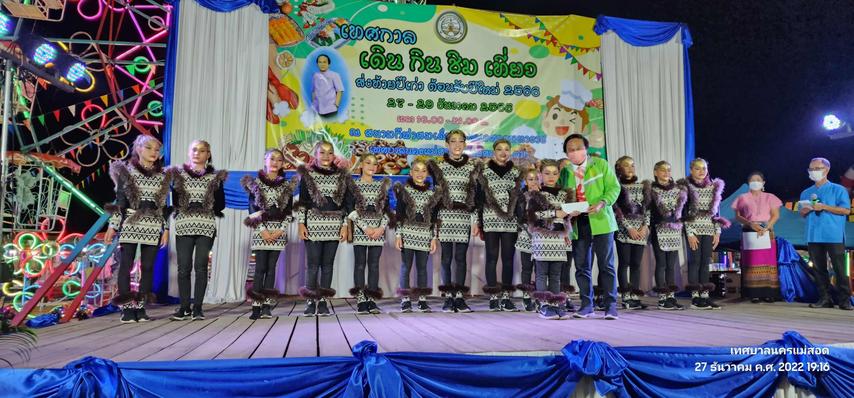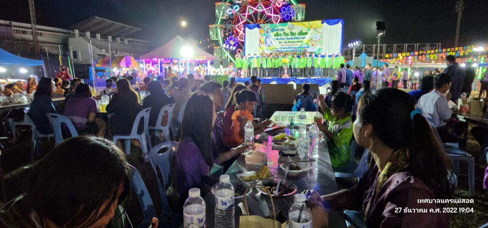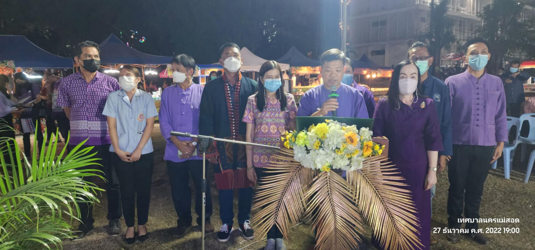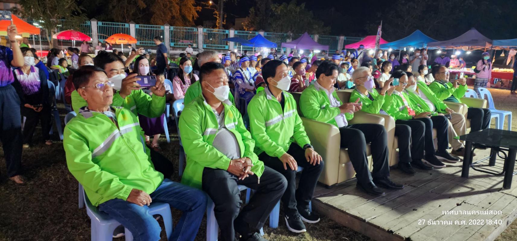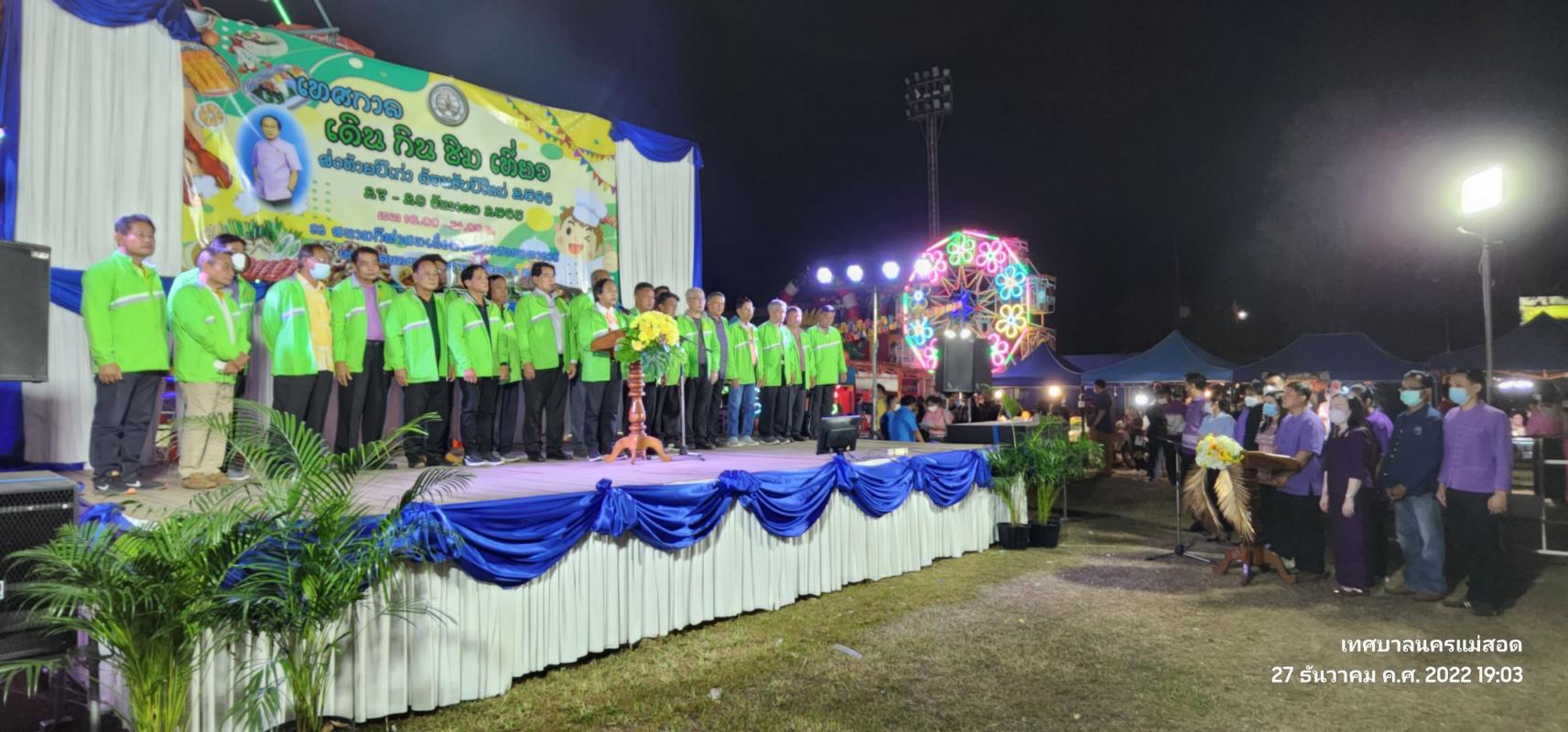 ว่าที่ร้อยตรีประเสริฐ ปวงละคร นายกเทศมนตรี เป็นประธานในพิธีเปิด พร้อมด้วยคณะผู้บริหาร สมาชิกเทศบาลนครแม่สอด ผู้อำนวยการกอง หัวหน้าฝ่ายและเจ้าหน้าที่เทศบาลนครแม่สอด ประธานชุมชน อาสาสมัครสาธารณสุข และประชาชน ร่วมพิธีเปิด “เทศกาล เดิน กิน ชิม เที่ยว อาหารแม่สอด ส่งท้ายปีเก่า ต้อนรับปีใหม่ 2566” โดยมีร้านจำหน่ายสินค้าผลิตภัณฑ์ชุมชน และร้านจำหน่ายอาหารต่างๆ ที่มีความหลากหลาย ร่วมถึงมีการแสดงของนักเรียนโรงเรียนในสังกัดเทศบาลนครแม่สอด เพื่อส่งเสริมการท่องเที่ยวและกระตุ้นเศรษฐกิจทั้งในเขตเทศบาลนครแม่สอดและพื้นที่ใกล้เคียง โดยงานจัดขึ้นระหว่างวันที่ 27–29 ธันวาคม 2565 ตั้งแต่เวลา 16.00 – 21.00 น. ณ บริเวณสนามกีฬาสมเด็จพระนเรศวรมหาราช