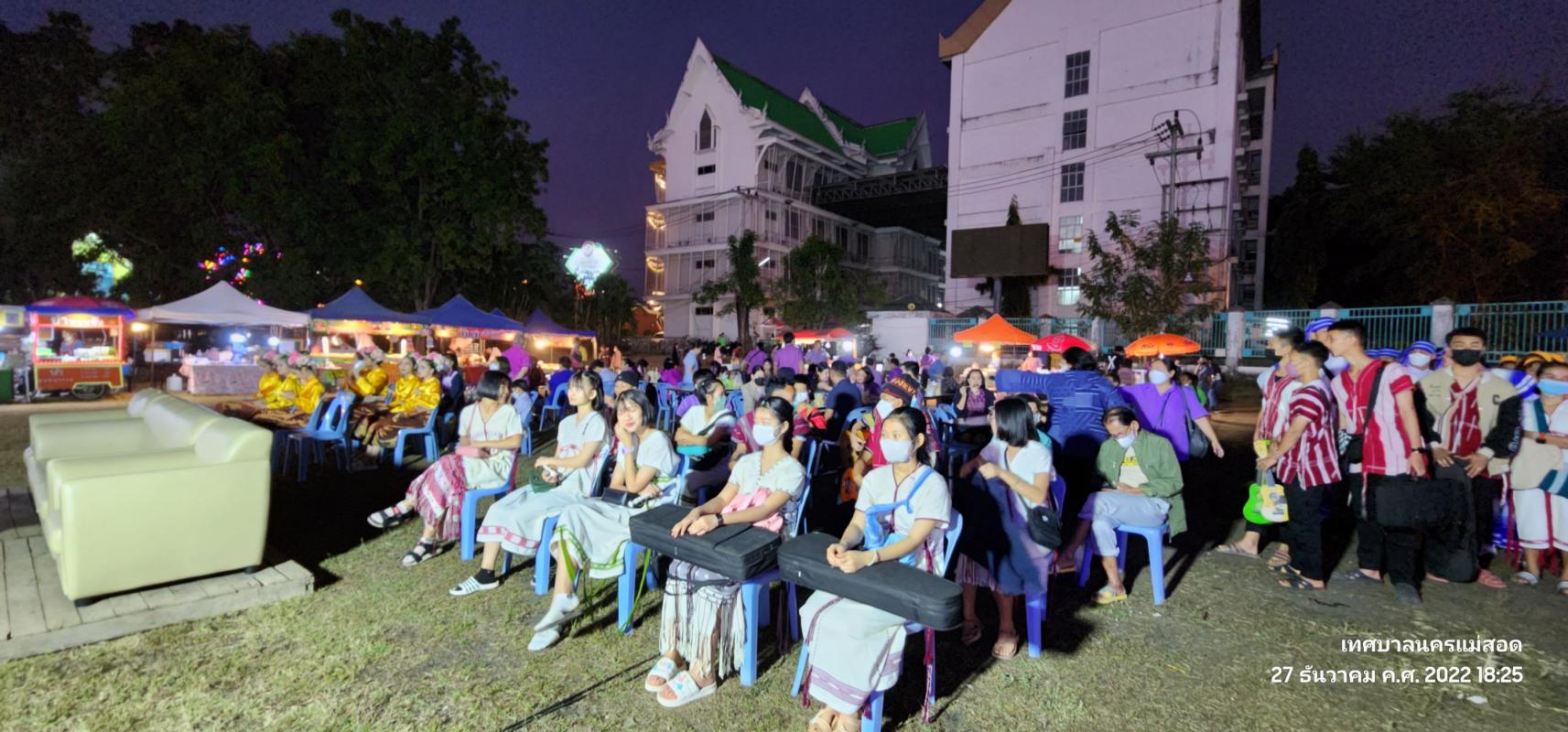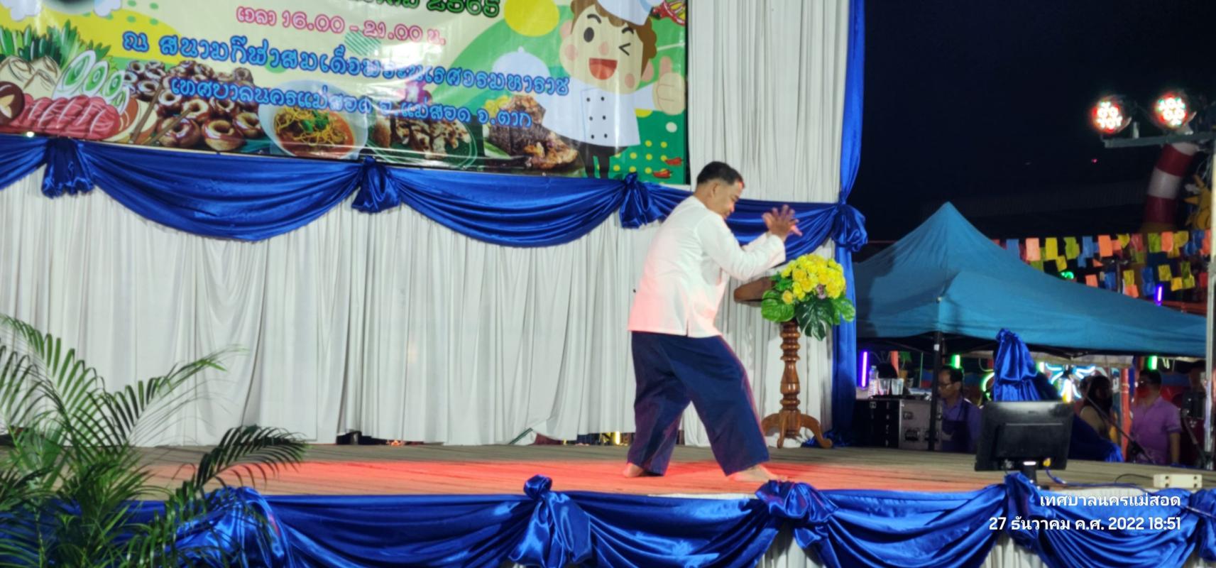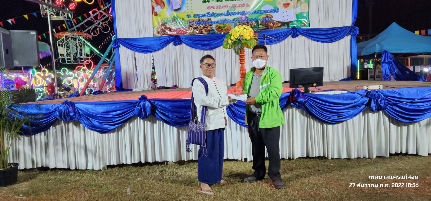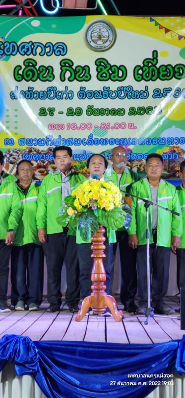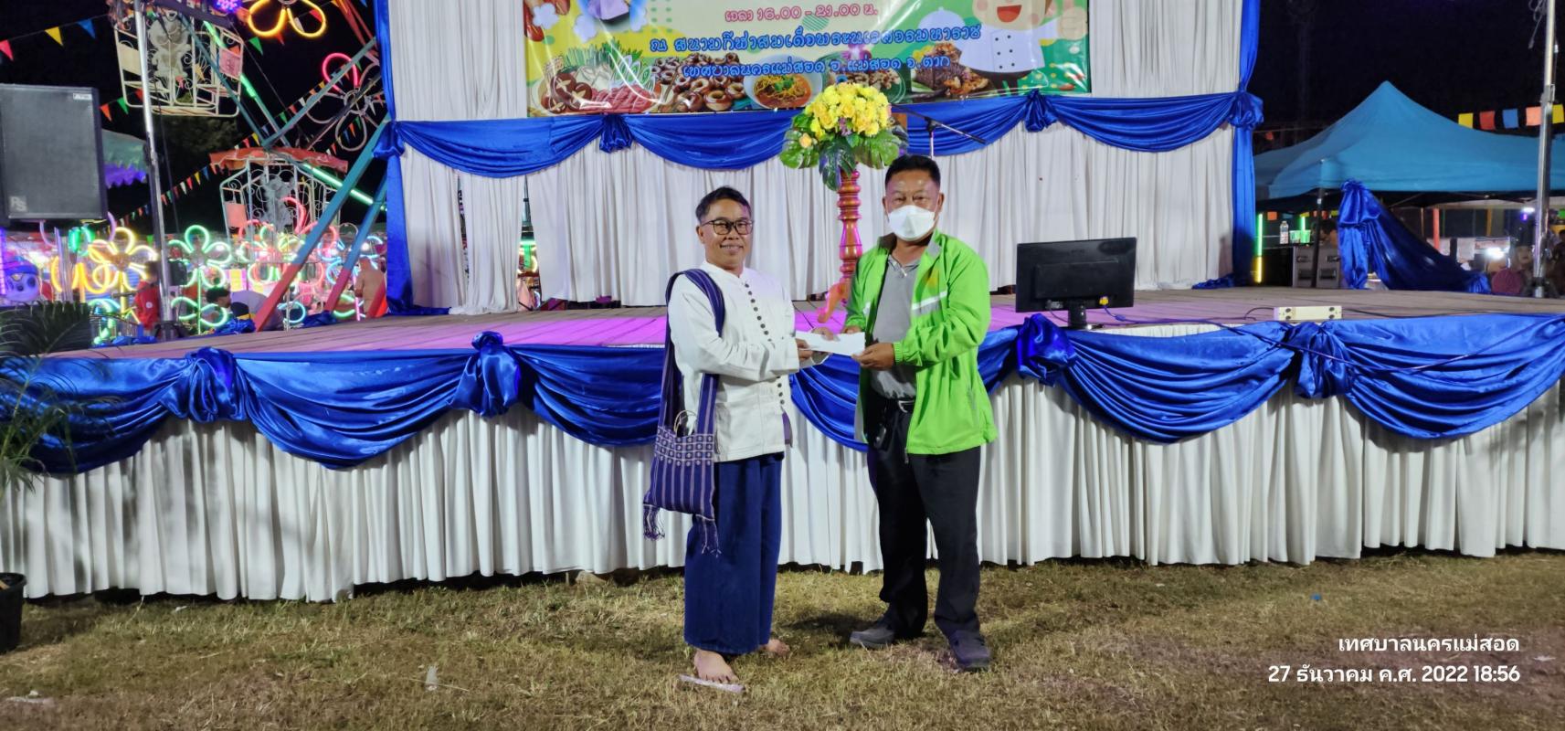 ว่าที่ร้อยตรีประเสริฐ ปวงละคร นายกเทศมนตรี เป็นประธานในพิธีเปิด พร้อมด้วยคณะผู้บริหาร สมาชิกเทศบาลนครแม่สอด ผู้อำนวยการกอง หัวหน้าฝ่ายและเจ้าหน้าที่เทศบาลนครแม่สอด ประธานชุมชน อาสาสมัครสาธารณสุข และประชาชน ร่วมพิธีเปิด “เทศกาล เดิน กิน ชิม เที่ยว อาหารแม่สอด ส่งท้ายปีเก่า ต้อนรับปีใหม่ 2566” โดยมีร้านจำหน่ายสินค้าผลิตภัณฑ์ชุมชน และร้านจำหน่ายอาหารต่างๆ ที่มีความหลากหลาย ร่วมถึงมีการแสดงของนักเรียนโรงเรียนในสังกัดเทศบาลนครแม่สอด เพื่อส่งเสริมการท่องเที่ยวและกระตุ้นเศรษฐกิจทั้งในเขตเทศบาลนครแม่สอดและพื้นที่ใกล้เคียง โดยงานจัดขึ้นระหว่างวันที่ 27–29 ธันวาคม 2565 ตั้งแต่เวลา 16.00 – 21.00 น. ณ บริเวณสนามกีฬาสมเด็จพระนเรศวรมหาราช