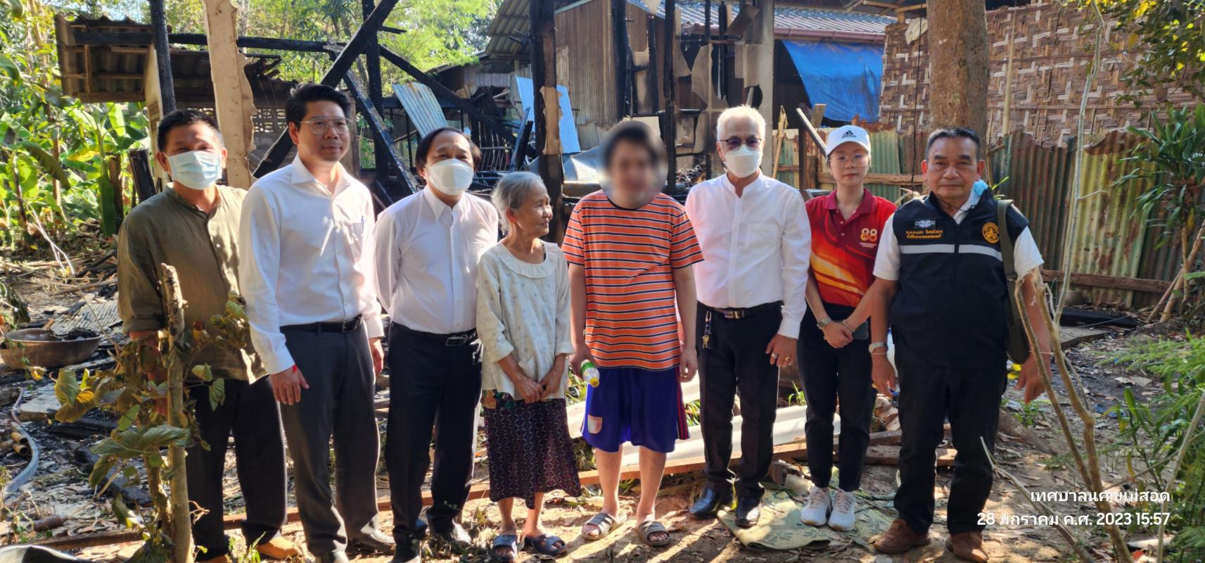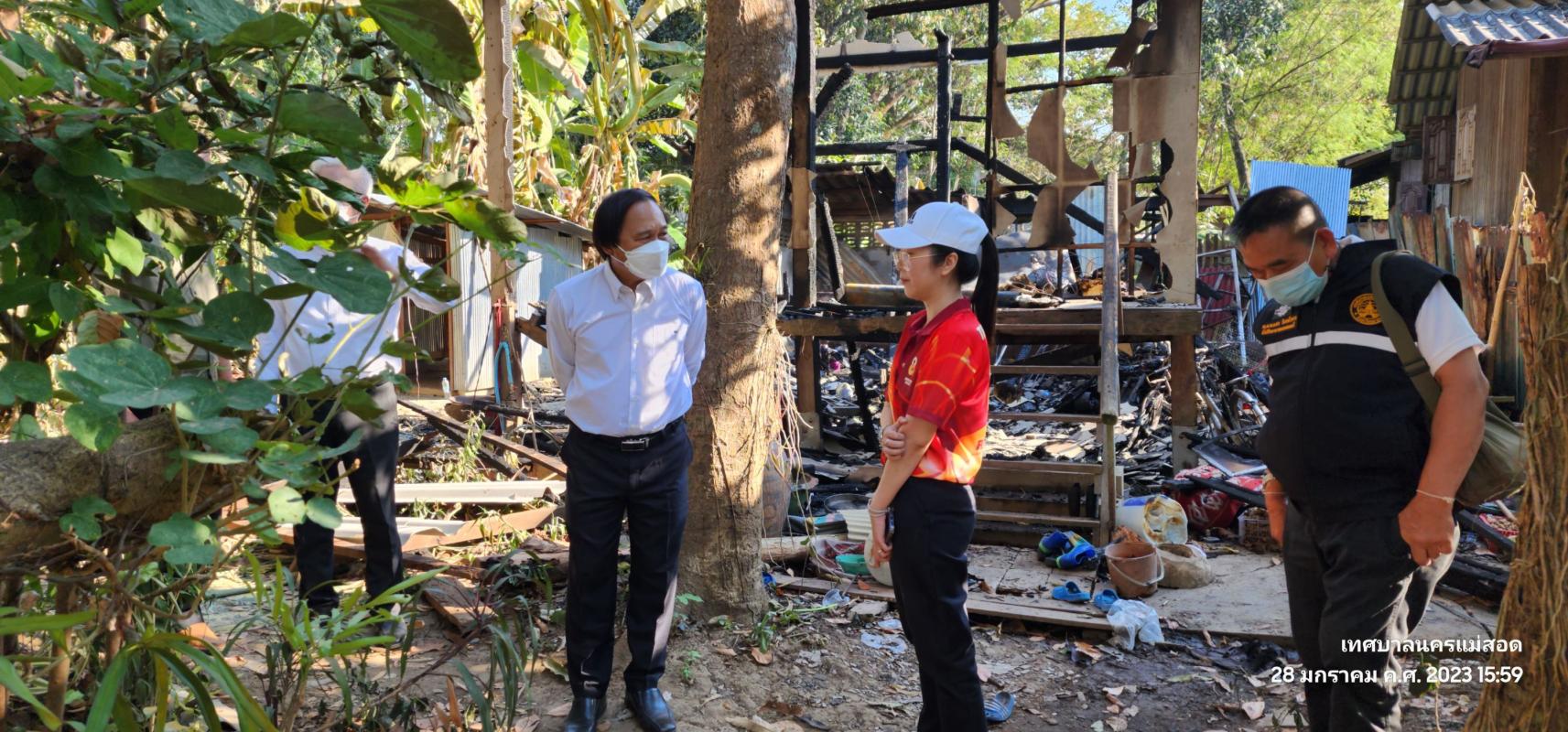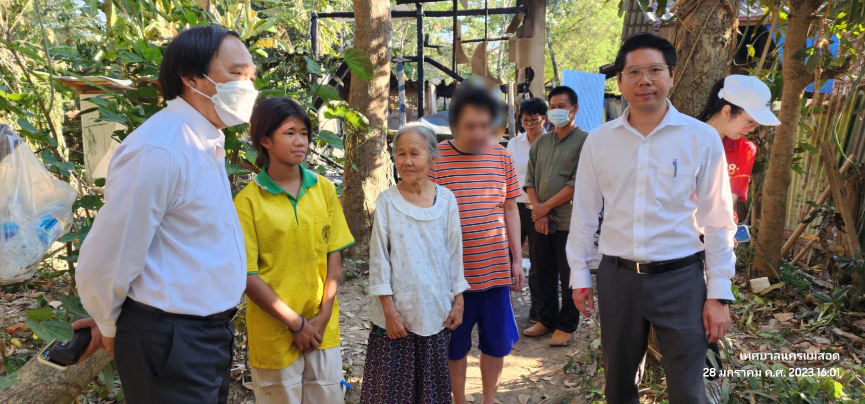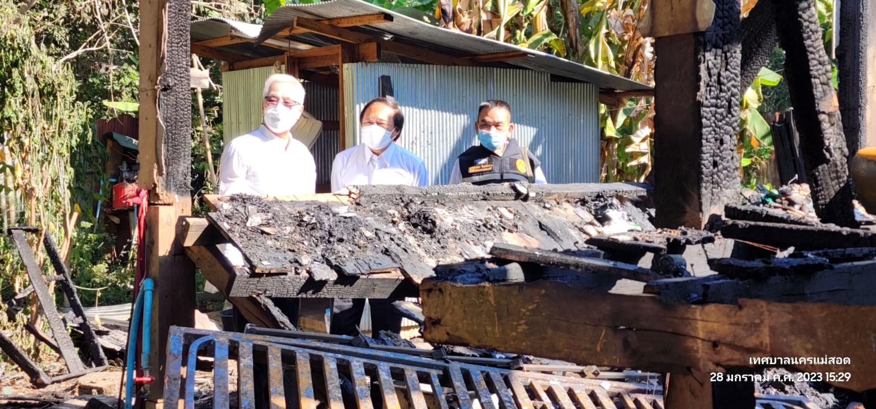 ว่าที่ร้อยตรีประเสริฐ ปวงละคร นายกเทศมนตรีนครแม่สอด พร้อมด้วยคณะผู้บริหาร สมาชิกสภาเทศบาล หัวหน้าฝ่ายสังคมสงเคราะห์ เจ้าหน้าที่กองสวัสดิการสังคม พนักงานป้อนกันและบรรเทาสาธารณภัยเทศบาลนครแม่สอดได้เข้าระงับเหตุเพลิงไหม้ดังกล่าว โดยเบื้องต้นท่านนายเทศมนตรีนครแม่สอด พร้อมคณะ และว่าที่ ดร.ฑีฆะพล ทวีเกื้อกูลกิจ รองนายกองค์การบริหารส่วนจังหวัดตาก ได้ลงพื้นที่ตรวจเยี่ยมที่เกิดเหตุพร้อมให้กำลังใจแก่ผู้ประสบภัย ร่วมถึงให้การช่วยเหลือเบื้องต้นและมอบหมายให้เจ้าหน้าที่ที่เกี่ยวข้องเร่งดำเนินการให้ความช่วยเหลือตามอำนาจหน้าที่ต่อไป และกล่าวเชิดชูความกล้าหาญเด็กหญิง วรรณศพร มิ่งขวัญตา อายุ 12 ปี นักเรียนชั้น ป.5 โรงเรียนเทศบาลวันดอนแก้ว สังกัดเทศบาลนครแม่สอด ซึ่งเสี่ยงชีวิตเข้าไปช่วยคุณยายละบุตรชายออกจากบ้านที่ไฟไหม้จนทั้งสองปลอดภัย