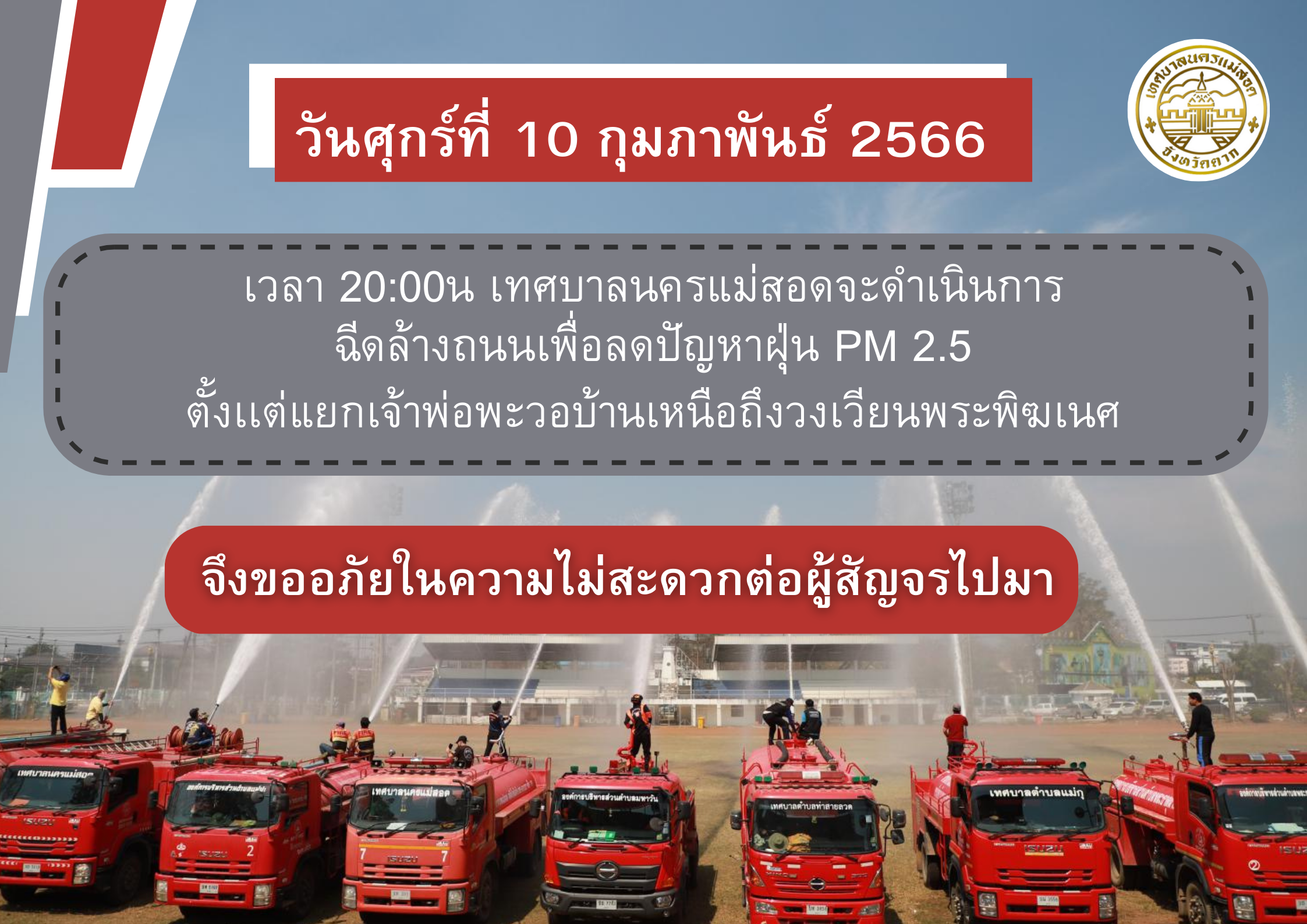 ประชาสัมพันธ์การฉีดล้างถนนเพื่อป้องกันลดปัญหาฝุ่นละอองขนาดเล็ก (PM 2.5)