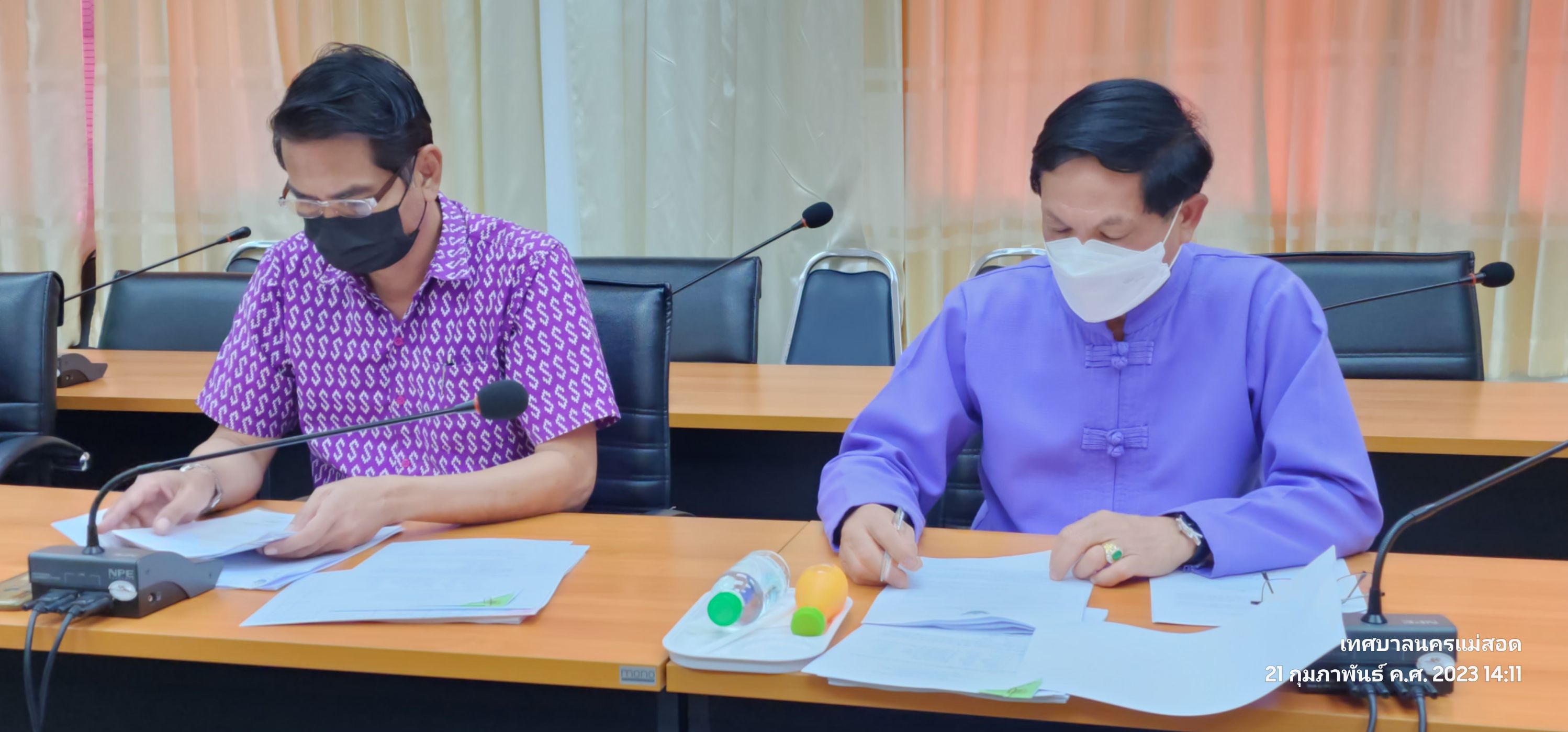 เมื่อวันอังคาร ที่ 21 กุมภาพันธ์ 2566 เวลา 14.00 น. ณ ห้องประชุม AEC ชั้น 2 อาคารสำนักงานเทศบาลนครแม่สอด อำเภอแม่สอด จังหวัดตาก