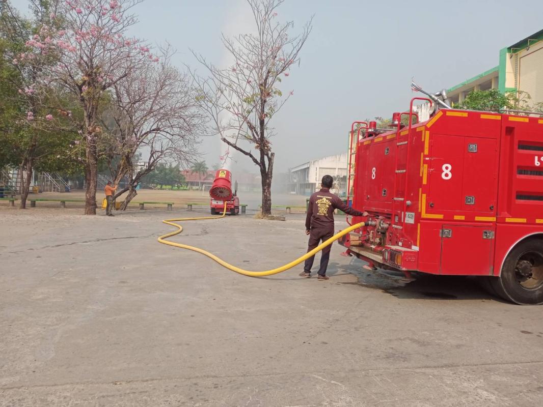 ว่าที่ร้อยตรี ประเสริฐ ปวงละคร นายกเทศมนตรีนครแม่สอด มอบหมายให้ฝ่ายป้องกันและบรรเทาสาธารณภัยเทศบาลนครแม่สอด ร่วมกับสนง.ปภ.ตาก สาขาแม่สอด จัดรถน้ำและรถดับเพลิงฉีดล้างถนนและพ่นละอองน้ำ และเครื่องจักรกล กรม ปภ.โดยศูนย์ป้องกันและบรรเทาสาธารณภัย เขต 8 กำแพงเพชร เพื่อลดปัญหาฝุ่นละออง (PM2.5) ตามสถานที่และถนนสายต่างๆ ในเขตเทศบาลนครแม่สอด โดยวันนี้ได้ออกดำเนินการดังนี้