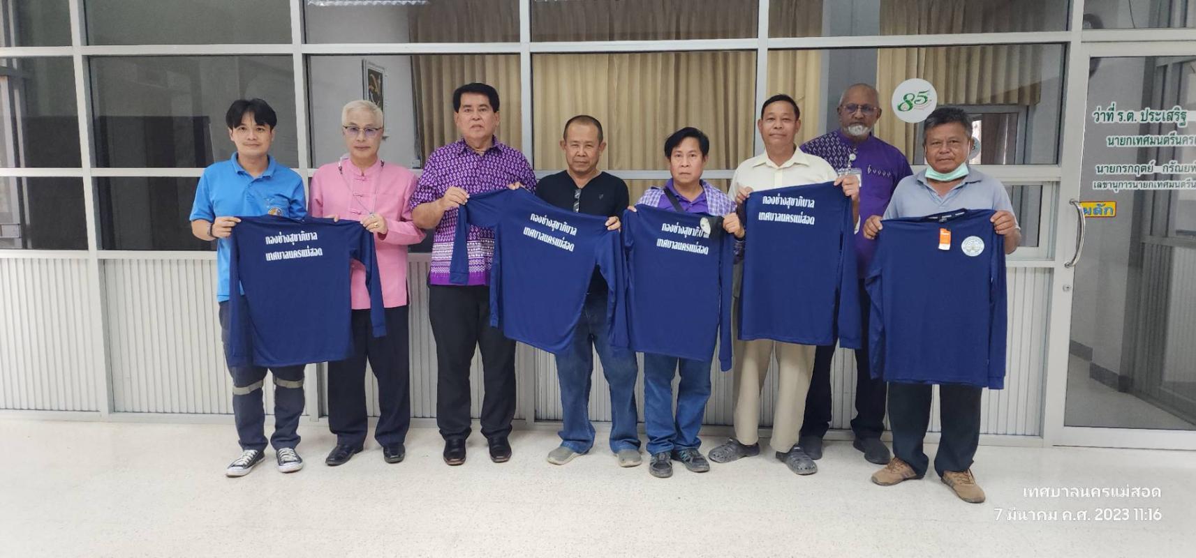 ว่าที่ร้อยตรี ประเสริฐ ปวงละคร นายกเทศมนตรีนครแม่สอด พร้อมด้วยคณะผู้บริหารเทศบาลนครแม่สอด ร่วมกับ นายอัครเดช ตาสะหลี ประธานผู้บริหารบริษัทแม่สอดฟรีโซน จำกัด สนับสนุนมอบชุดทำงานให้กับฝ่ายป้องกันและบรรเทาสาธารณภัย จำนวน 50 ตัว, กองช่าง จำนวน 18 คน, กองช่างสุขาภิบาล จำนวน 6 ตัว,กองสาธารณสุขและสิ่งแวดล้อม จำนวน 4 ตัว, งานเทศกิจ จำนวน 6 ตัว เพื่อสนับสนุนการทำงานและเป็นขวัญกำลังใจให้แก่บุคลากรในสังกัดเทศบาลนครแม่สอด