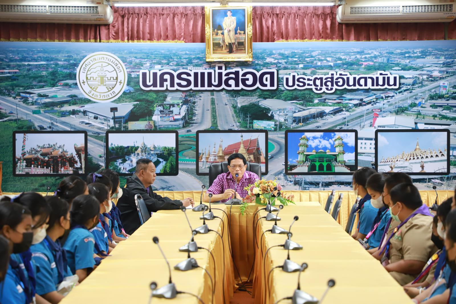 ว่าที่ร้อยตรี ประเสริฐ ปวงละคร นายกเทศมนตรีนครแม่สอด มอบหมายให้นายกรณพงศ์ คงปาน รองนายกเทศมนตรี พร้อมด้วยนายจันทร์ ปัดสา สมาชิกสภาเทศบาลนครแม่สอด กล่าวต้อนรับคณะทัศนศึกษาจากโรงเรียนเทศบาลวัดดอนแก้ว สังกัดเทศบาลนครแม่สอด ตามโครงการทัศนศึกษานอกสถานศึกษา ระดับชั้นประถมศึกษาปีที่ 3 และ ระดับชั้นประถมศึกษาปีที่ 6 จำนวน 30 คน