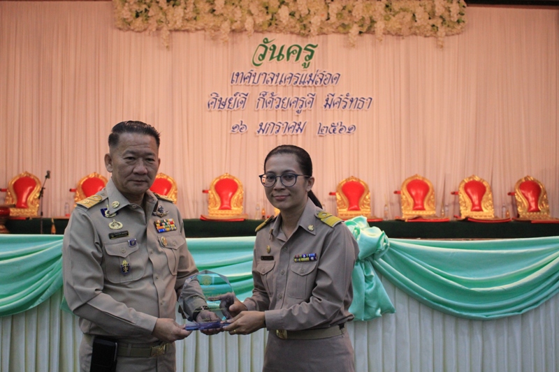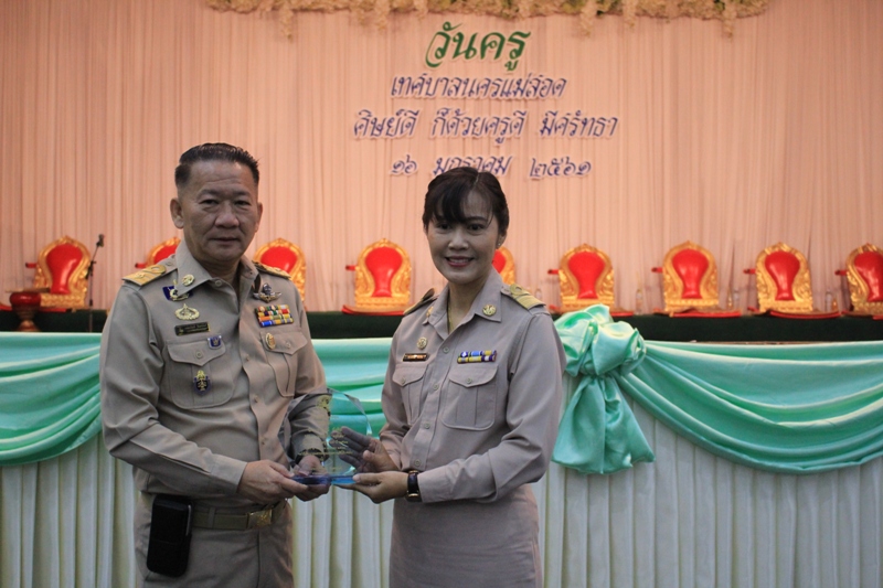 วันอังคารที่ 16 มกราคม 2561 เวลา 08.00 น. ณ ศูนย์กลางการแสดงสินค้าและศูนย์ประชุมเพื่อส่งเสริมการท่องเที่ยว (OTOP) เทศบาลนครแม่สอด อำเภอแม่สอด จังหวัดตาก ดร.เทอดเกียรติ ชินสรนันท์ นายกเทศมนตรีนครแม่สอด เป็นประธานเปิดพิธีกิจกรรม วันครู ประจำปี 2561 ด้วยวันที่ 16 มกราคมของทุกปีเป็น “วันครูแห่งชาติ”ครูเป็นบุคคลที่มีความหมายและความสำคัญต่อทุกคนในสังคมในฐานะที่เป็นผู้ประสิทธิ์ประสาทวิชา ปลูกฝังความคิดและจิตใจให้ศิษย์มีความเจริญ ทั้งทางสติปัญญา และคุณธรรมจริยธรรม เพื่อให้สามารถดำรงชีวิตไปในทางที่ถูกต้องเหมาะสม และมีส่วนร่วมในการขับเคลื่อนพัฒนาประเทศชาติให้ก้าวทันต่อการเปลี่ยนแปลงของสังคมโลกโดยมีคำขวัญวันครูในปีนี้ว่า “ศิษย์ดี ก็ด้วยครูดี มีศรัทธา”เพื่อเป็นกำลังใจให้กับเพื่อนครูและบุคลากรทางการศึกษา ที่มุ่งมั่นปฏิบัติหน้าที่สำคัญในการเป็นต้นแบบที่ดีให้กับคนในสังคม รวมทั้งการอบรมบ่มเพาะศิษย์ด้วย