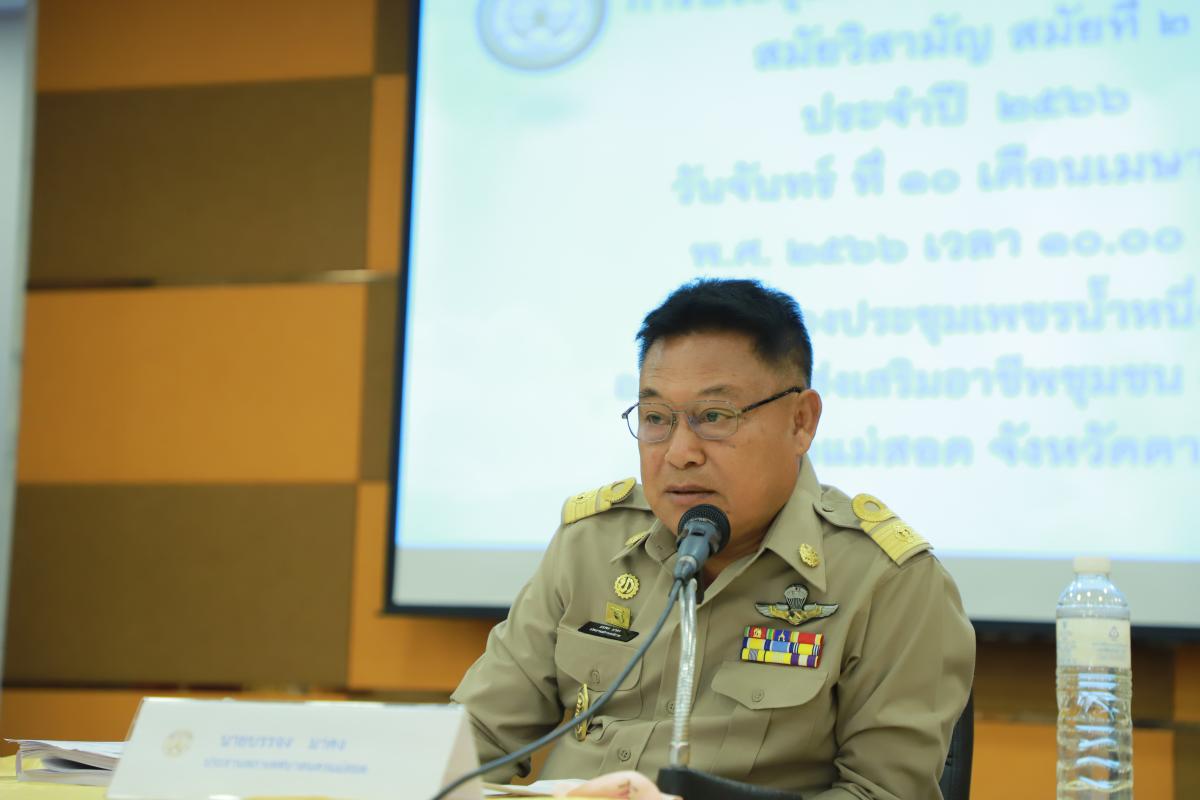 เมื่อวันจันทร์ ที่ 10 เมษายน พ.ศ. 2566 เวลา 10.00 น. ณ ห้องประชุมเพชรน้ำหนึ่ง (ชั้น 6) อาคารศูนย์ส่งเสริมอาชีพชุมชนเทศบาลนครแม่สอด อำเภอแม่สอด จังหวัดตาก