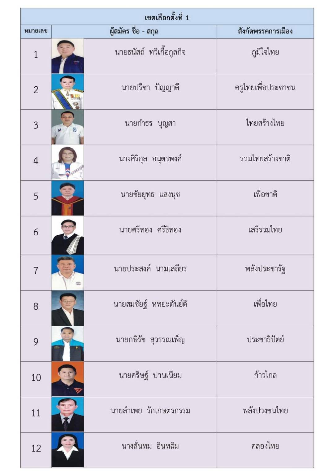 เขตเลือกตั้งที่ 1 มีผู้สมัคร 12 ราย