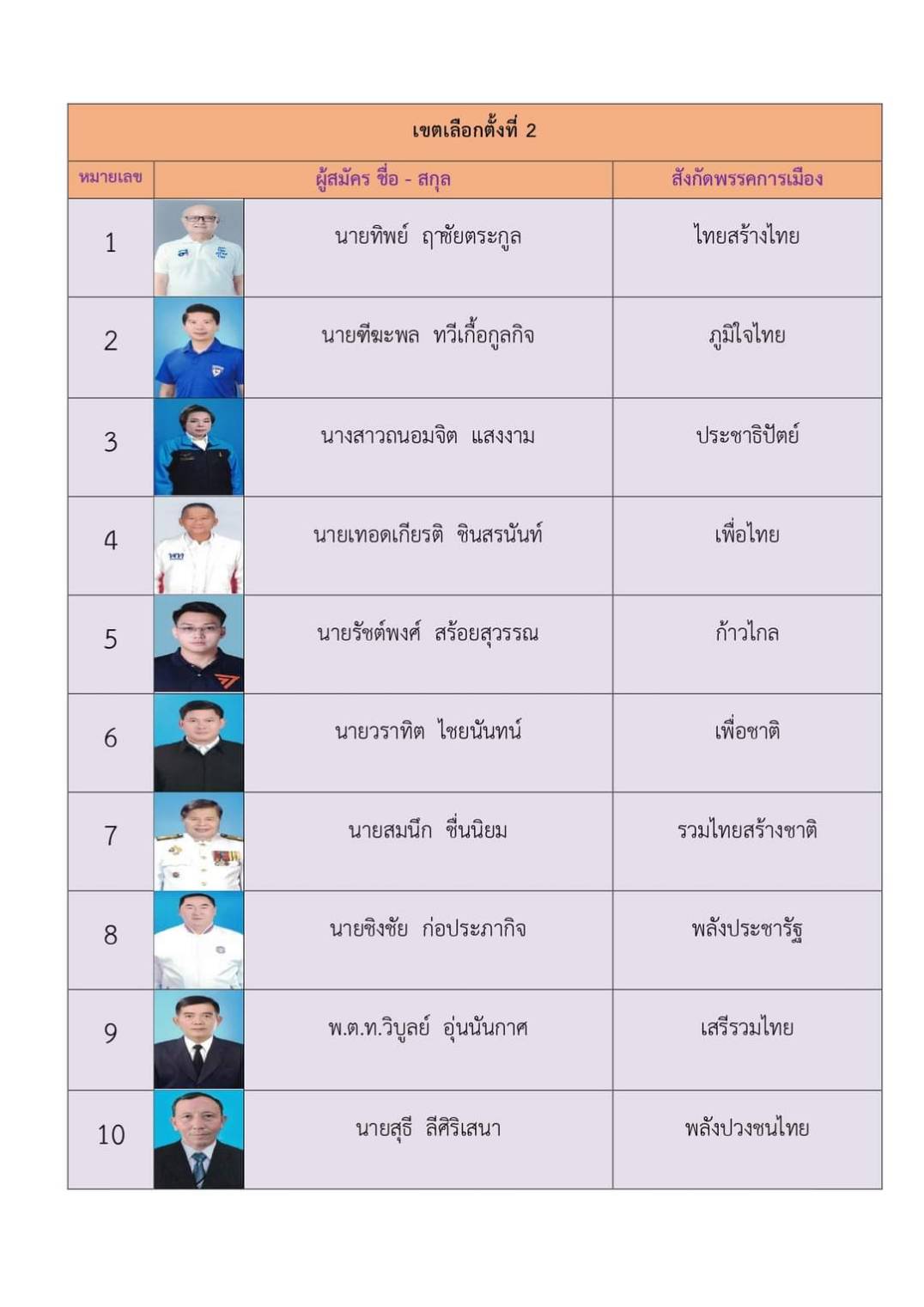 เขตเลือกตั้งที่ 2 มีผู้สมัคร 10 ราย