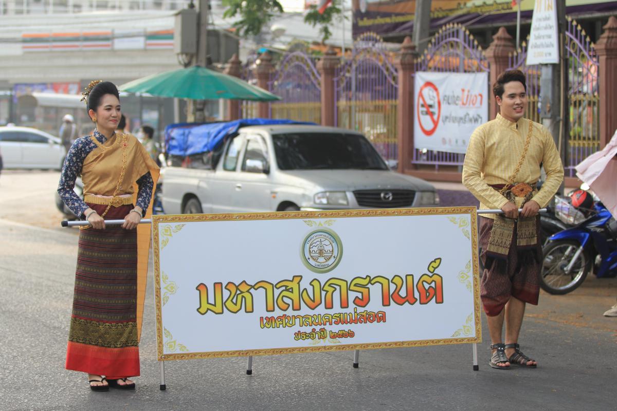 ว่าที่ร้อยตรี ประเสริฐ ปวงละคร นายกเทศมนตรีนครแม่สอด พร้อมด้วยคณะผู้บริหาร สมาชิกสภาเทศบาล ปลัดเทศบาล รองปลัดเทศบาล ผู้อำนวยการกอง หัวหน้าส่วนราชการ และเจ้าหน้าที่ที่เกี่ยวข้องเทศบาลนครแม่สอด จัดโครงงานประเพณีสงกรานต์ ประจำปี 2566