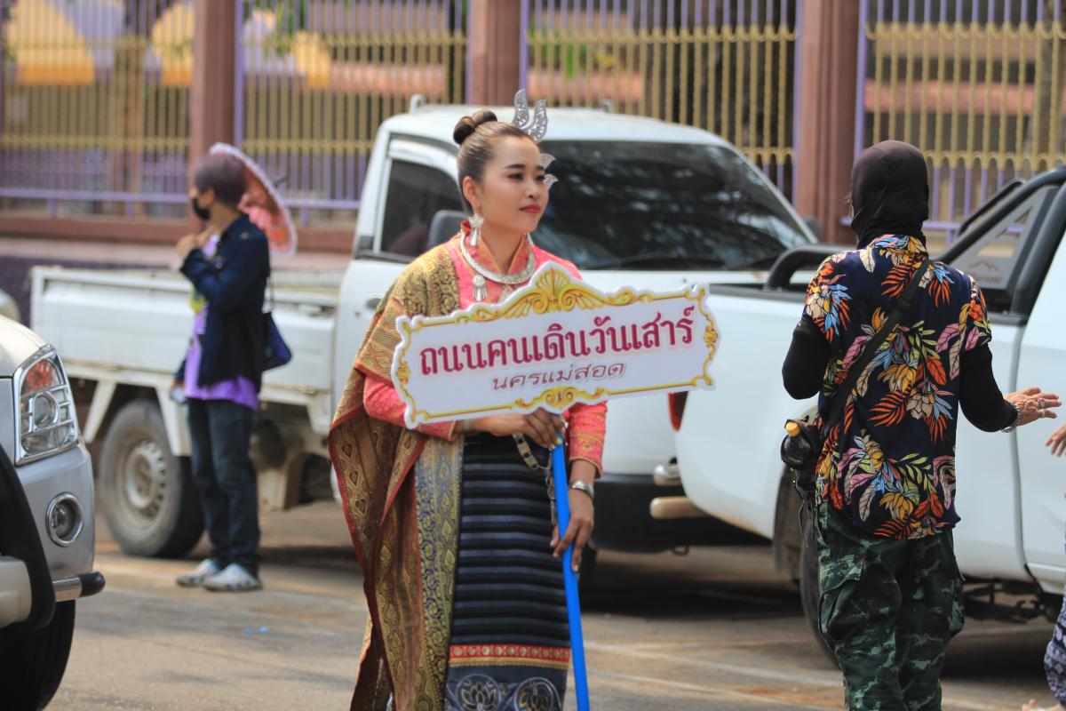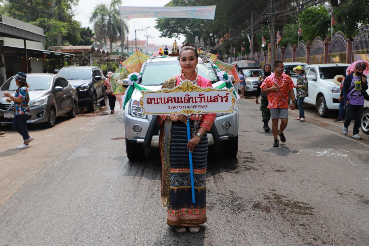 โดยมีกิจกรรมการแห่ขบวนสงกรานต์ของคณะศรัทธาวัดในเขตเทศบาลนครแม่สอด ตลาดไนท์บาซาร์นครแม่สอด ตลาดถนนคนเดินนครแม่สอด กิจกรรมการรดน้ำดำหัวตัวแทนผู้สูงอายุทั้ง 20 ชุมชน และกิจกรรมการประกวดเทพีสงกรานต์ ประจำปี 2566