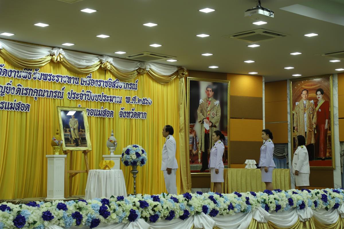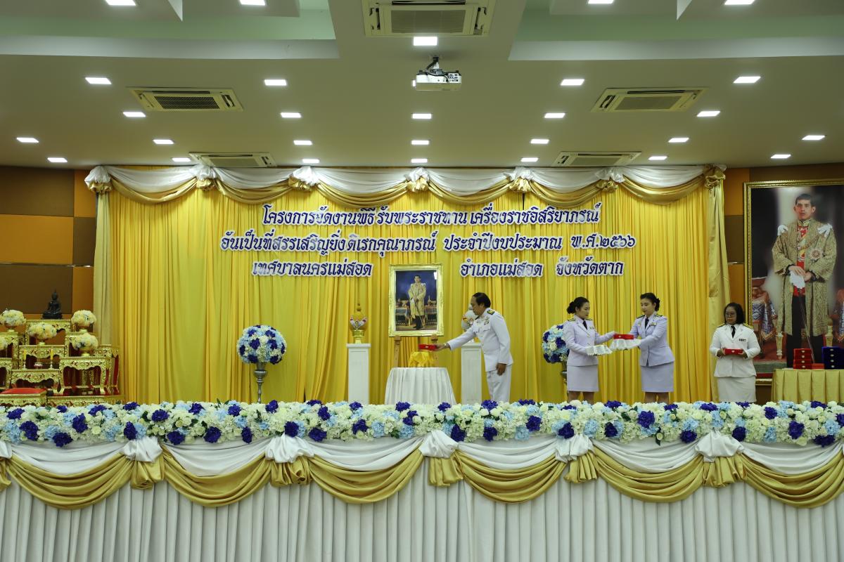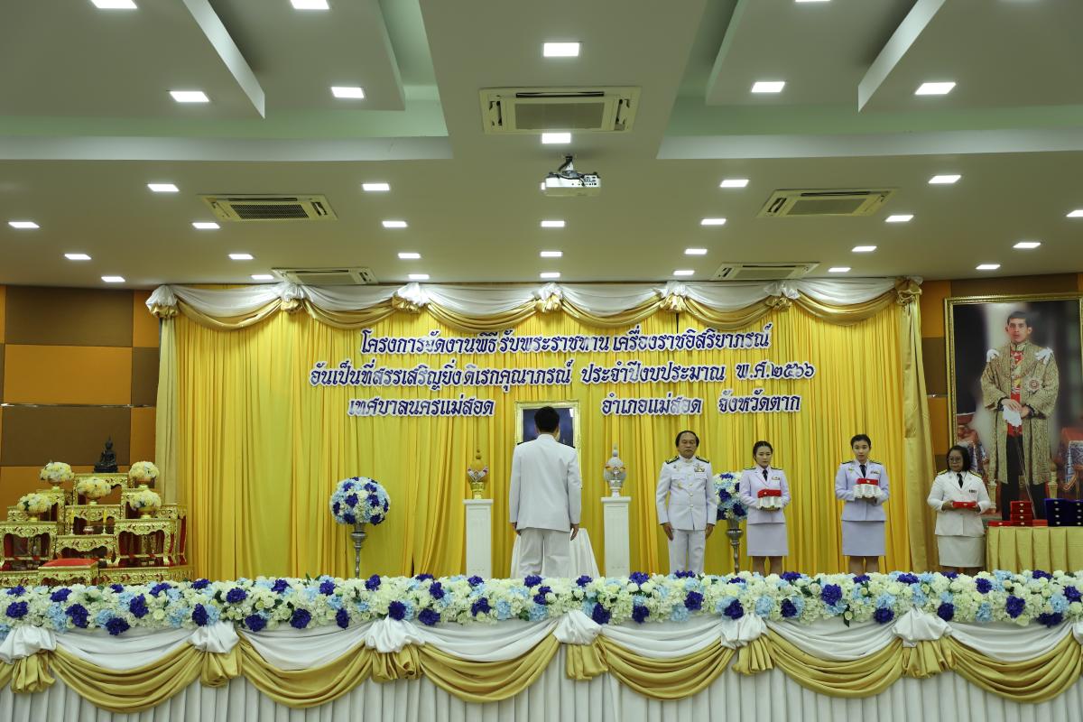 ว่าที่ร้อยตรีประเสริฐ ปวงละคร นายกเทศมนตรีนครแม่สอด เป็นประธาน นายชาตรี สุขารมย์ ปลัดเทศบาลฯ เป็นผู้กล่าวรายงาน โดยมี คณะผู้บริหาร สมาชิกสภาเทศบาล ผู้อำนวยการกอง พนักงานเทศบาล และเจ้าหน้าที่ที่เกี่ยวข้อง เข้าร่วมพิธีรับพระราชทานเครื่องราชอิสริยาภรณ์ เนื่องในโอกาสพระราชทานพิธีเฉลิมพระชนมพรรษาฯ ต่อหน้าพระบรมฉายาลักษณ์พระบาทสมเด็จพระเจ้าอยู่หัว โดยไม่ต้องเข้าเฝ้าทูลละอองธุลีพระบาทรับพระราชทาน เพื่อเป็นการถวายเกียรติ