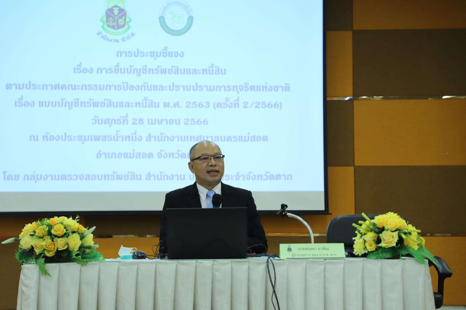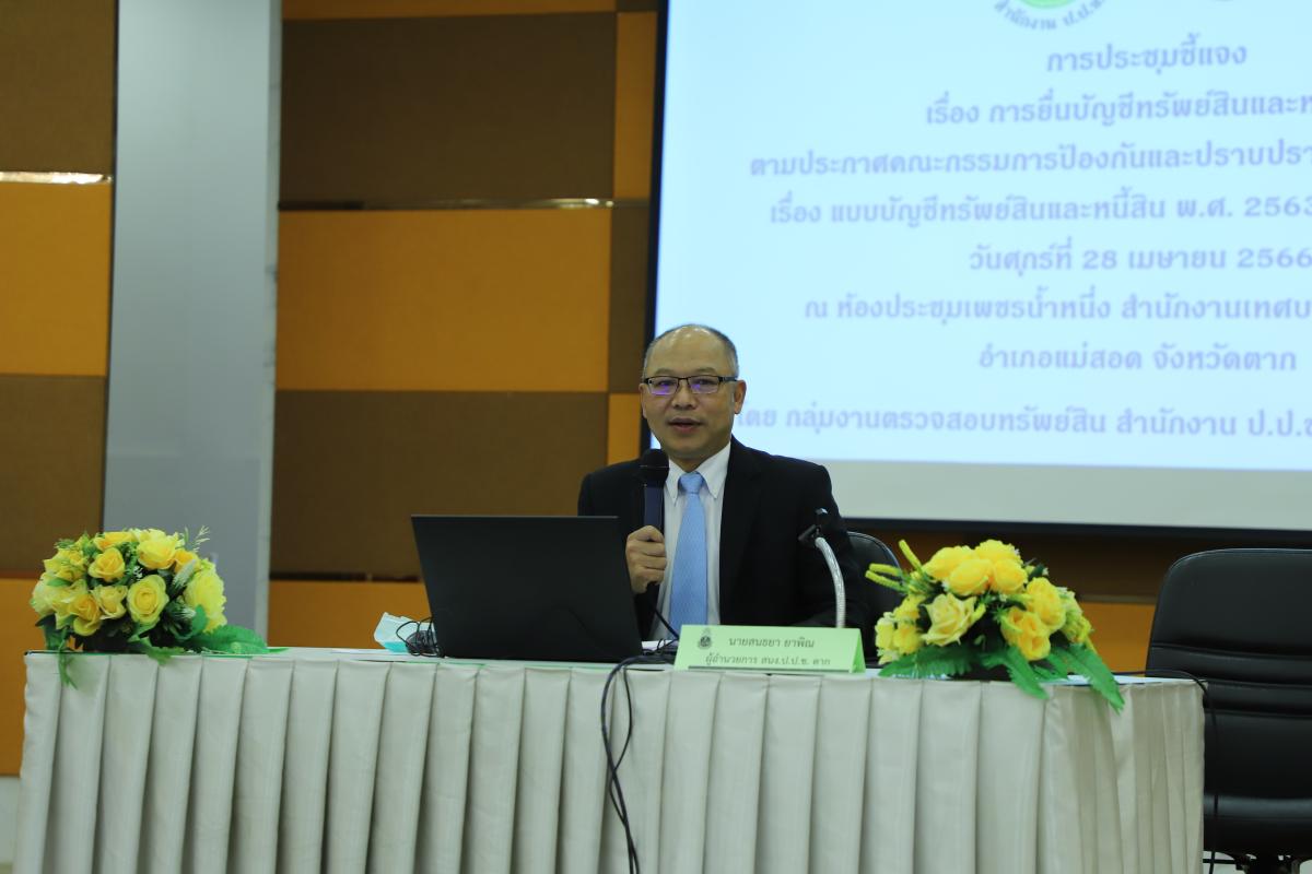 ว่าที่ร้อยตรี ประเสริฐ ปวงละคร นายกเทศมนตรีนครแม่สอด พร้อมคณะผู้บริหาร สมาชิกสภาเทศบาลเทศบาลนครแม่สอด และบุคลากรที่เกี่ยวข้องขององค์กรปกครองส่วนท้องถิ่นในเขตอำเภอแม่สอด อำเภอแม่ระมาด อำเภอท่าสองยาง อำเภอพบพระ อำเภออุ้มผาง เข้าร่วมประชุมรับฟังการบรรยายชี้แจง เรื่อง การยื่นบัญชีทรัพย์สินและหนี้สิน ตามประกาศคณะกรรมการป้องกันและปราบปรามการทุจริตแห่งชาติ