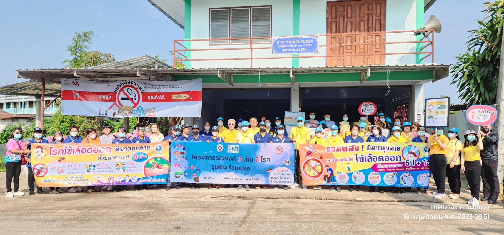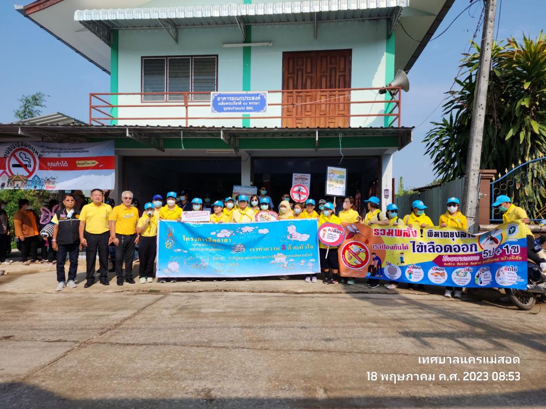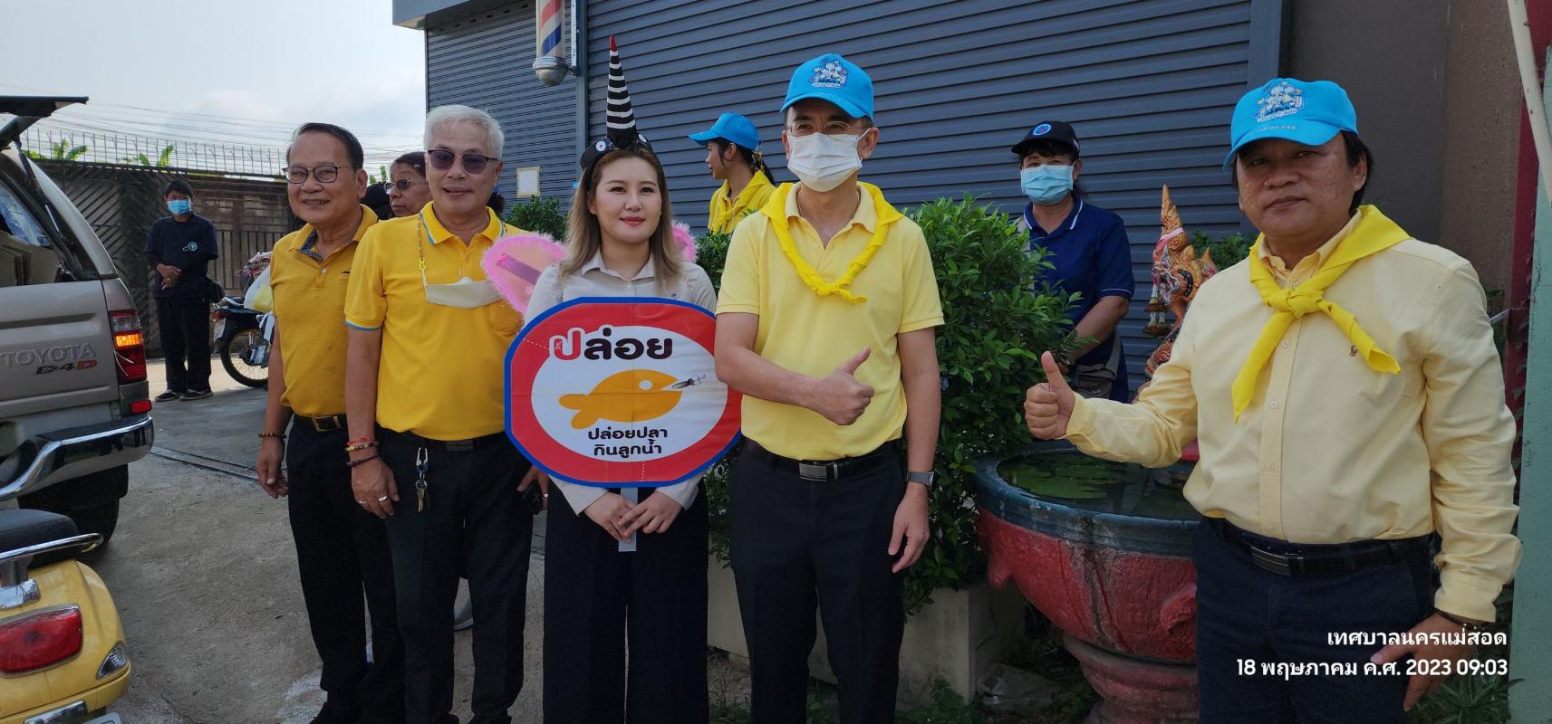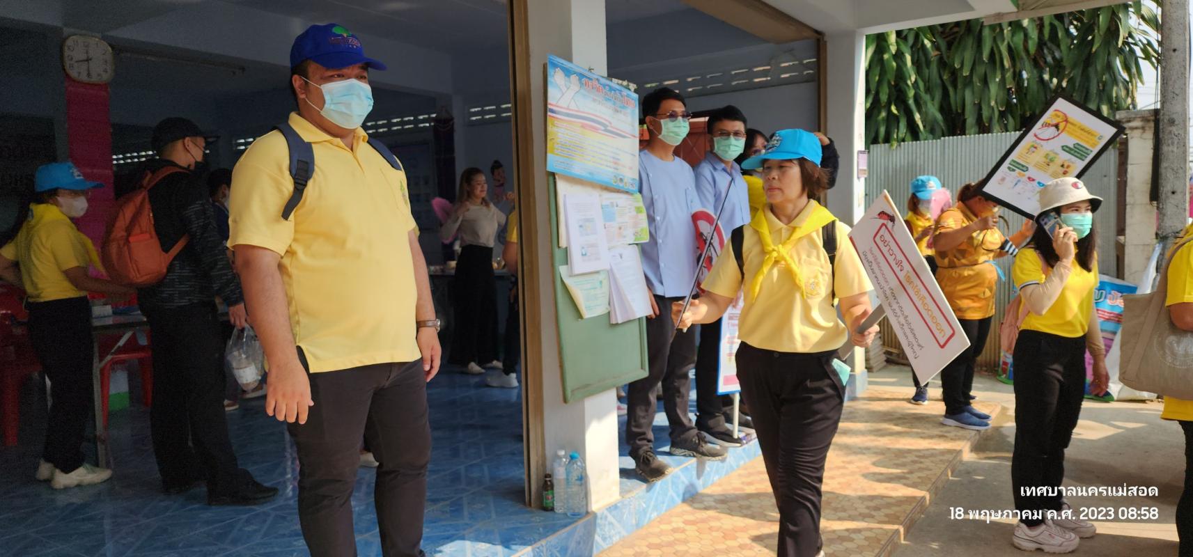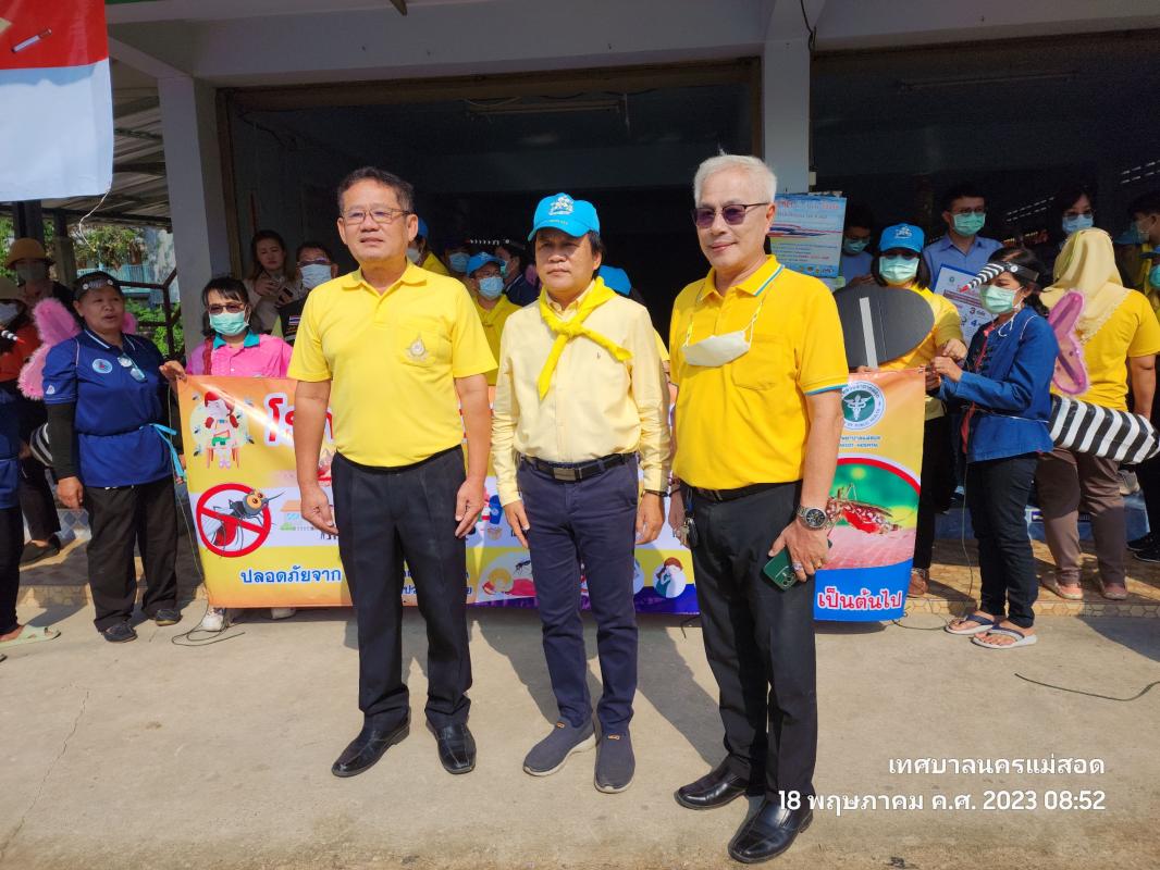ว่าที่ร้อยตรี ประเสริฐ ปวงละคร นายกเทศมนตรีนครแม่สอด พร้อมด้วยคณะผู้บริหาร สมาชิกสภาเทศบาล หัวหน้าส่วนราชการและเจ้าหน้าที่คลินิกชุมชนอบอุ่น กองสาธารณสุขและสิ่งแวดล้อมเทศบาลนครแม่สอด เข้าร่วมกิจกรรมรณรงค์ป้องกันโรคไข้เลือดออก ร่วมกับโรงพยาบาลแม่สอด นำโดยนายแพทย์รเมศ ว่องวิไลรัตน์ ผู้อำนวยการโรงพยาบาลแม่สอด และอาสาสมัครสาธารณสุขประจำหมู่บ้าน (อสม.) เพื่อสำรวจแหล่งน้ำ เก็บขยะ ขวดน้ำ ภาชนะต่างๆ ที่เป็นแหล่งเพาะพันธุ์ยุงลาย พร้อมกับทำความสะอาดขัดภาชนะ ใส่ทรายอะเบทในการป้องกันควบคุมโรคไข้เลือดออกในชุมชน