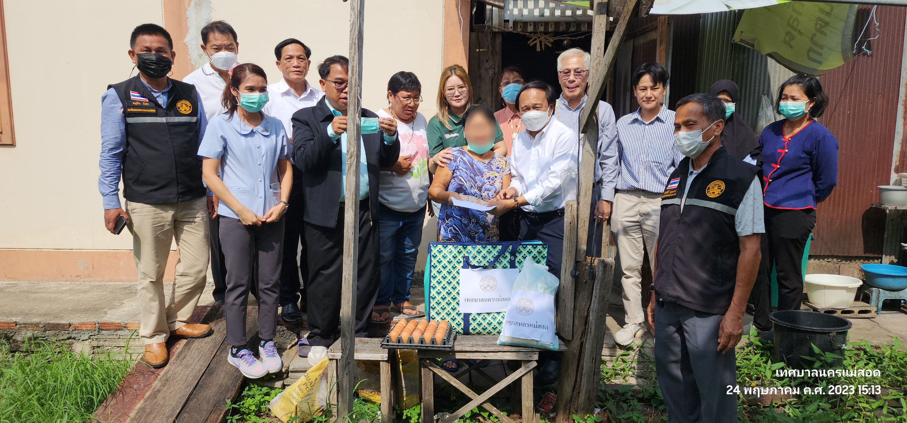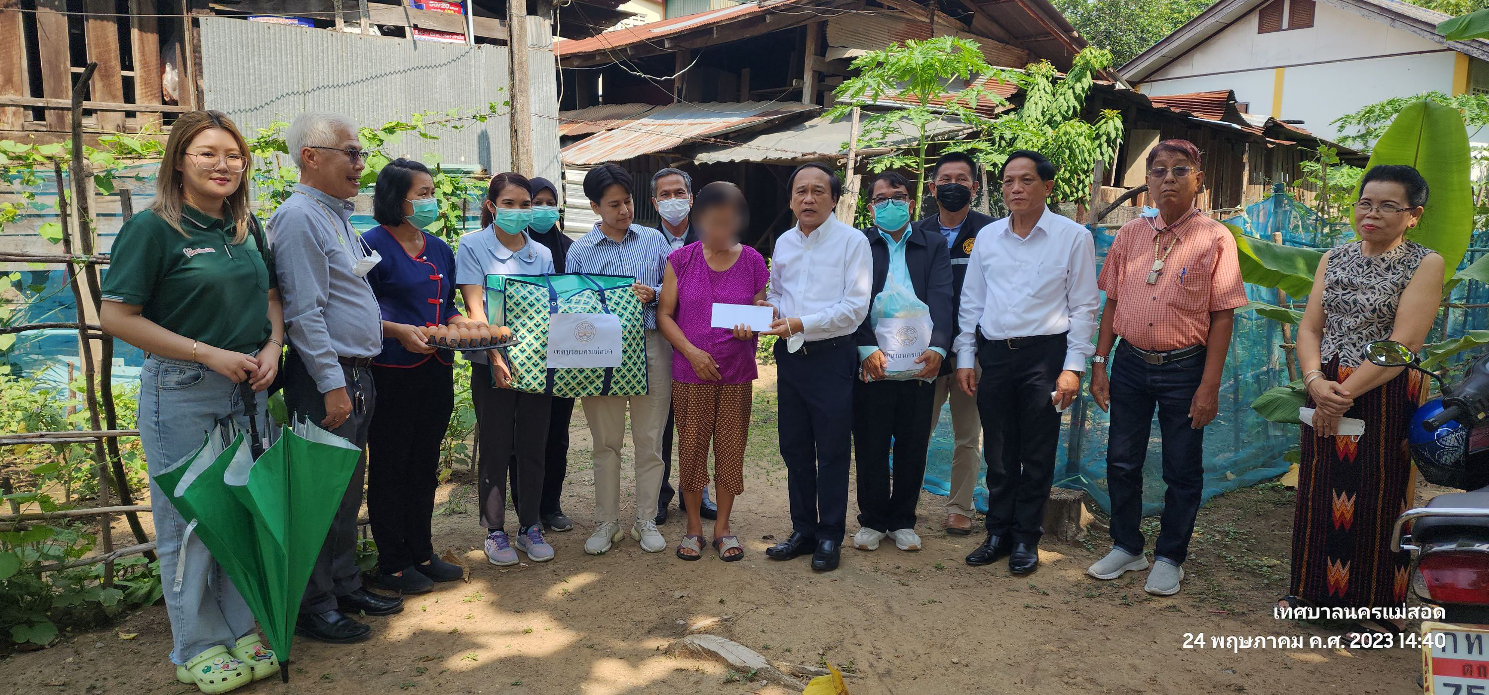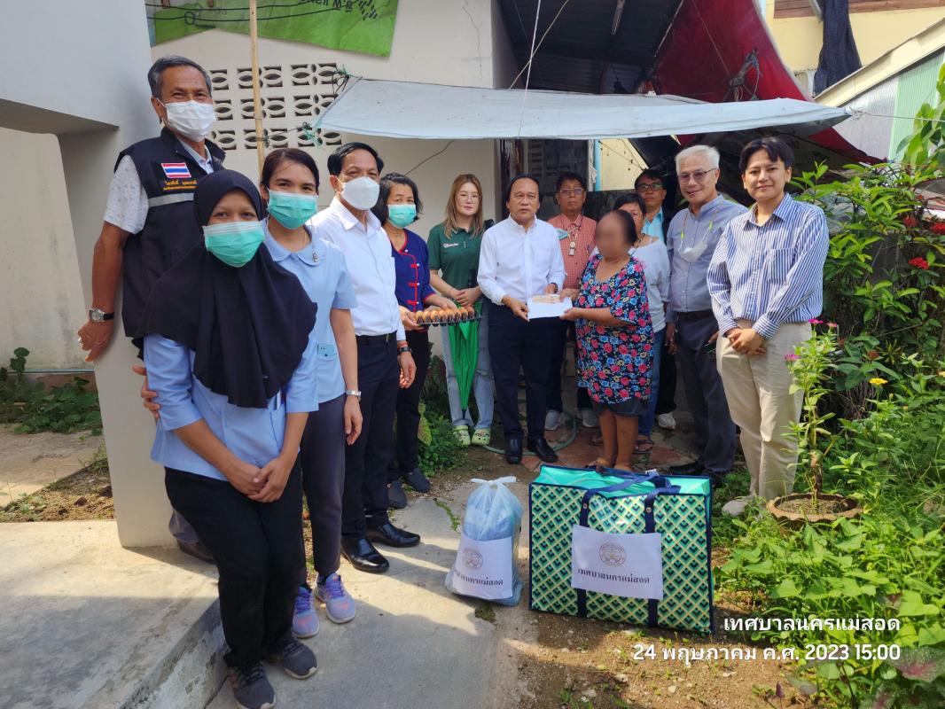 ลงพื้นที่เยี่ยมเยือนพร้อมมอบสิ่งของแก่ผู้ยากไร้และผู้ประสบปัญหาทางสังคม เพื่อใช้ประโยชน์ในการดำรงชีวิต รวมถึงหาแนวทางการให้ความช่วยเหลือผู้ป่วยต่อไป โดยมีนายอัครเดช ตาสะหลี ประธานผู้บริหารบริษัทแม่สอดฟรีโซน จำกัด ผู้สนับสนุนสิ่งของการลงเยี่ยม ในครั้งนี้