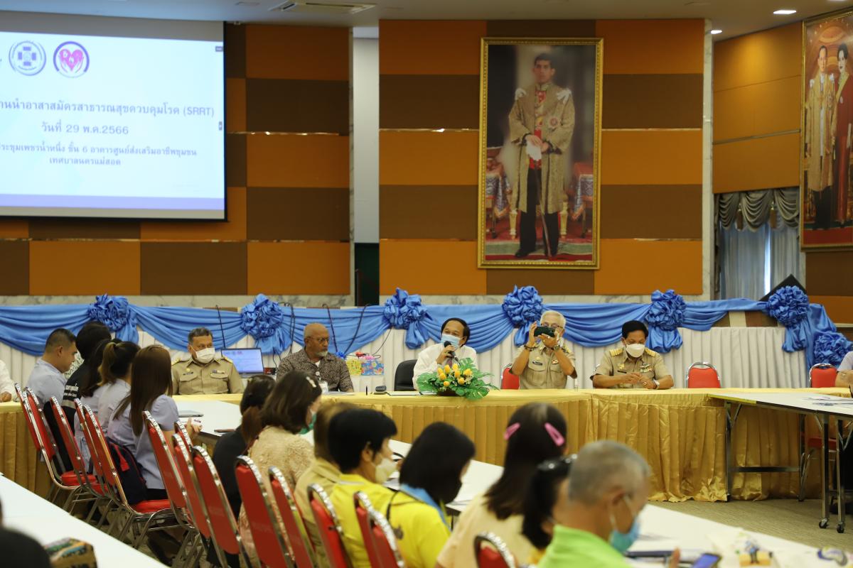 ว่าที่ร้อยตรีประเสริฐ ปวงละคร นายกเทศมนตรีนครแม่สอด เป็นประธานกล่าวเปิดโจัดโครงการแกนนำอาสาสมัครสาธารณสุขควบคุมโรค (SRRT) พร้อมด้วยคณะผู้บริหาร สมาชิกสภาเทศบาล ผู้อำนวยการกองและเจ้าหน้าที่คลินิกชุมชนอบอุ่น กองสาธารณสุขและสิ่งแวดล้อม เทศบาลนครแม่สอด เข้าร่วมโครงการฯ