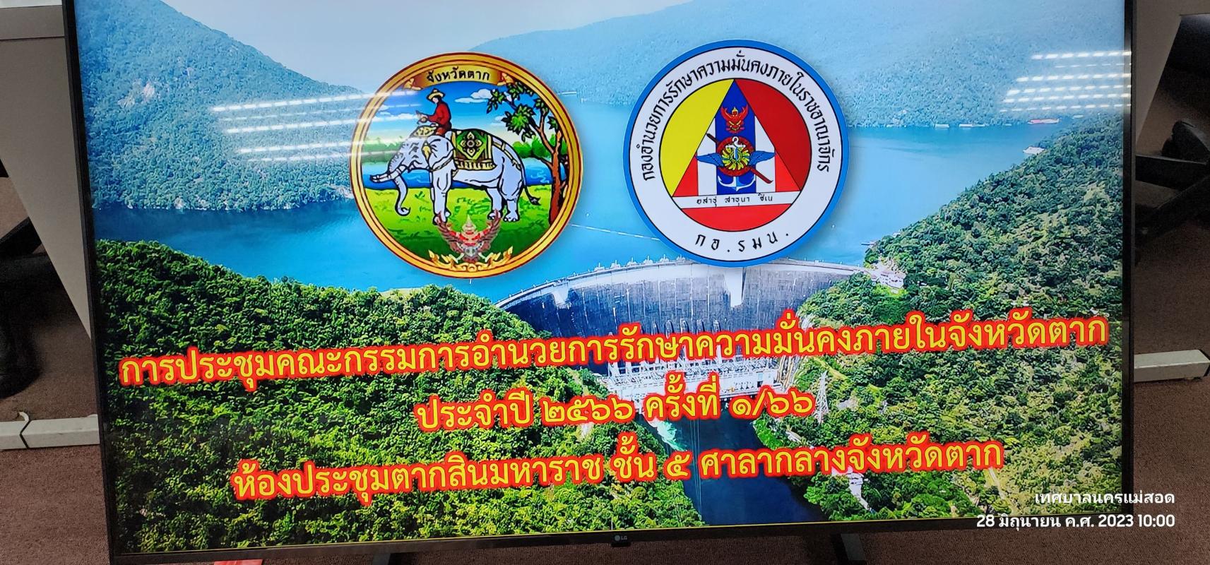 เพื่อวิเคราะห์และประเมินแนวโน้มของสถานการณ์ด้านความมั่นคงในพื้นที่จังหวัดตาก โดยมีนายสมชัย กิจเจริญรุ่งโรจน์ ผู้ว่าราชการจังหวัดตาก เป็นประธานการประชุมฯ โดยมี พันเอกสาธิต ไวยานนท์ รองผู้อำนวยการรักษาความมั่นคงภายในจังหวัดตาก ฝ่ายทหาร นายรณรงค์ พิกุลทอง อัยการจังหวัดตาก หัวหน้าส่วนราชการ คณะกรรมการฯ และผู้เกี่ยวข้องเข้าร่วมประชุม