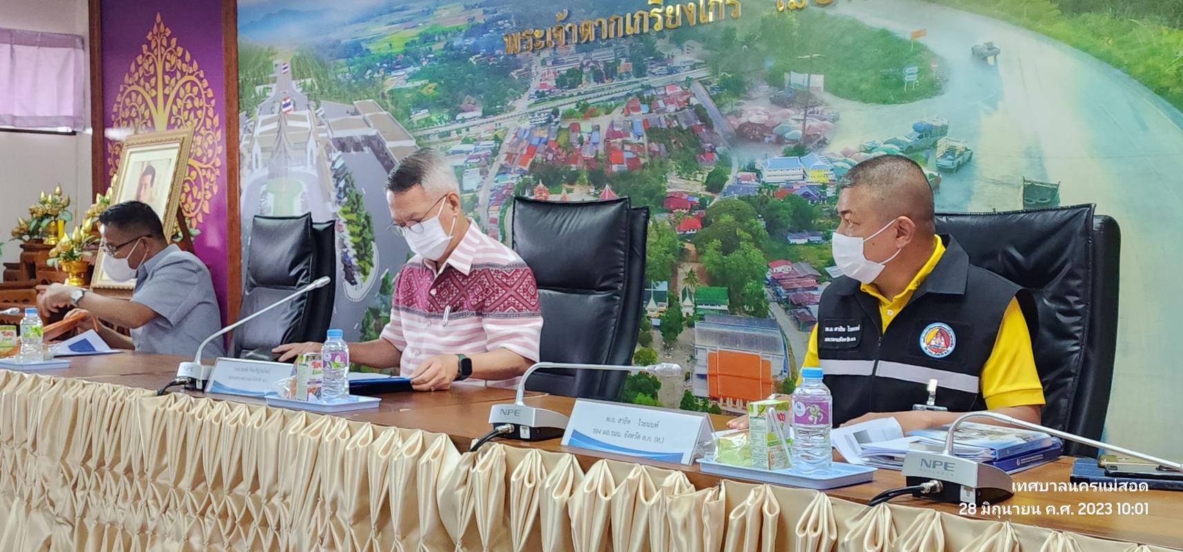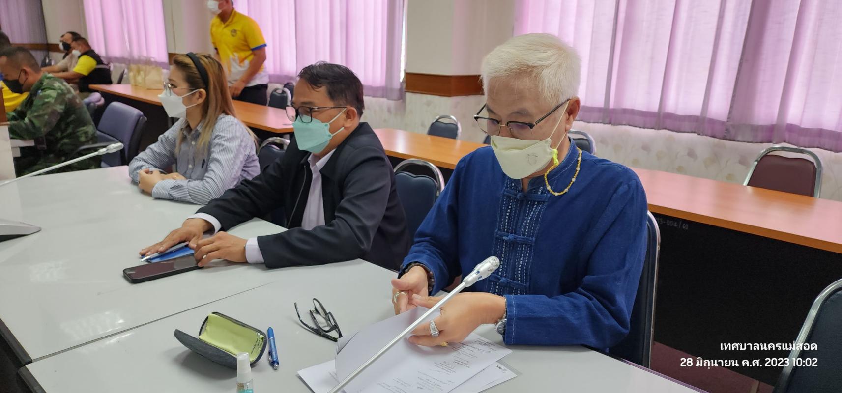 ว่าที่ร้อยตรีประเสริฐ ปวงละคร นายกเทศมนตรีนครแม่สอด พร้อมด้วยนายกรกฤตย์ กรัณยพัฒนพงศ์ เลขานุการนายกเทศมนตรี และนายสมเกียรติ สุริยา ที่ปรึกษานายกเทศมนตรี เข้าร่วมประชุมคณะกรรมการอำนวยการรักษาความมั่นคงภายในจังหวัดตาก ครั้งที่ 1/2566