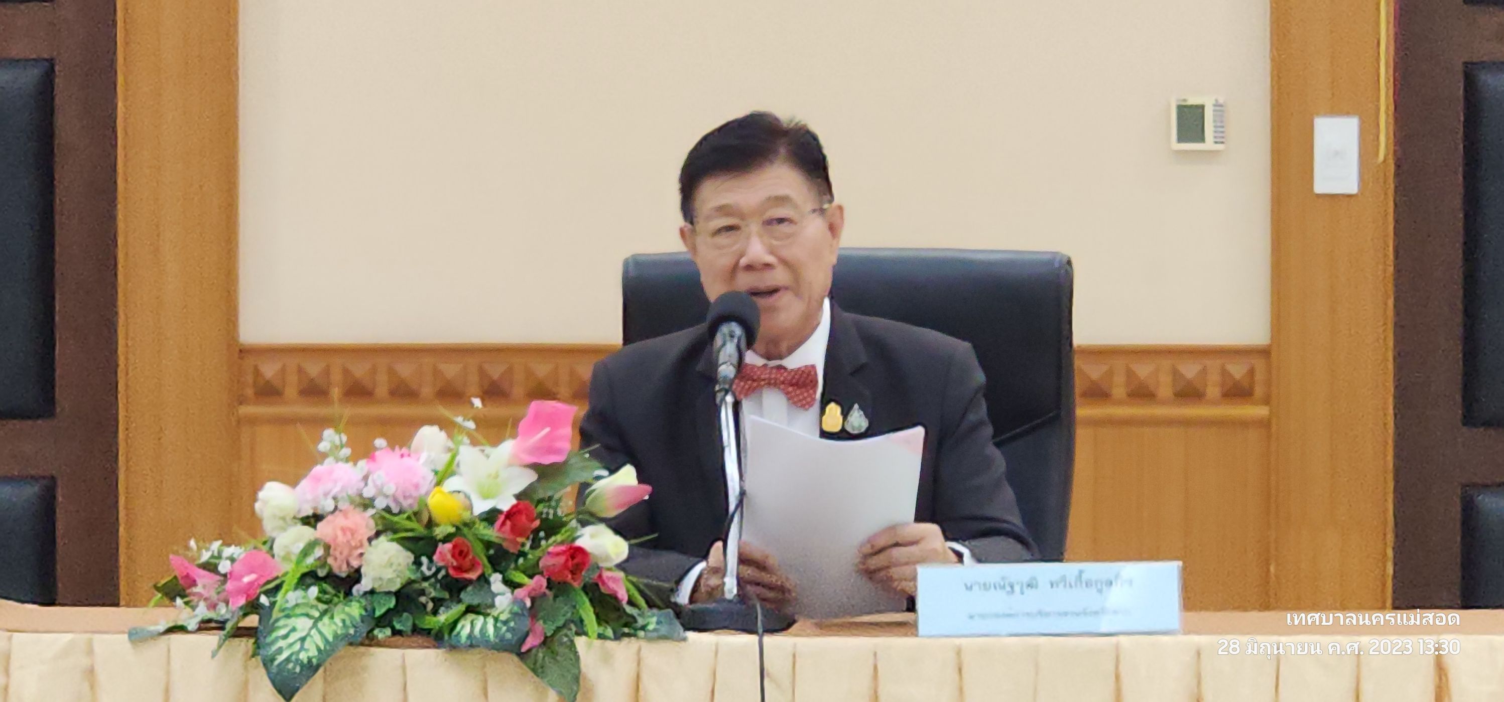 ว่าที่ร้อยตรีประเสริฐ ปวงละคร นายกเทศมนตรีนครแม่สอด มอบหมายให้นายกรกฤตย์ กรัณยพัฒนพงศ์ เลขานุการนายกเทศมนตรี และนายสมเกียรติ สุริยา ที่ปรึกษานายกเทศมนตรี เข้าร่วมประชุมคณะกรรมการพัฒนาองค์การบริหารส่วนจังหวัดตาก ครั้งที่ 2/2566 เพื่อร่วมพิจารณาการจัดทำร่างแผนพัฒนาท้องถิ่น (พ.ศ.2566-2570) เพิ่มเติม ครั้งที่ 2/2566 และร่างแผนพัฒนาท้องถิ่น (พ.ศ.2566-2570) เปลี่ยนแปลง ครั้งที่ 2/2566 โดยมีนายณัฐวุฒิ ทวีเกื้อกูลกิจ นายกองค์การบริหารส่วนจังหวัดตาก เป็นประธานการประชุมฯ