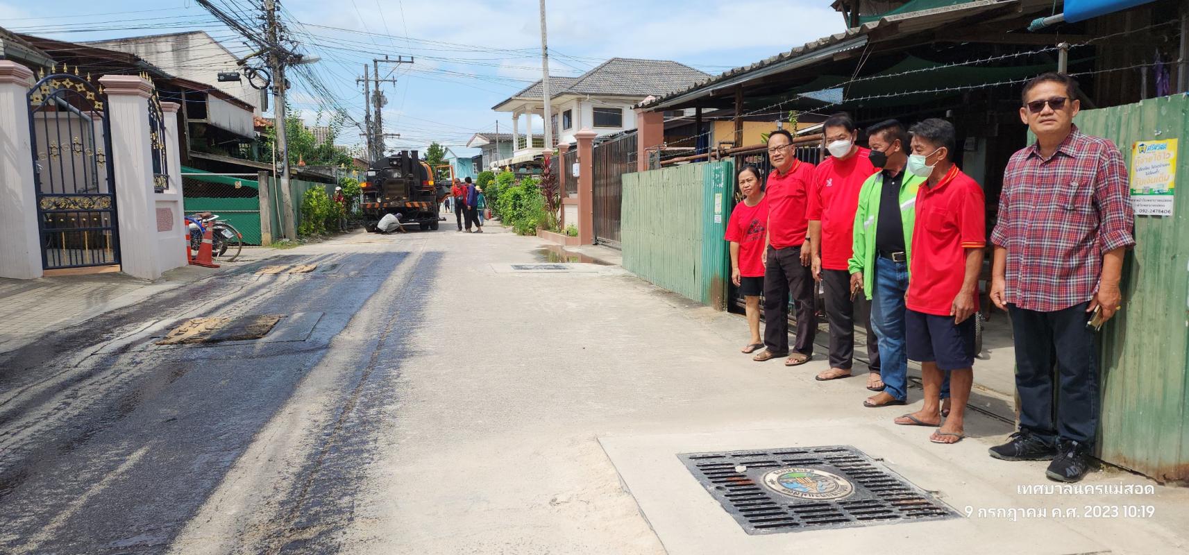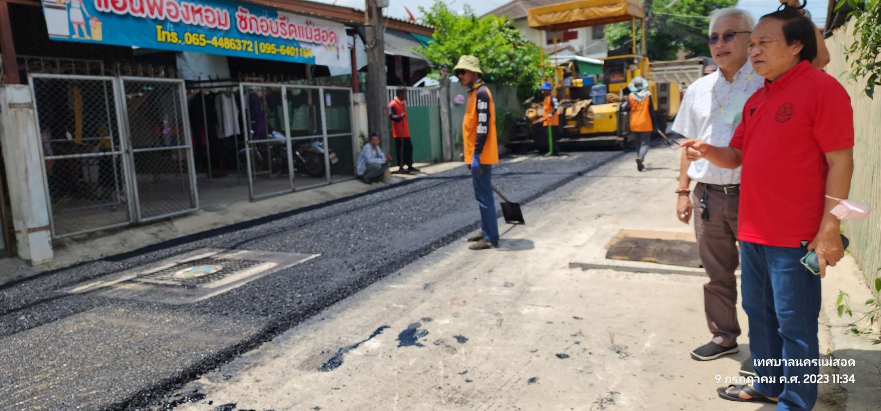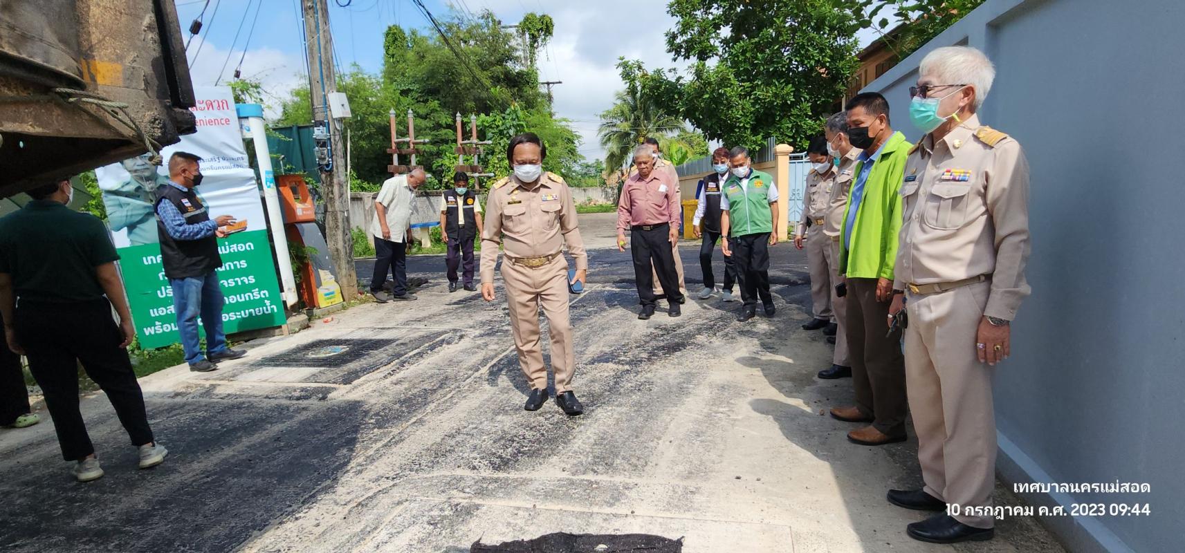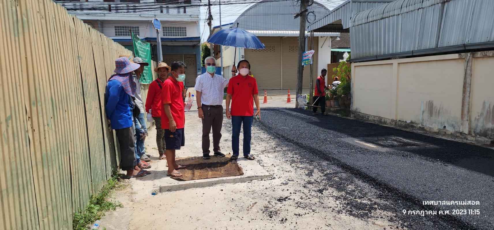 ว่าที่ร้อยตรีประเสริฐ ปวงละคร นายกเทศมนตรีนครแม่สอด พร้อมด้วยคณะผู้บริหาร สมาชิกสภาเทศบาล หัวหน้าส่วนราชการและเจ้าหน้าที่ที่เกี่ยวข้องเทศบาลนครแม่สอด ลงพื้นที่ตรวจความเรียบร้อยโครงการก่อสร้างปรับปรุงเสริมผิวจราจรแอสฟัลท์ติกคอนกรีต พร้อมยกฝาท่อระบายน้ำ บริเวณถนนภายในเขตชุมชนประชารักษ์และถนนภายในชุมชนสักทอง