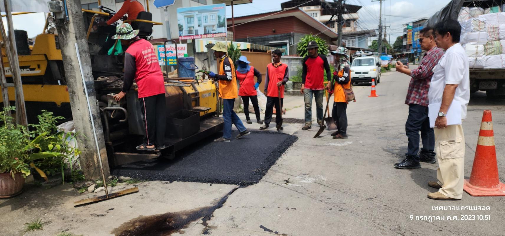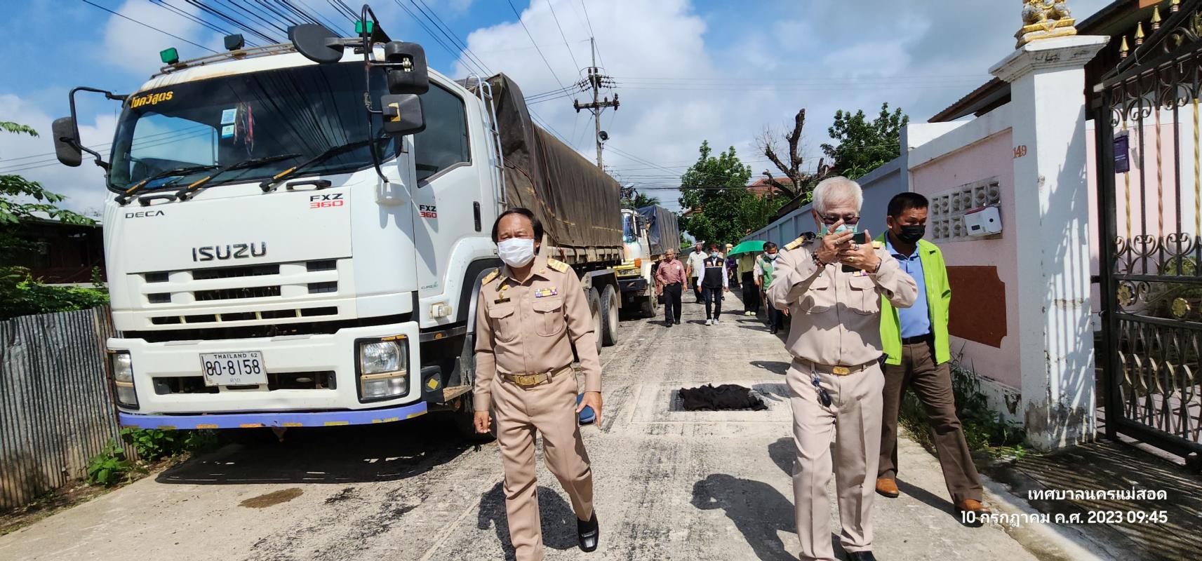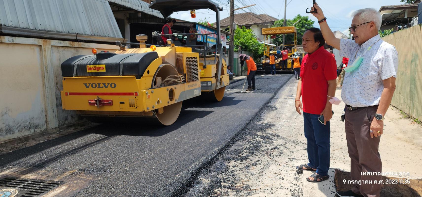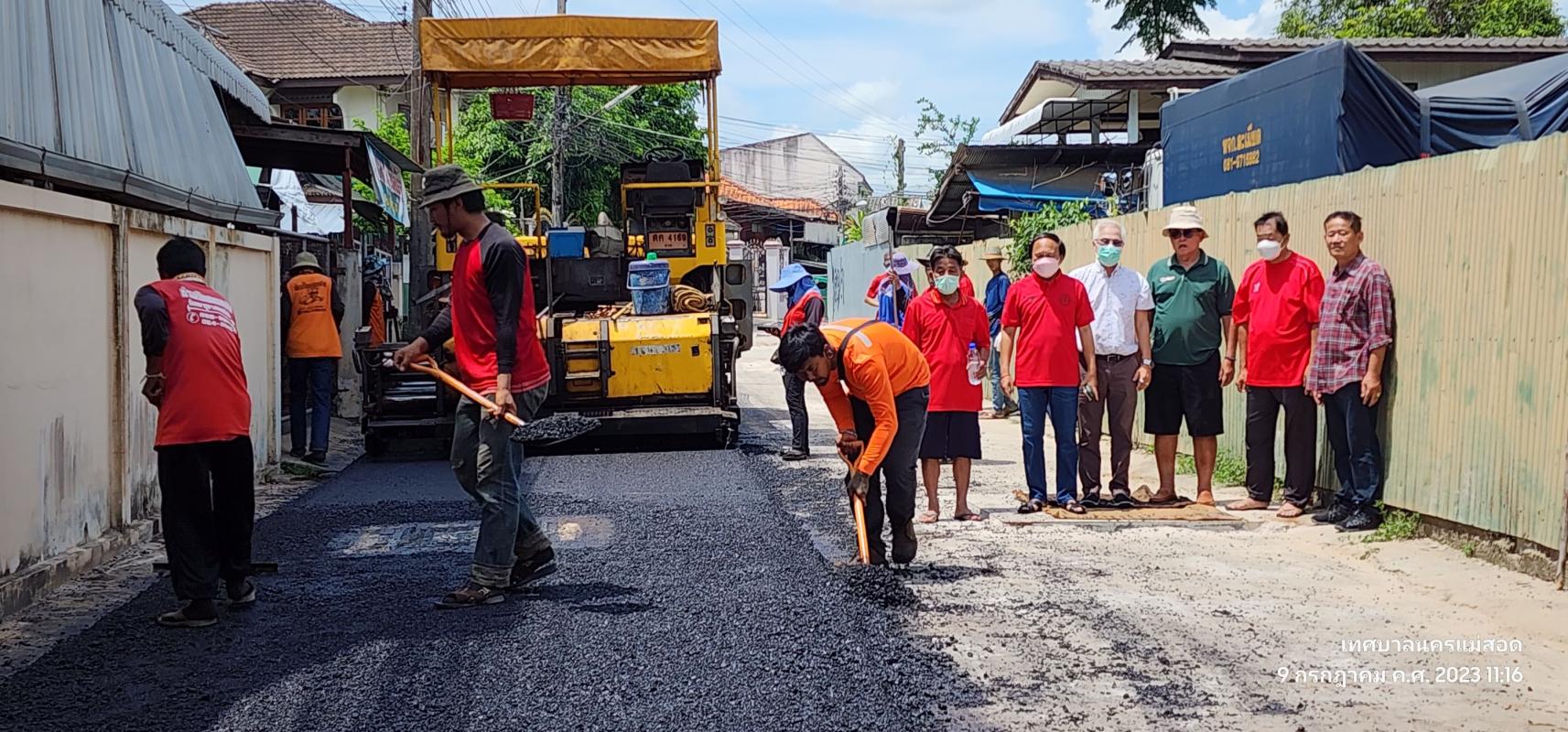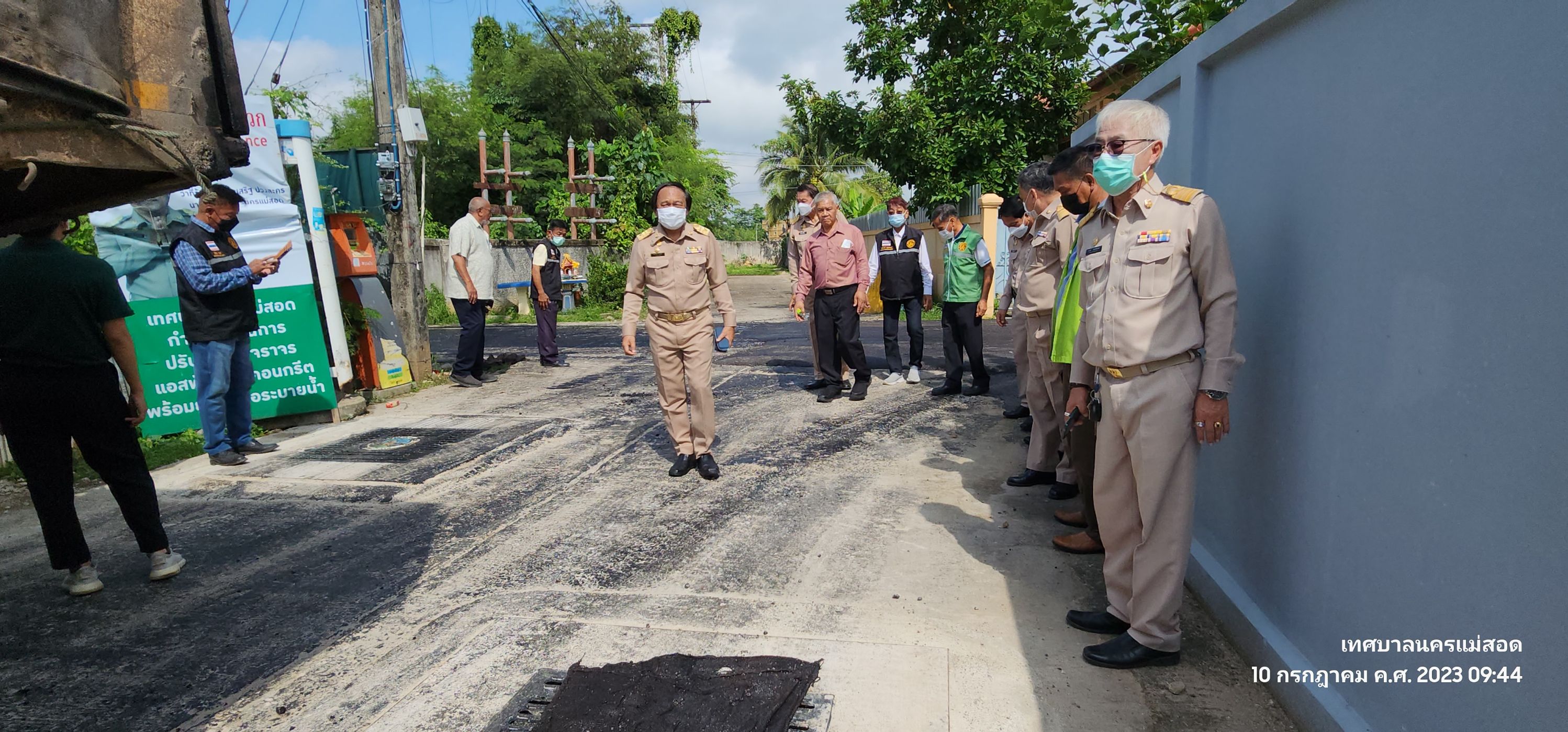 ว่าที่ร้อยตรีประเสริฐ ปวงละคร นายกเทศมนตรีนครแม่สอด พร้อมด้วยคณะผู้บริหาร สมาชิกสภาเทศบาล หัวหน้าส่วนราชการและเจ้าหน้าที่ที่เกี่ยวข้องเทศบาลนครแม่สอด ลงพื้นที่ตรวจความเรียบร้อยโครงการก่อสร้างปรับปรุงเสริมผิวจราจรแอสฟัลท์ติกคอนกรีต พร้อมยกฝาท่อระบายน้ำ บริเวณถนนภายในเขตชุมชนประชารักษ์และถนนภายในชุมชนสักทอง