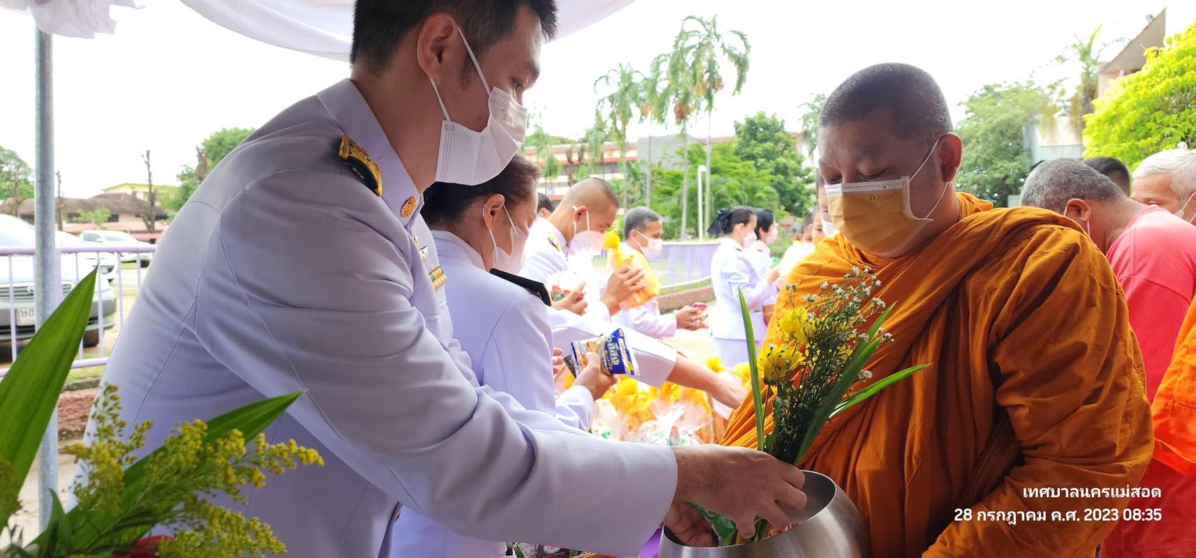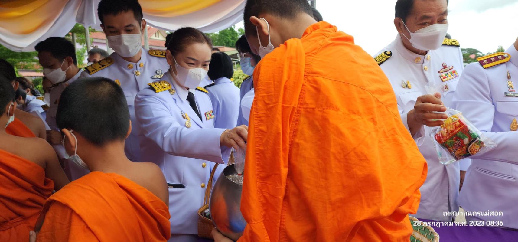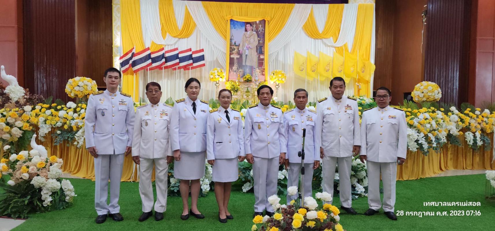 ว่าที่ร้อยตรี ประเสริฐ ปวงละคร นายกเทศมนตรีนครแม่สอด มอบหมายให้นายกรณพงศ์ คงปาน รองนายกเทศมนตรีนครแม่สอด พร้อมด้วยคณะผู้บริหาร สมาชิกสภาเทศบาล รองปลัดเทศบาล หัวหน้าส่วนราชการและพนักงานเทศบาลนครแม่สอด เข้าร่วมพิธีทำบุญตักบาตรและร่วมถวายสัตย์ปฏิญาณเพื่อเป็นข้าราชการที่ดี เนื่องในโอกาสวันเฉลิมพระชนมพรรษา 71 พรรษา โดยมีนายสมชาย ไตรทิพย์ชาติสกุล นายอำเภอแม่สอด เป็นประธานในพิธีทำบุญตักบาตรถวายพระราชกุศลและพิธีถวายสัตย์ปฏิญาณ เพื่อเป็นข้าราชการที่ดี เนื่องในโอกาสวันเฉลิมพระชนมพรรษา 71 พรรษา 28 กรกฎาคม 2566 พร้อมด้วยหัวหน้าส่วนราชการหน่วยงานในพื้นที่อำเภอแม่สอดเข้าร่วมพิธีในครั้งนี้ เพื่อถวายความจงรักภักดี และสำนึกในพระมหากรุณาธิคุณที่มีต่อพสกนิกรชาวไทยทุกหมู่เหล่า