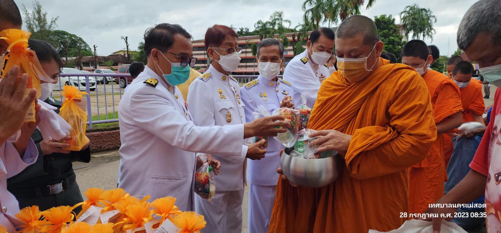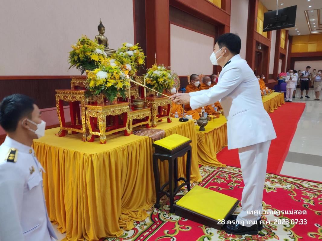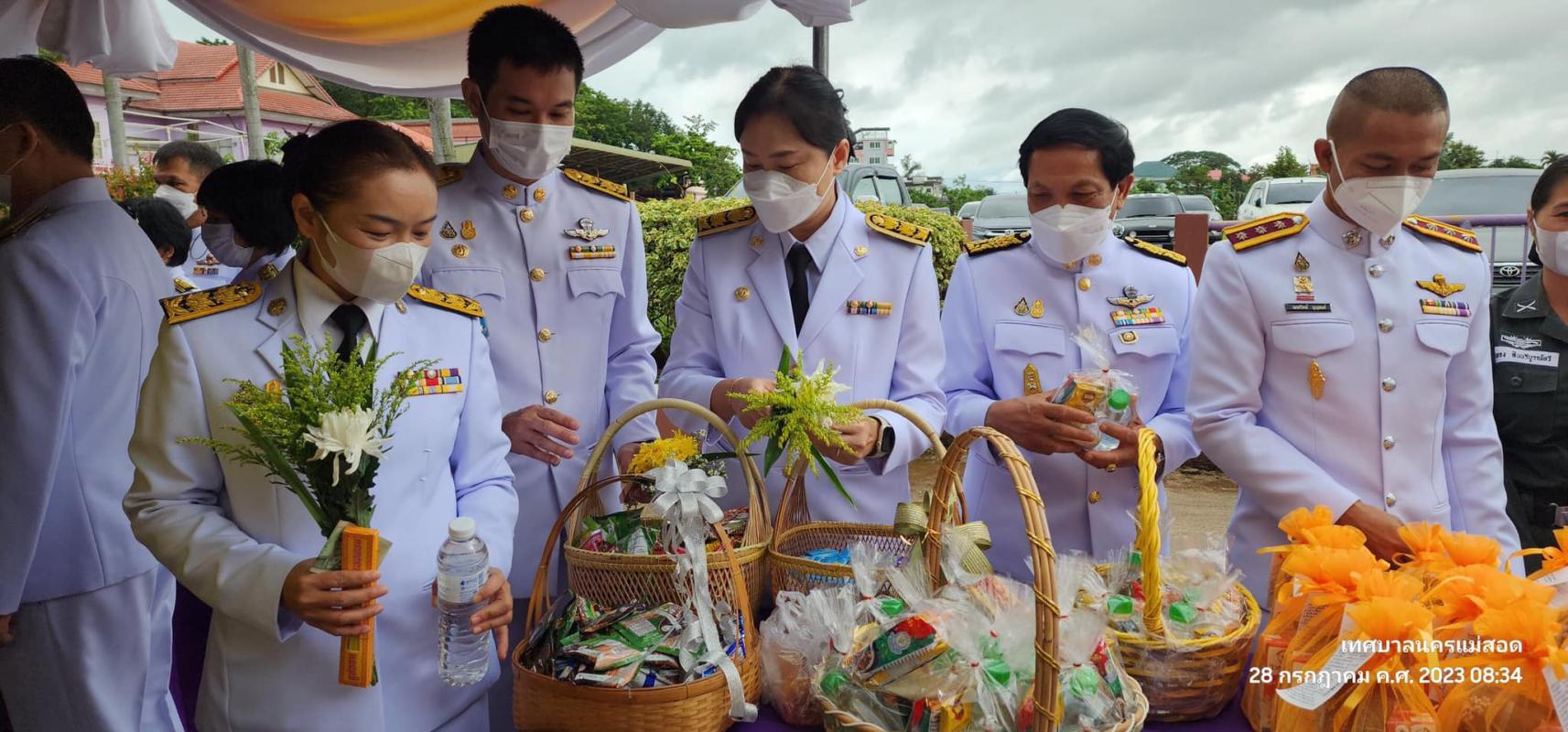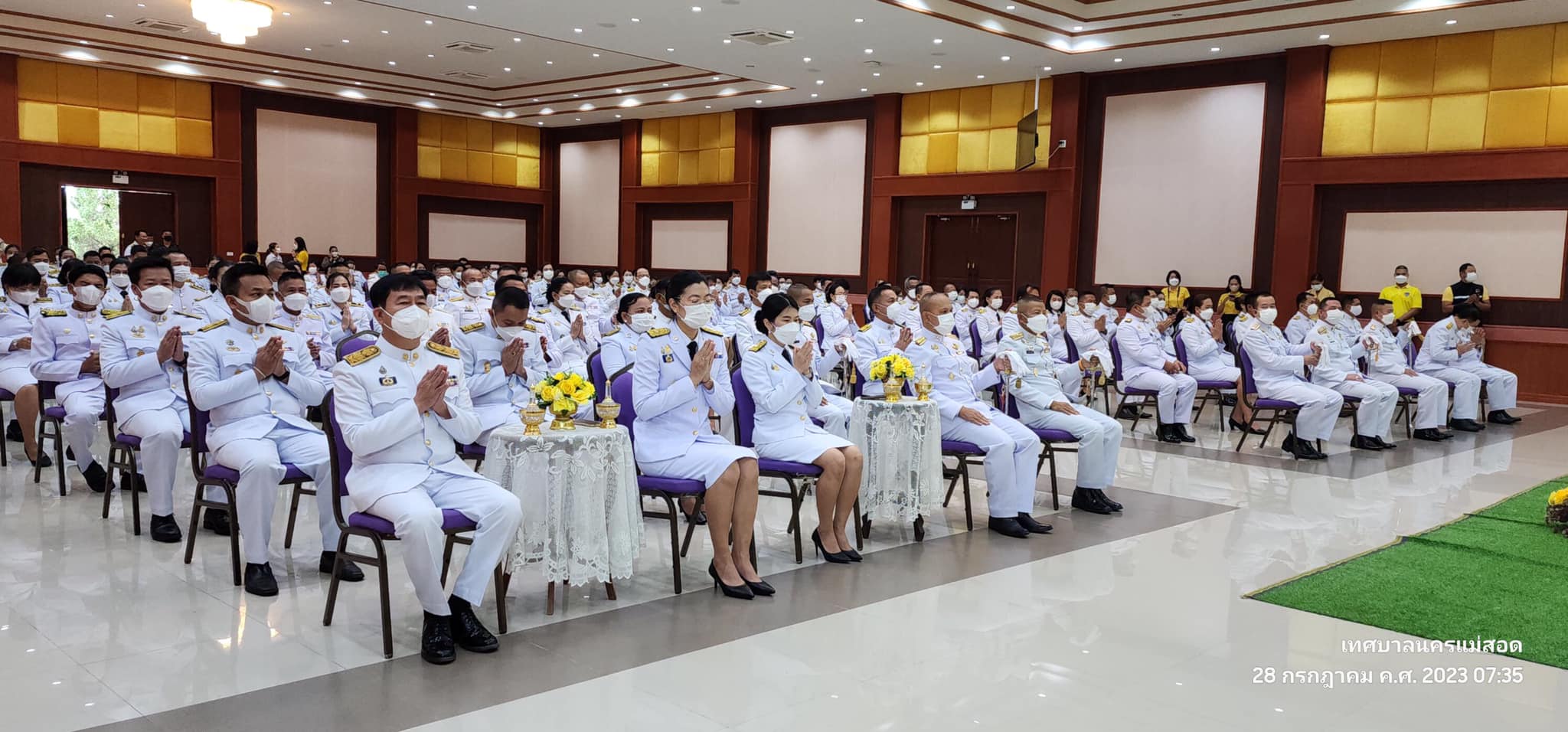 ว่าที่ร้อยตรี ประเสริฐ ปวงละคร นายกเทศมนตรีนครแม่สอด มอบหมายให้นายกรณพงศ์ คงปาน รองนายกเทศมนตรีนครแม่สอด พร้อมด้วยคณะผู้บริหาร สมาชิกสภาเทศบาล รองปลัดเทศบาล หัวหน้าส่วนราชการและพนักงานเทศบาลนครแม่สอด เข้าร่วมพิธีทำบุญตักบาตรและร่วมถวายสัตย์ปฏิญาณเพื่อเป็นข้าราชการที่ดี เนื่องในโอกาสวันเฉลิมพระชนมพรรษา 71 พรรษา โดยมีนายสมชาย ไตรทิพย์ชาติสกุล นายอำเภอแม่สอด เป็นประธานในพิธีทำบุญตักบาตรถวายพระราชกุศลและพิธีถวายสัตย์ปฏิญาณ เพื่อเป็นข้าราชการที่ดี เนื่องในโอกาสวันเฉลิมพระชนมพรรษา 71 พรรษา 28 กรกฎาคม 2566 พร้อมด้วยหัวหน้าส่วนราชการหน่วยงานในพื้นที่อำเภอแม่สอดเข้าร่วมพิธีในครั้งนี้ เพื่อถวายความจงรักภักดี และสำนึกในพระมหากรุณาธิคุณที่มีต่อพสกนิกรชาวไทยทุกหมู่เหล่า