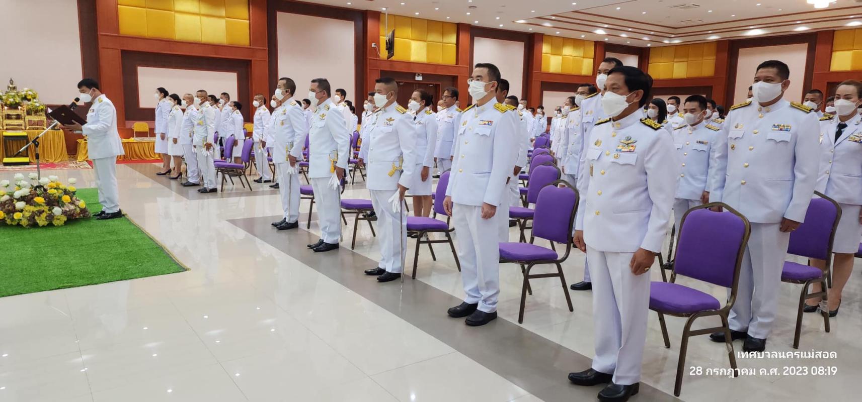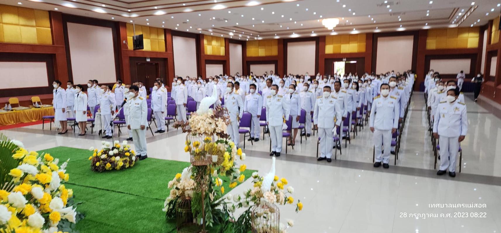 เมื่อวันศุกร์ ที่ 28 กรกฎาคม พ.ศ. 2566 เวลา 06.30 น. ณ หอประชุมที่ว่าการอำเภอแม่สอด อำเภอแม่สอด จังหวัดตาก